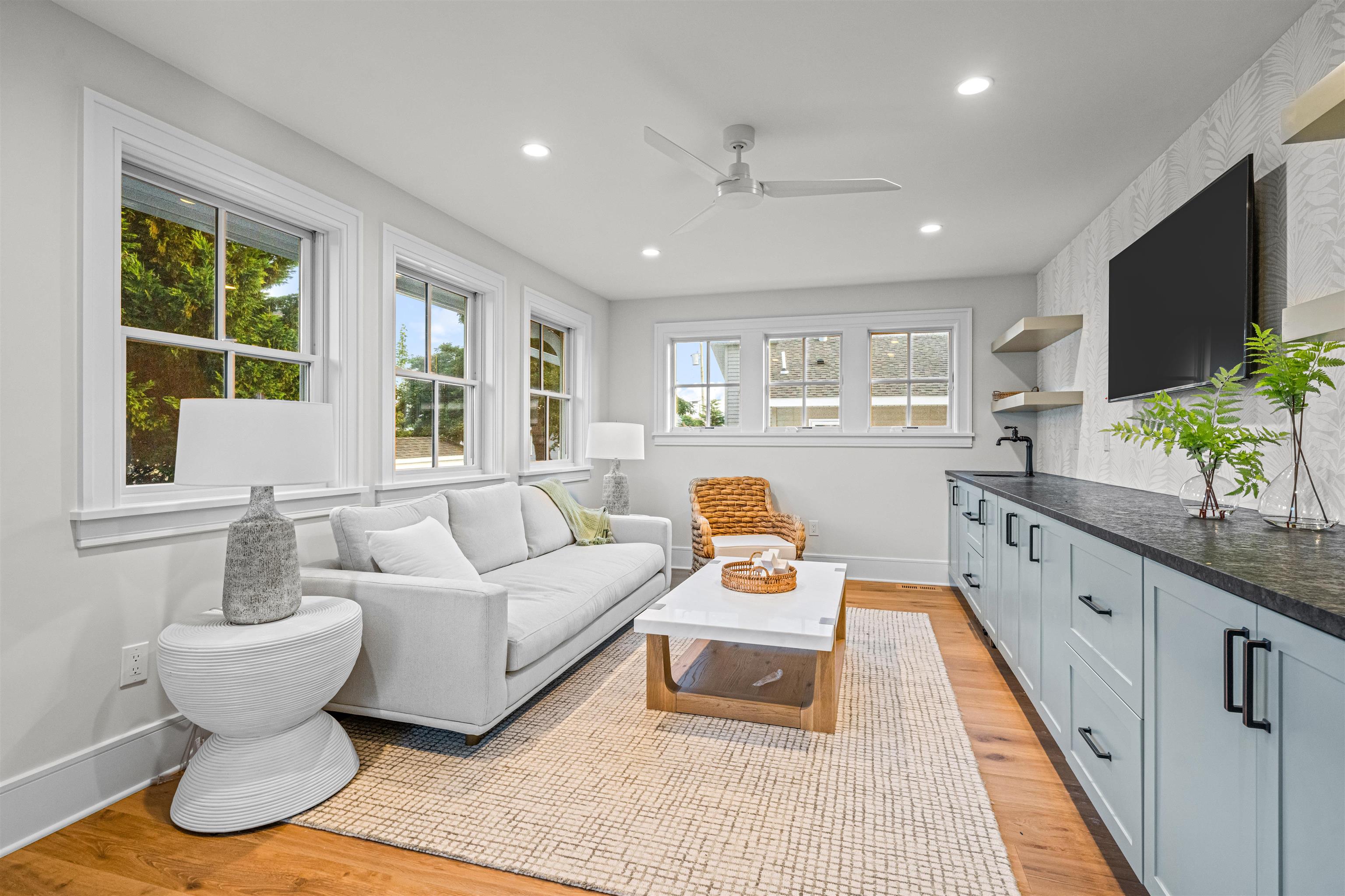 | Ready for summer 2025, this brand new, designer-furnished home features 6 bedrooms and 7 bathrooms, each designed with hand-selected finishes. Located just east of Dune Drive and 2 blocks from town, this home offers the epitome of peak summer living with easy access to the beach, dining, shopping, mini-golf, and ice cream. Constructed by JW Hand Builders, the exterior features Hardy siding, classic train station brick across the foundation and chimney, and windows accented with Azek trim and crown molding. Irrigated flower boxes, a welcoming front entrance with Ipe decking, and a mahogany porch ceiling further enhance the home’s luxury curb appeal. Inside, 8-inch wide plank-engineered flooring extends throughout, complemented by a modern trim package that includes vertical shiplap in common areas, 8-inch baseboards, and unique accent walls in each bedroom. The first floor hosts 3 bedrooms, 2 sharing a Jack and Jill bathroom with a dual-sink vanity, and a third with a private ensuite bath. A spacious laundry room provides easy exterior access to avoid sand and water from the beach and pool. The family room on the first floor, overlooking the pool and backyard, expands the entire length of the home, making it substantially larger than typical family rooms in Avalon. It features an expansive wet bar with a beverage center, ice maker, and a stylish copper sink set against a steel gray leathered countertop and sage cabinets with floating shelves. A conveniently located powder room provides access from both inside and the backyard, ensuring no wet and sandy feet track indoors. Outside, a cabana includes a beverage center, ample cabinet storage, a large bar top, and space for a TV, making it the perfect backdrop for outdoor entertaining. The pool, measuring 14ft. X 21ft. is finished with bluestone coping and aggregate concrete to keep surfaces cool during those hot summer afternoons. On the second floor, the family room centers around a gas-fed fireplace with train station brick and a natural cherry mantle. The dining area is ideally positioned near the front deck to maximize sunlight and space under vaulted ceilings throughout the common areas. A large front deck spanning the entire width of the home is partially covered, offering shade from the afternoon sun. The kitchen is centered on a large island with seating for 4, contrasting cabinetry, a paneled appliance package with a pot filler, a farmhouse sink, and a gentlemen’s bar, outfit with 2 beverage drawers. A powder room is conveniently tucked out of sight, located down the hall from the entertaining spaces. Two additional bedrooms, each with an ensuite bathroom and one with a private balcony overlooking the pool, complete the second floor. The entire third floor is dedicated to the primary suite, featuring a luxurious tiled bathroom and shower, an expansive walk-in closet, and a private balcony creating a quiet place to enjoy your morning coffee. A 4-stop elevator enhances accessibility throughout the home for easy navigation and convenient supply transport. This property represents the pinnacle of quality craftsmanship and thoughtful design, professionally furnished by Studio Blu to meet the highest standards of luxury beach town living. Don’t let the opportunity pass to be in the best beach town for summer 2025.