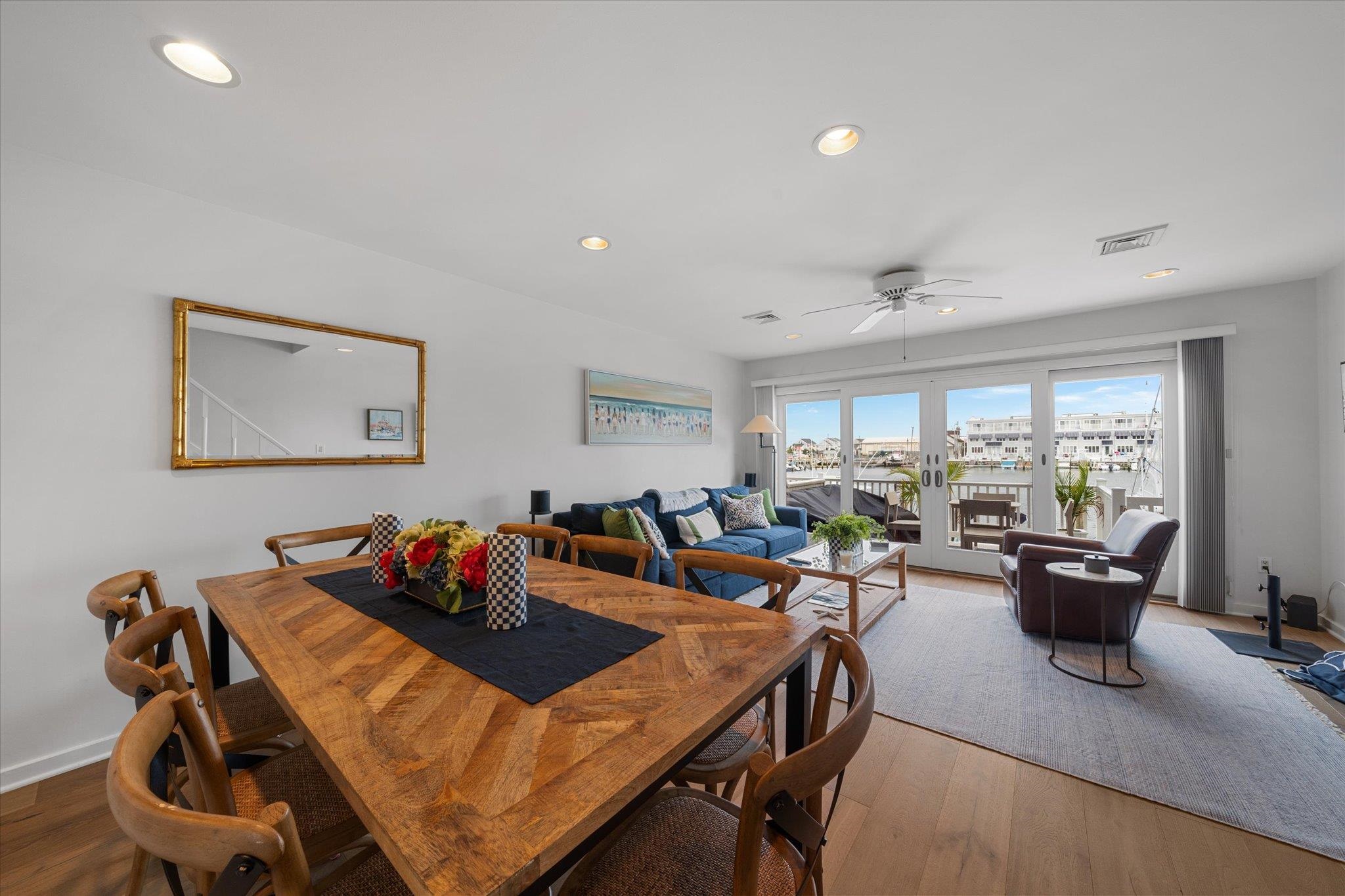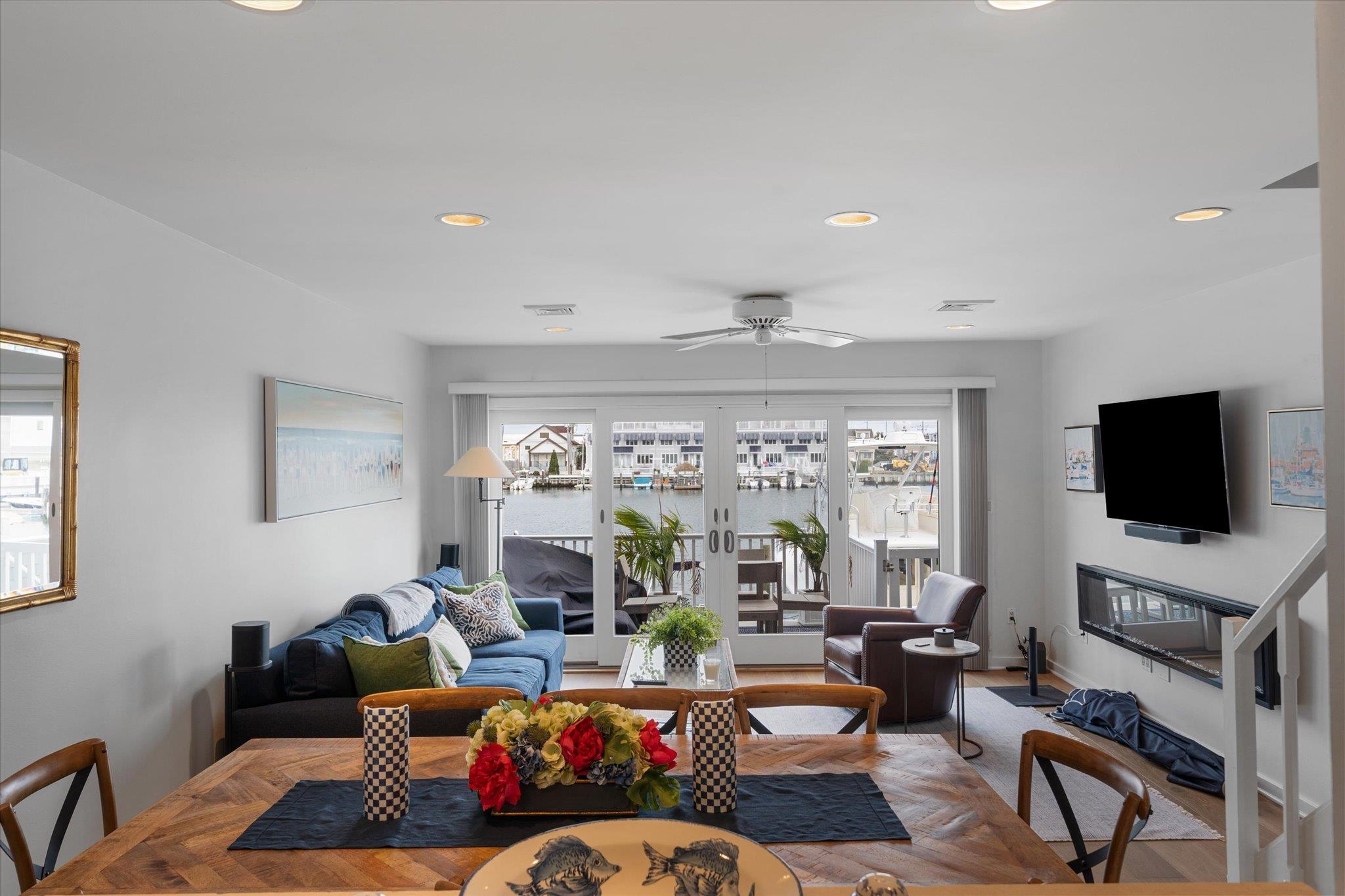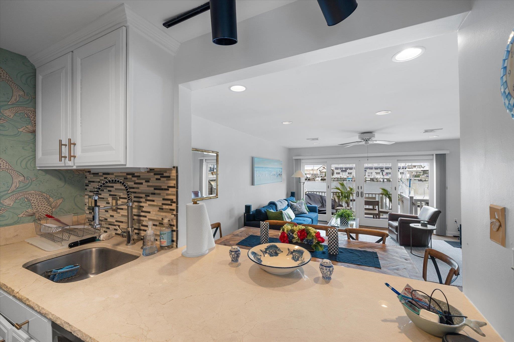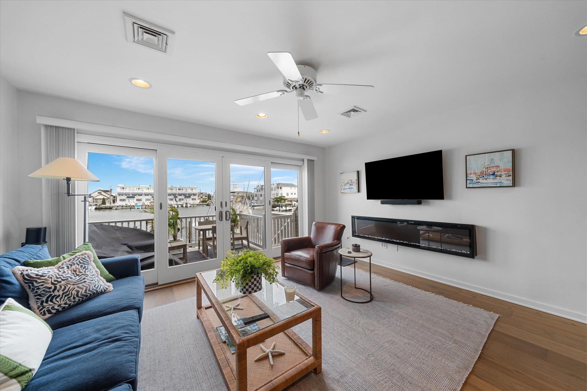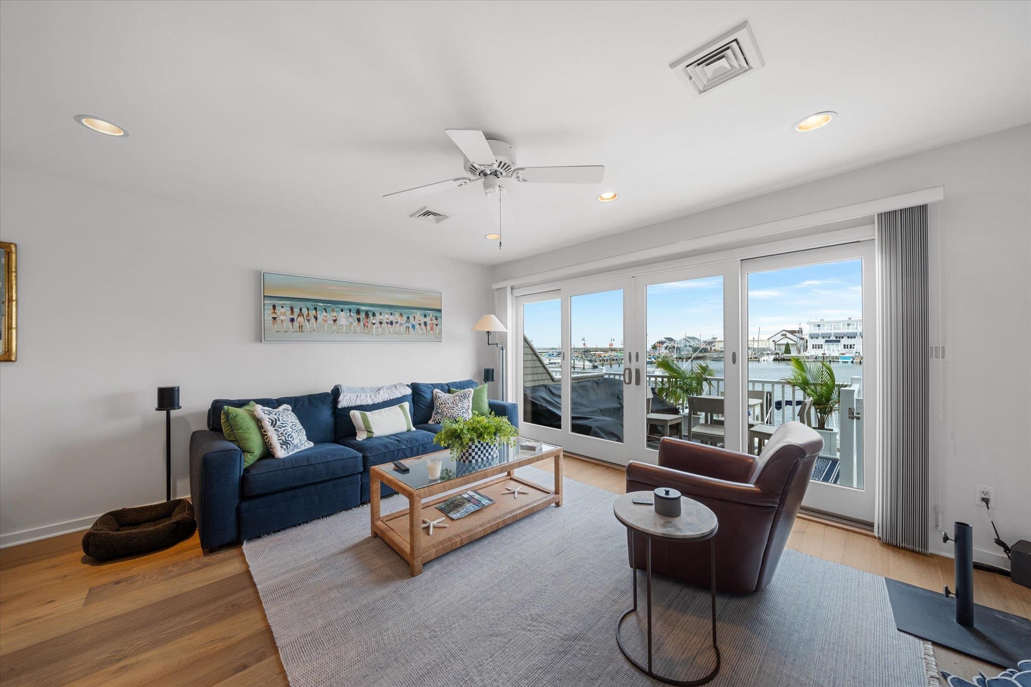 | REDUCED TO SELL! Beautiful Bayfront Townhouse on Stone Harbor’s North Basin! Just for you, a simply perfect location for your family that has always wanted to live on the bay. Meticulously maintained three story townhouse condominium that has only been owner occupied and it includes your own boat slip which includes a personal pier floating dock to access your watercraft. This Bayfront condominium offers stunning views and the best of luxury living in Stone Harbor. The first floor features a custom kitchen with raw edge granite counter tops, is open to the dining area and the spacious living room which features a wall hung electric fireplace and mounted TV with sound bar / surround sound all leading to an open waterside deck. This entire space offers beautiful bay views and wetland vistas of both the sheltered harbor and the back bay waterways. The second floor is comprised of two bedrooms sharing a full bath with both a tub and a separate stall shower, this space is combined with the stackable laundry center. The bayside bedroom is complete with spectacular water, harbor and wetland views, The top floor includes the third bedroom, an attractively renovated marble tiled bathroom with custom tile finishes in the full shower with private access to the very large primary bedroom which has access to a private deck overlooking the tranquil cove - perfect for your morning brew. Ground level offers an off street carport along with additional storage that is fully insulated and complete with a concrete slab, additionally, pull-down stairs provide more storage above the carport plus an under stair cabinet for beach chairs. Finally, there is secure storage under the deck on the bayside. Don’t miss the great community pool area that has an expansive deck area with lounge chairs, tables and umbrellas delivering wonderful breezes and water views. This super Bayfront location is just over 2 blocks to the beach with Bud’s Market, Mack’s Pizza, Borghi’s By The Bay, Icona Resort - Barefoot Beach Bar and Windrift-Icona all close by, along with public courts for pickle ball and basketball, ball fields and playgrounds being just up the street. This is a must see, it won’t last long!