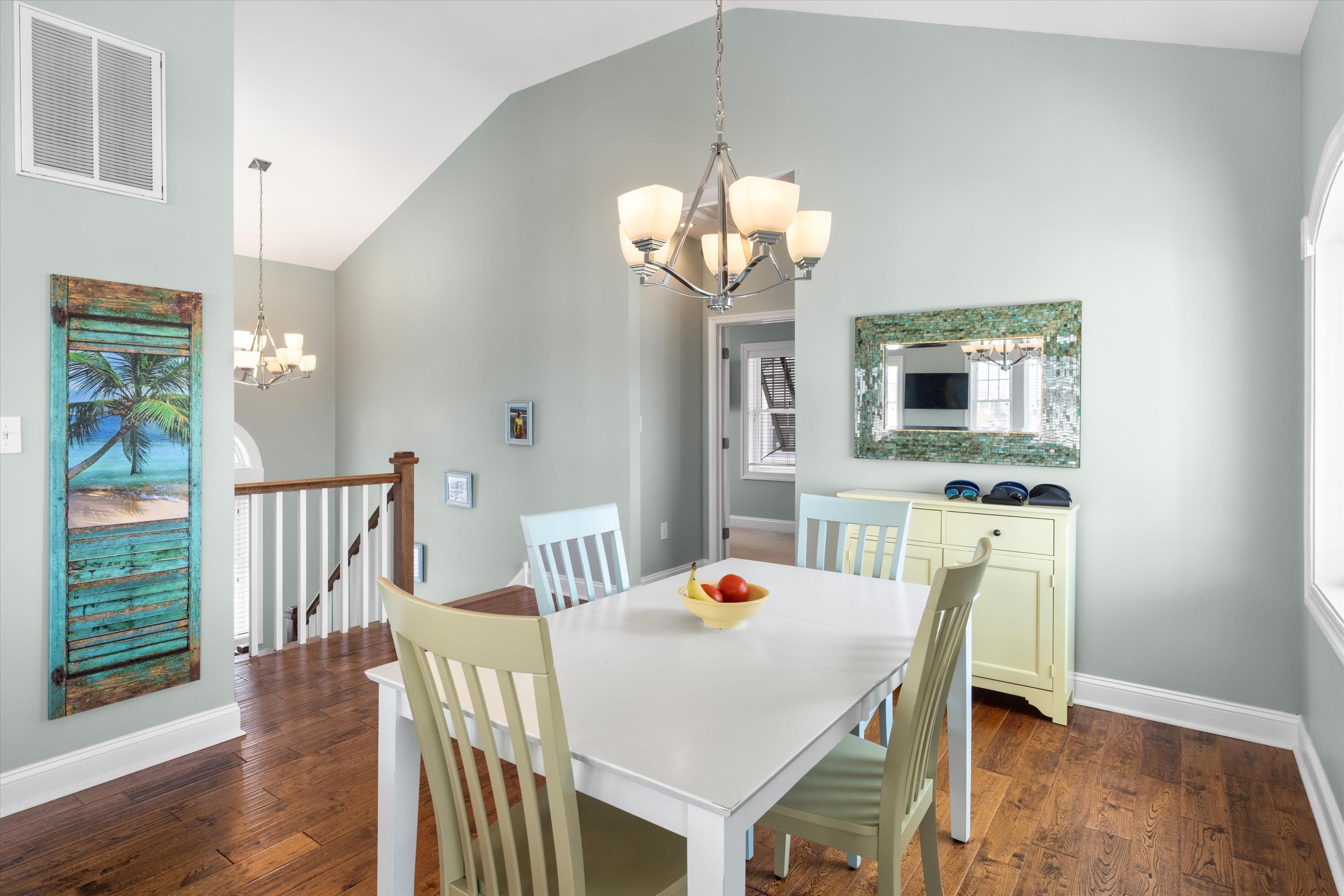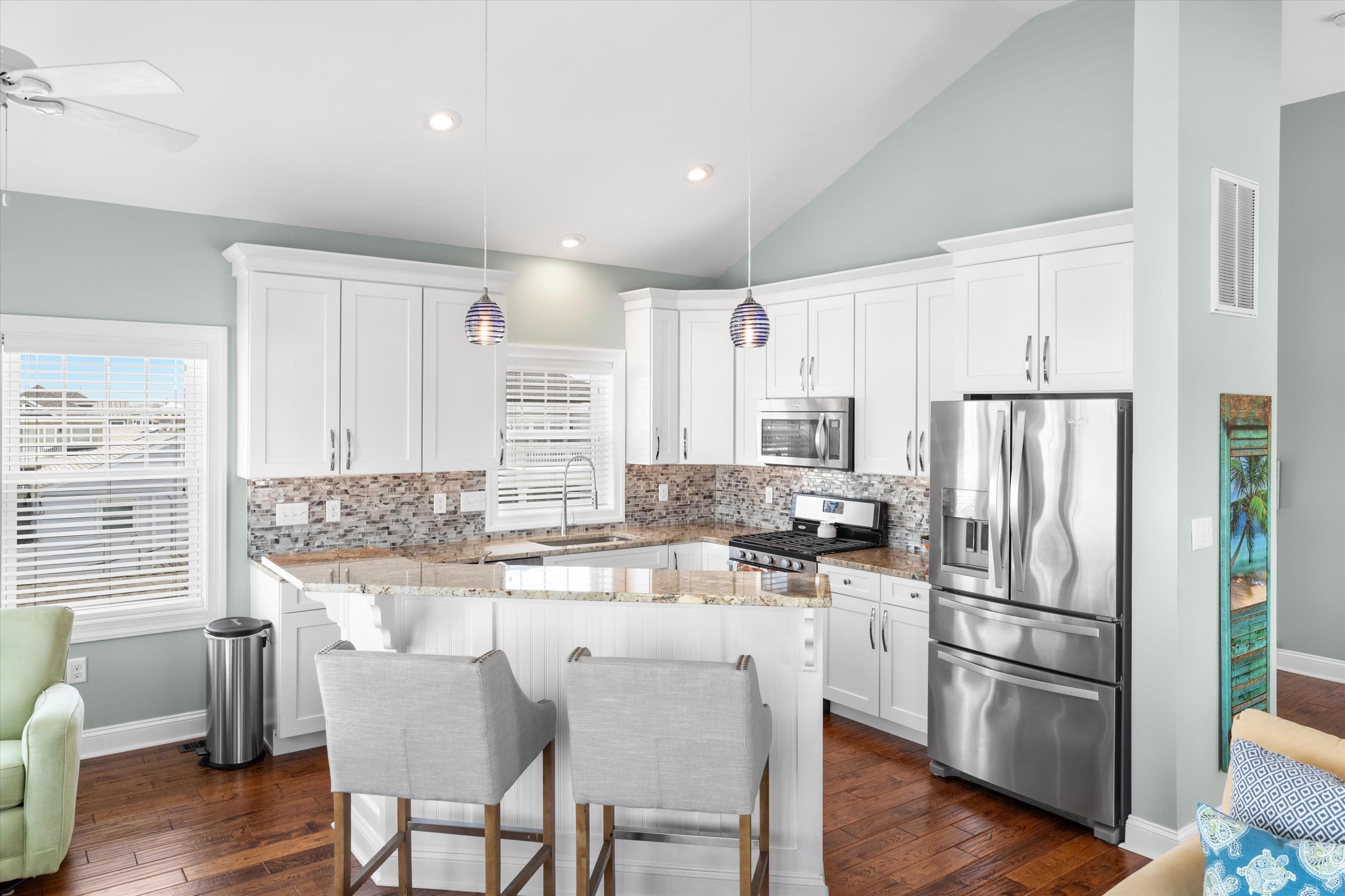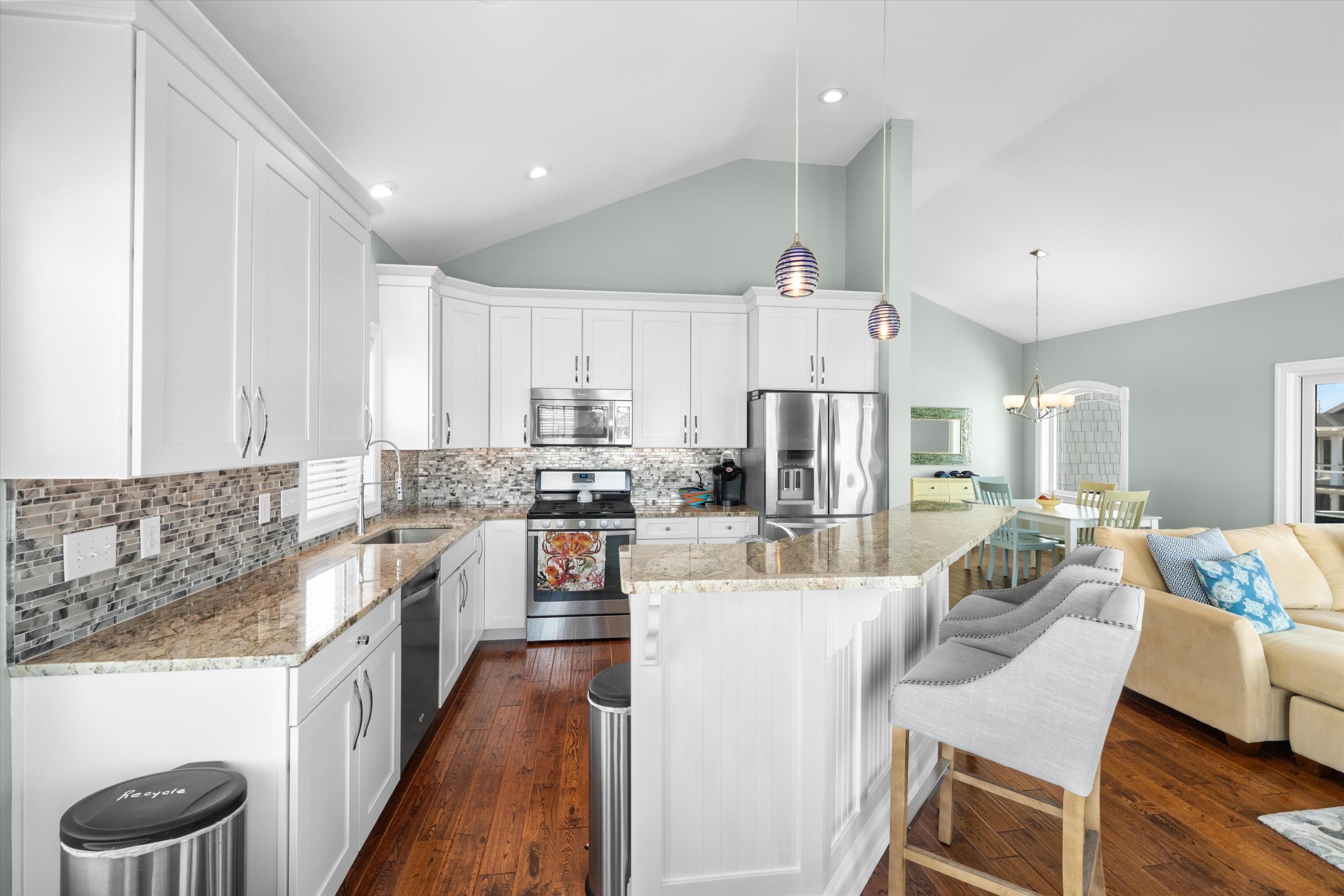 | Nestled in the heart of Stone Harbor, this beautifully maintained 4-bedroom, 3.5-bath upside down-style home offers the perfect blend of comfort, coastal charm, and lovely bay views. The open-concept upper level features a spacious living area, modern kitchen, and dining space that seamlessly flow out to shade-covered decks—ideal for relaxing or entertaining while enjoying cool breezes. The upside down layout offers privacy and functionality. The outdoor living space is enhanced by multiple covered decks and porches, providing the perfect setting for morning coffee or sunset cocktails. An added bonus- The house is raised and the ground level functions as additional family space with hot tub, and storage space. Sold fully furnished and ready for immediate use. Located just a short walk or bike ride to Stone Harbor’s pristine beaches, charming downtown, and waterfront activities, this home is perfect as a summer getaway, year-round residence, or rental investment.