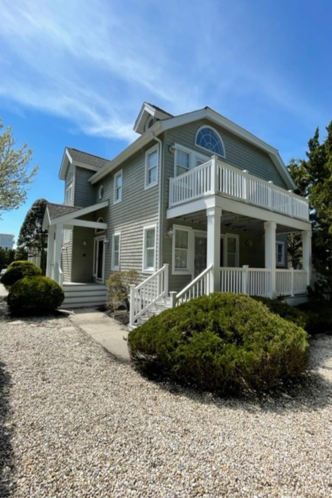 Beautiful Upside Down, third back Beachblock house with 4 bedrooms, 4 full bathrooms. The first floor has one bedroom with a double bed, a full hall bathroom and a bedroom with two twin size beds (private full bath). There is also a family room with a slider leading out to the rear deck. The large, open and beautifully appointed second floor has a large living area with sliders leading to a front deck with ocean views, a large kitchen and separate dining room. There is also a bedroom with a double size bed and a full hall bathroom. The large master suite is complete with a king size bed and private master bathroom with Jacuzzi tub. Pets may be accepted with owners approval and an additional fee/deposit.