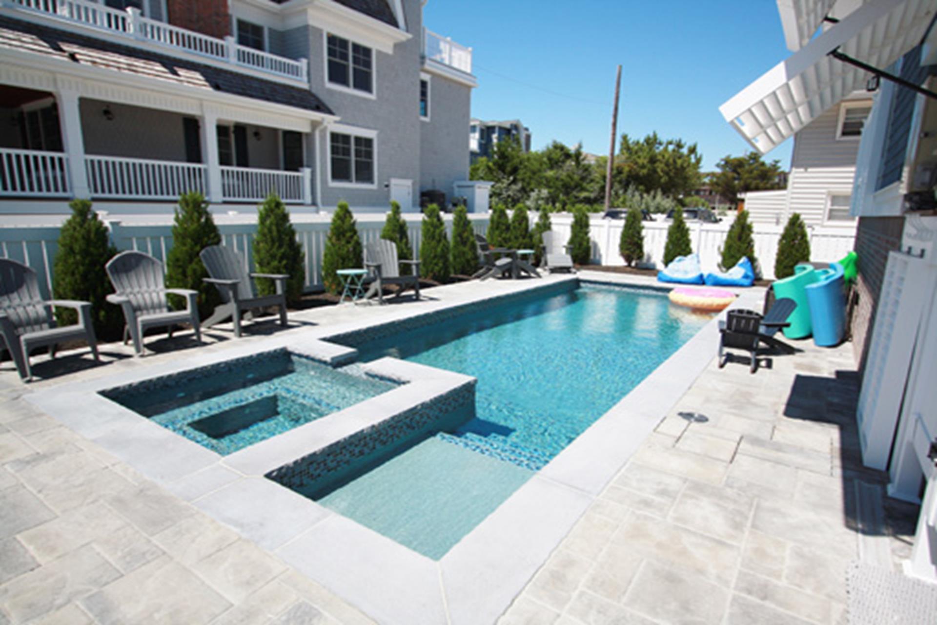 OCEAN FRONT LUXURY: This spectacular new construction 3 story home sits directly on the Ocean and Avalon s finest beaches. Come enjoy waking up to the Sunrises and listening to the crashing of the waves in the surf at night. First floor consists of 2 bedrooms and 3 baths, laundry room, family room with wet bar and decks. Second floor has a great room with a fire place, kitchen and dining area all offering panoramic views of the ocean along with bedrooms and 1 1/2 baths, plus an extra laundry area. The third floor has a master bedroom and an extra bedroom along with 2 baths one is the Master Bath . Master closet is not for tenant use . There is a full dresser & full armoire in the master - a 2nd armoire in the 3rd floor hallway & a closet in the kid 3rd floor bedroom. Incomparable Ocean Views from all of the spacious decks on the second and third floor. A beautiful pool for your enjoyment . Conveniently located to dining, shopping and recreation. "Please take note that the fridge in the garage area is not for tenant use . Elevator is not for tenant use . There is a maximum occupancy of 15 people . No pets are permitted on the premises . $500 fee upon departure for every owner drawer or closet broken into . . Mulit week renters must absolutely have our cleaning service once a week (paid by owner) cleaning lady will attempt to accommodate renters schedule on a week day. Refusal to allow access results in $1200 deep cleaning fee at check out to be applied to security deposit. Owner provides 2 Beach Umbrellas, 1 Beach Cart and 10 Beach Chairs, can not guarantee condition or amount as summer progresses.