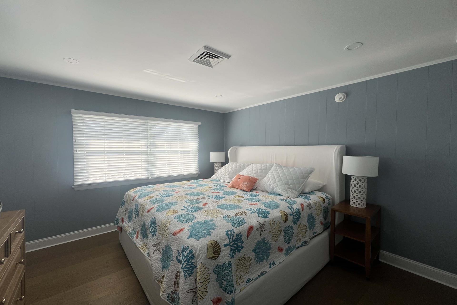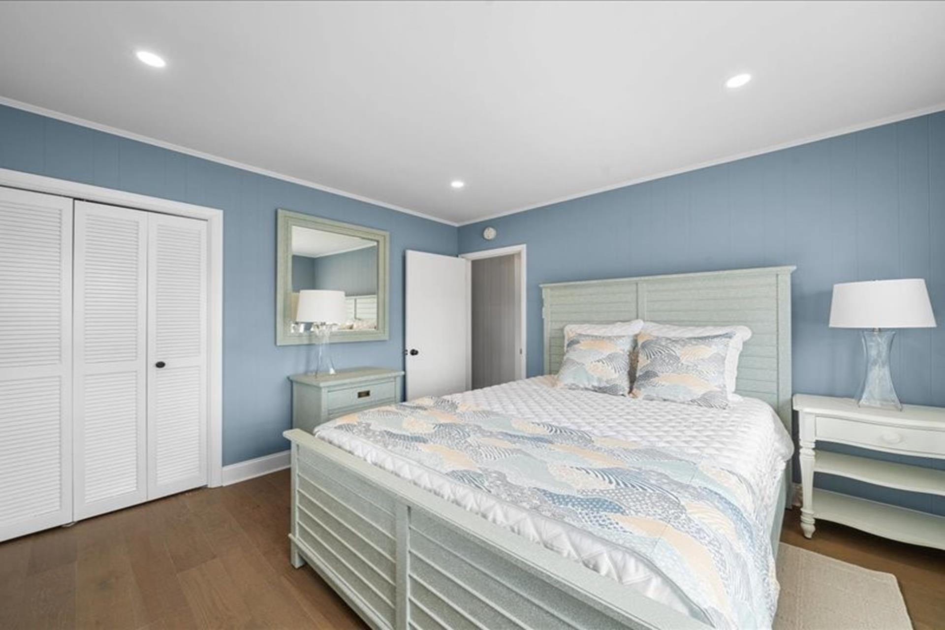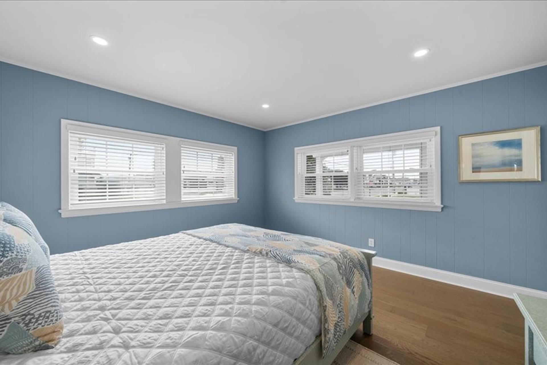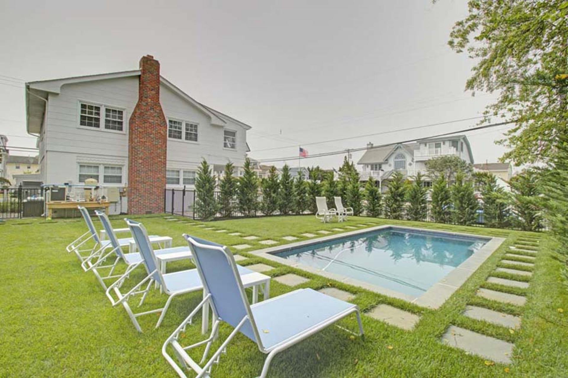 This lovely home is located just 7 homes from the beach and within walking distance to shopping, restaurants and recreational areas! This 5 bedroom and 2 bath home has an in-ground pool (11X22). There is pool seating around the pool but not a table. The first floor offers a family room with sofa bed (double), 3 bedrooms and full hall bathroom. The three bedrooms on the first floor are a bedroom with a queen. bedroom with a queen and bedroom with two twins. The second floor offers two bedrooms one with a King bed and one with 2 twins. There is a full hall bathroom along with open and bright living, dining and kitchen areas. Second floor deck has table and chairs with umbrella to dine outside and enjoy the water views. Also, there is a spacious sun room off living room and deck. Pool area outfitted with loungers, Weber grill, there is an outside dining table on the second floor deck.
