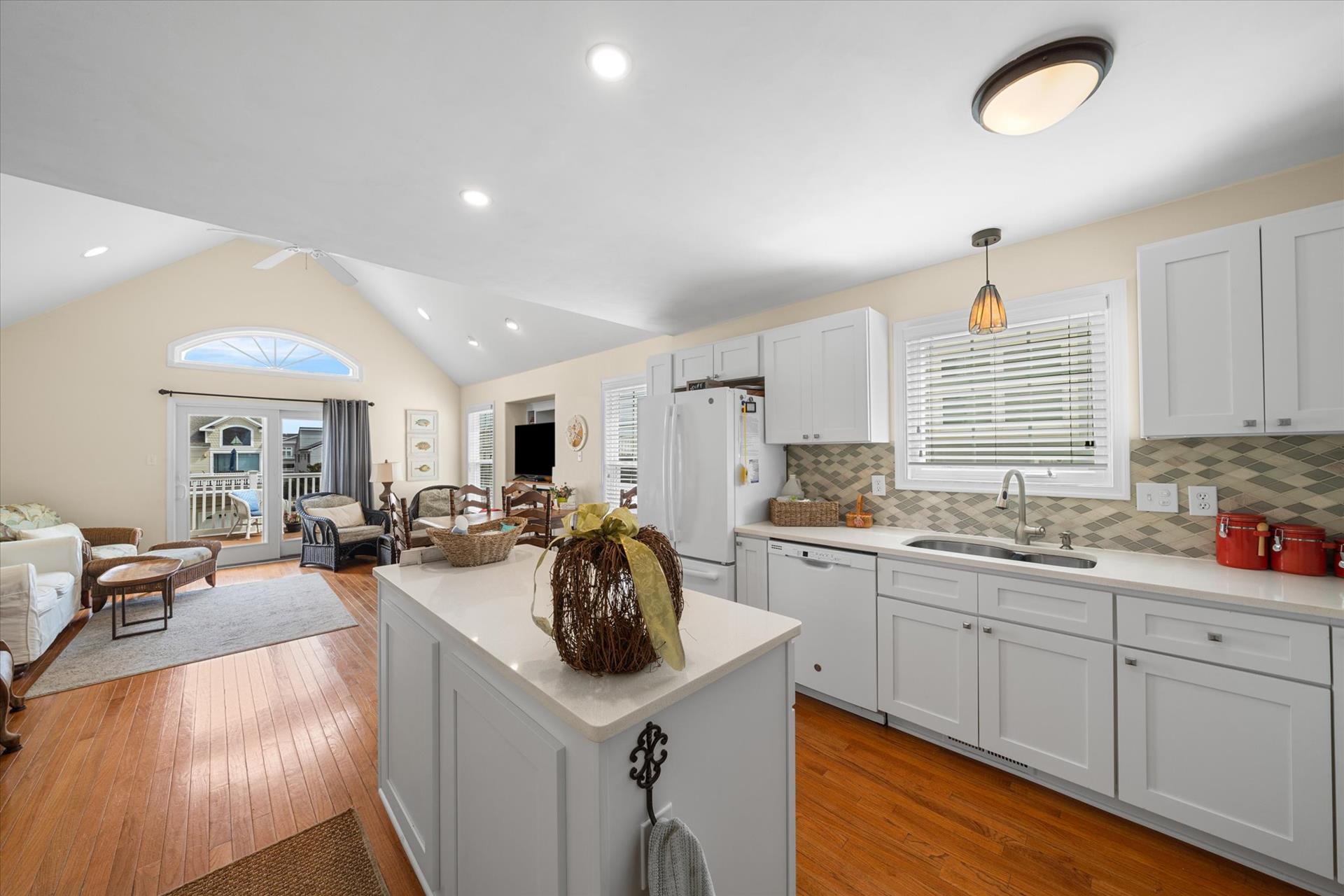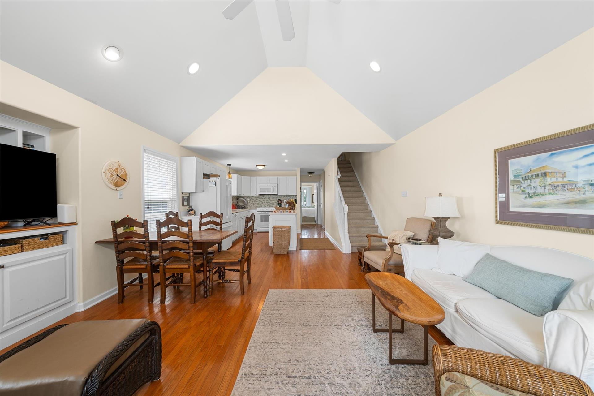This 5 bedroom 3 ½ bath townhome is located right in the heart of town. Park your car for the week and walk to any of the shops and restaurants on Dune Drive or a short stroll to the beach. This home has two bedrooms on the first floor, one bedroom with a king size bed and one with a daybed. The second floor features the living area and primary bedroom with ensuite bathroom. And the third floor has one bedroom with king sized bed and bunk room with two sets of bunks. There is also a storage area for all your outdoor and beach gear. Call us today to reserve your week.