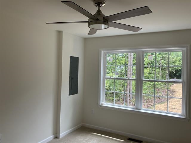 | This property features the same finishes and model as in the pictures, with the primary difference being an additional 100 square feet of living area. This home boasts 3 spacious bedrooms with 2 full bathrooms and a side entrance with a mud/laundry room. The open floor plan features a kitchen island with quartz countertops, vinyl plank flooring in the living areas, and carpeting in the bedrooms. Storage is plentiful, as each bedroom has a sizable closet in addition to a coat closet, hall closet, and laundry room closet. The sliding glass door from the dining area leads to a concrete patio area surrounded by woods. The color scheme and stainless steel appliance package are identical to 203 N George Street, MLS #251695. The home specifications, floor plans, and front elevation are located in the Associated Docs. Porch is an artist rendering, not included |