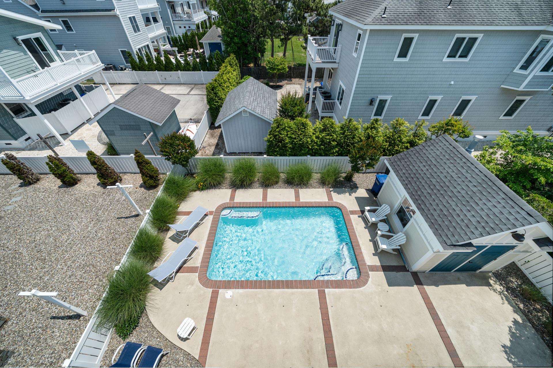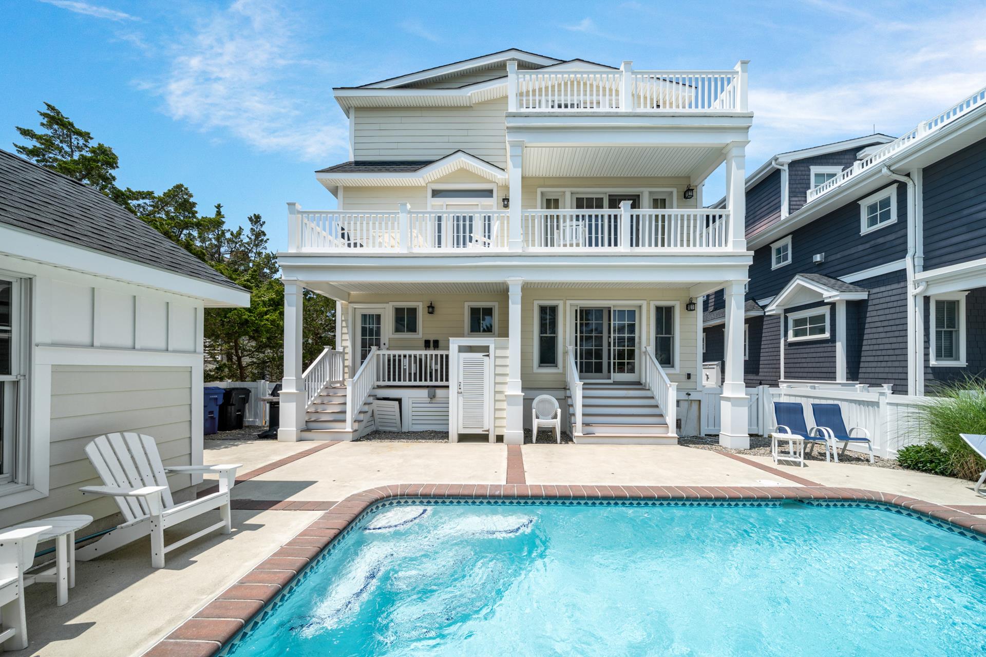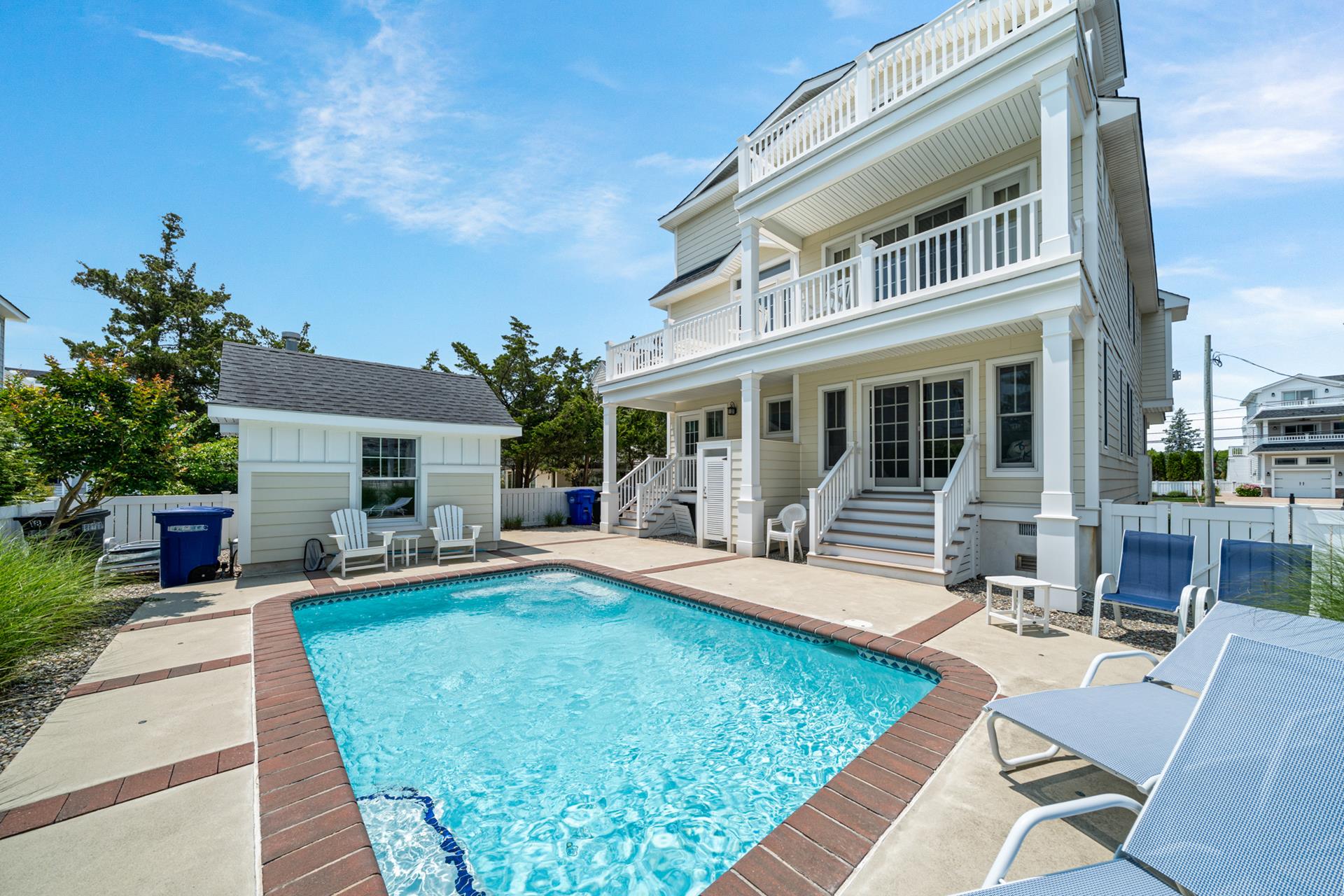 | SPECTACULAR, BEACH BLOCK HOME WITH A POOL, 6 BEDROOMS, 5 FULL BATHROOMS AND TWO POWDER ROOMS!!. With no streets to cross on the way to the beach, this gorgeous home is ideally located in a quiet neighborhood & within a short stroll of Avalon s popular Business District! The location is secluded from the busier Duplex & Business zoning AND provides easy access to the Public Recreation Area on 12th Street (ball fields, tennis courts, playground), surfing beaches & the boardwalk access at 21st Street. The home is distinguished by the professionally decorated interior, an EXTRA LARGE open & inviting Great Room, the oversized 1st Floor Family Room (spanning the width of the rear of the home and overlooking the pool) and abundant use of glass to create a bright & airy interior! You ll hear the roar of the ocean & the Master Suite offers a peek of the ocean as well! Additional attractive highlights include: hardwood flooring & granite counters throughout, private bedroom/bathroom suites, a spacious laundry room w/access to the heated pool & fenced patio area, a storage building and an off-street parking pad. The 1st Floor offers a front deck, 3 bedrooms (1BD w/king, 2BD s w/2 twins each), each with a private bath, a Family Room with adjacent Powder Room and Laundry Room. The 2nd Floor offers front & rear decks, 2 bedrooms (both w/Queen beds) and 1 bathroom (Jack/Jill), a Powder Room, and the expansive kitchen & Great Room. The 3rd floor offers an ocean view deck off the large Master Suite w/king plus a sitting room. Owner provides changeover cleaning upon your departure! OWNER REQUIRES A SECURITY DEPOSIT. |