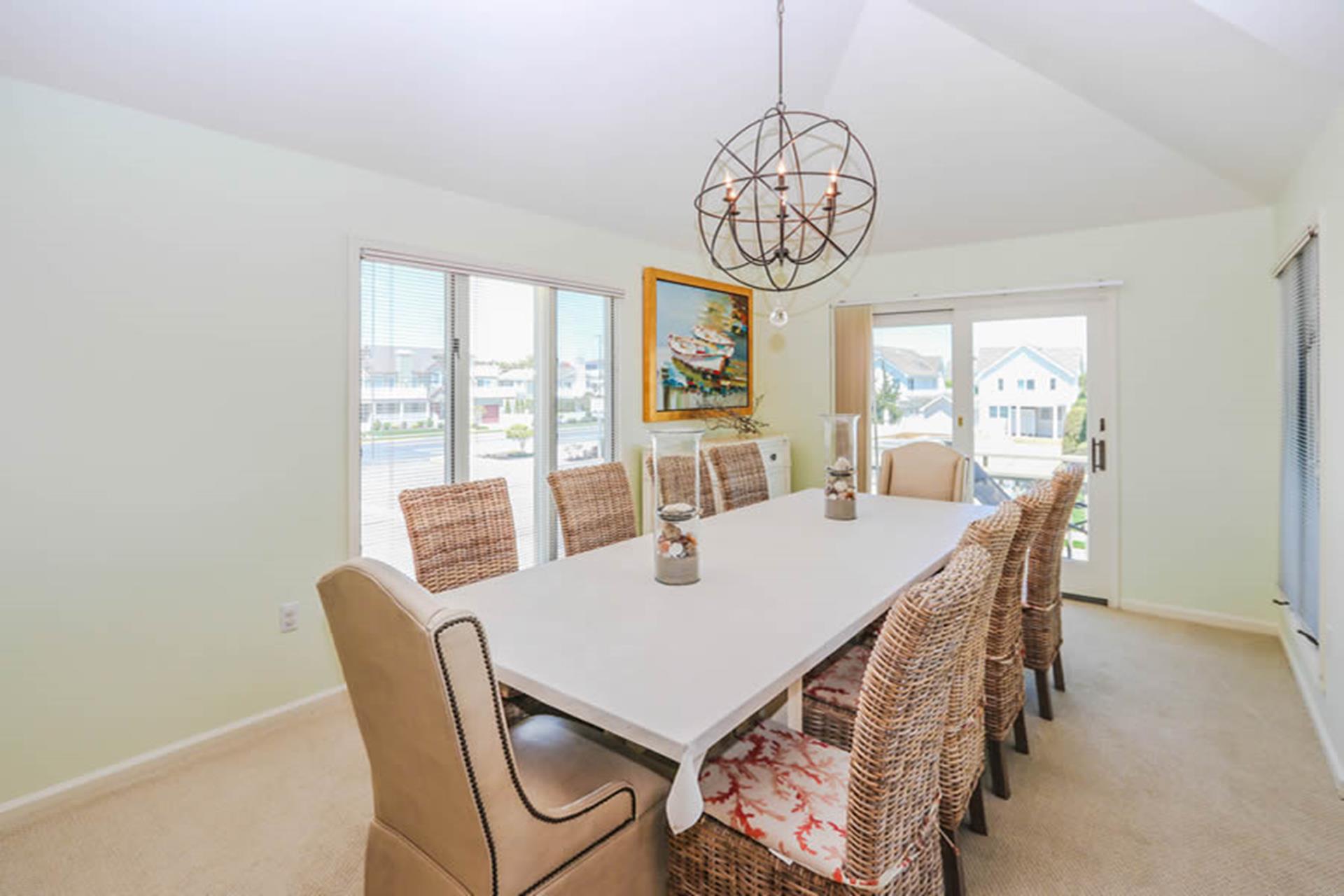 | AVALON BEACH BLOCK SINGLE FAMILY! Take a look at this beach block single family home located in the center of Avalon along the boardwalk! This upside down style home offers an open living room, dining area with cathedral ceilings. In addition on the 2nd floor you will find a primary bedroom with a private bath featuring a power jet tub and offering a queen size bed, 1 guest bedroom with 2 single beds, 1 guest bathroom and a large sun deck on the front offering a view of the ocean. The 1st floor features a large family room with a sun deck with southern exposure for sunning, 1 guest bedroom offering a queen size bed and another guest bedroom with 2 single beds, 1 hall bath and a laundry room. |