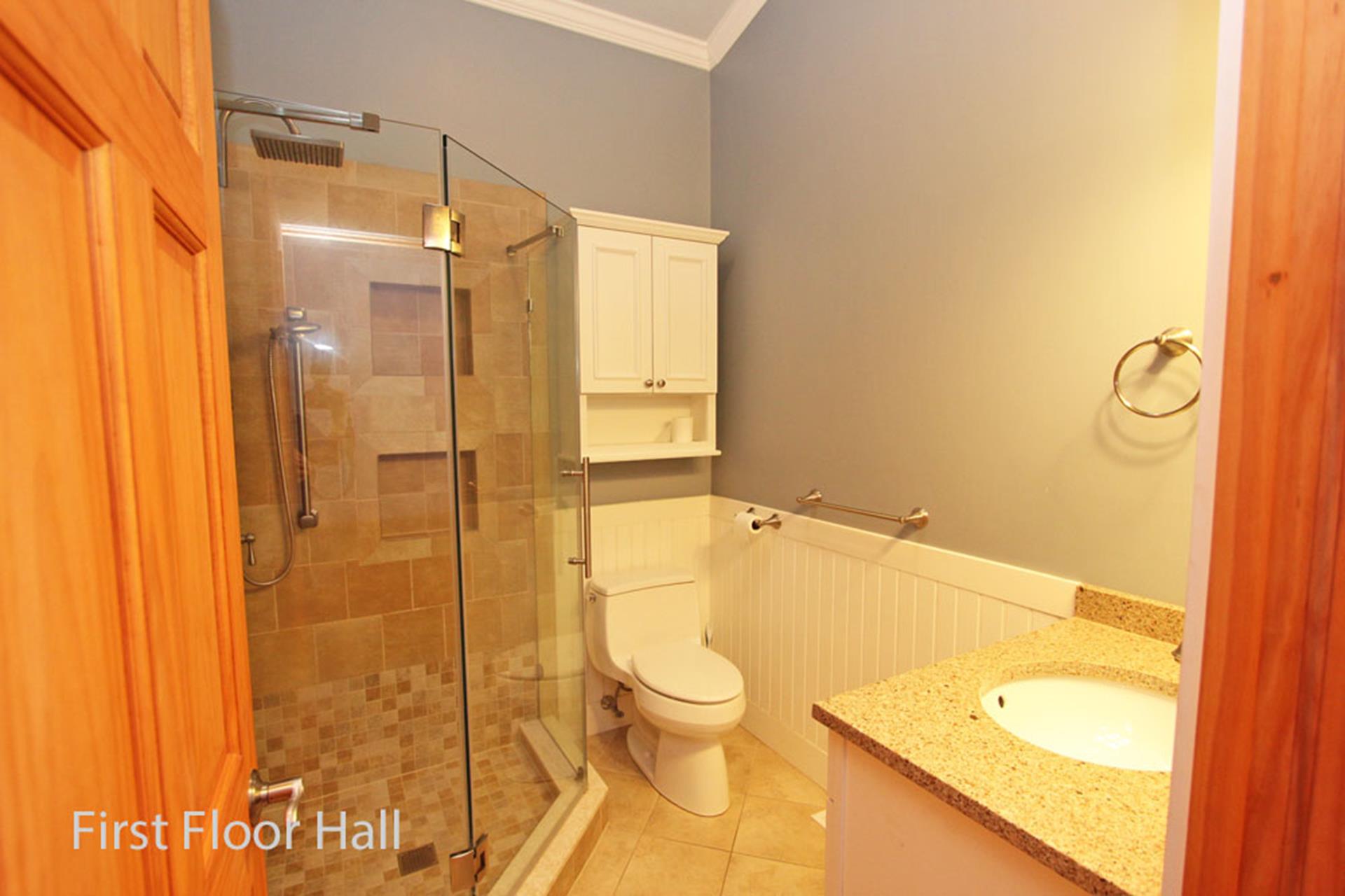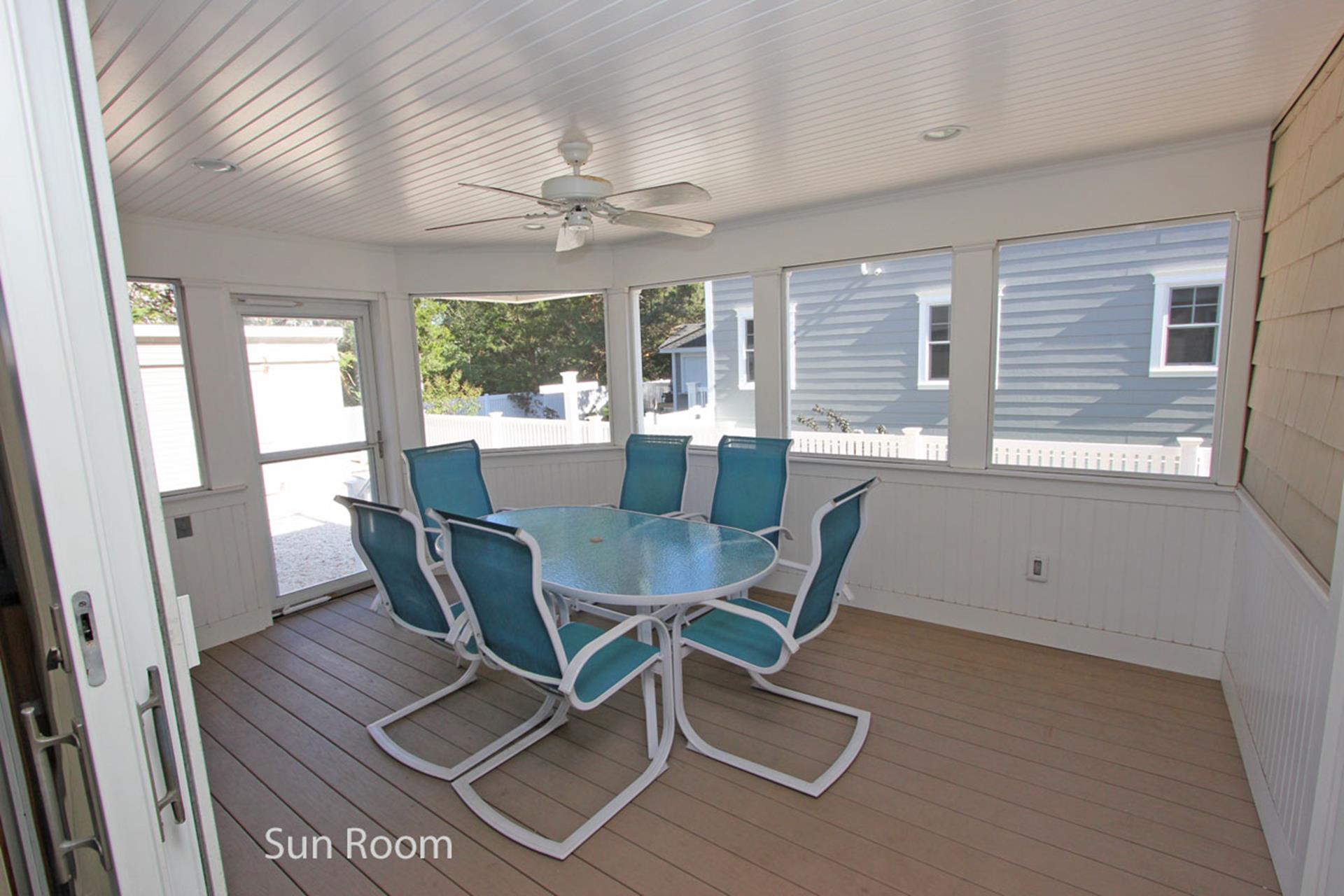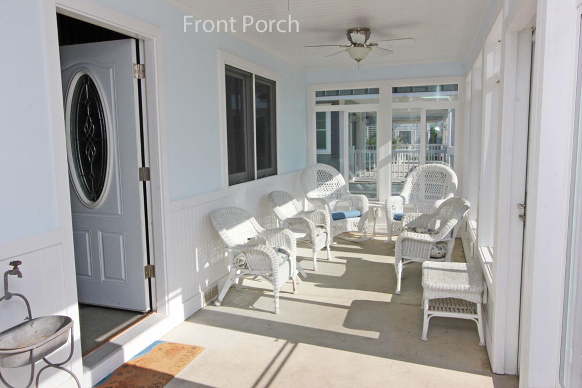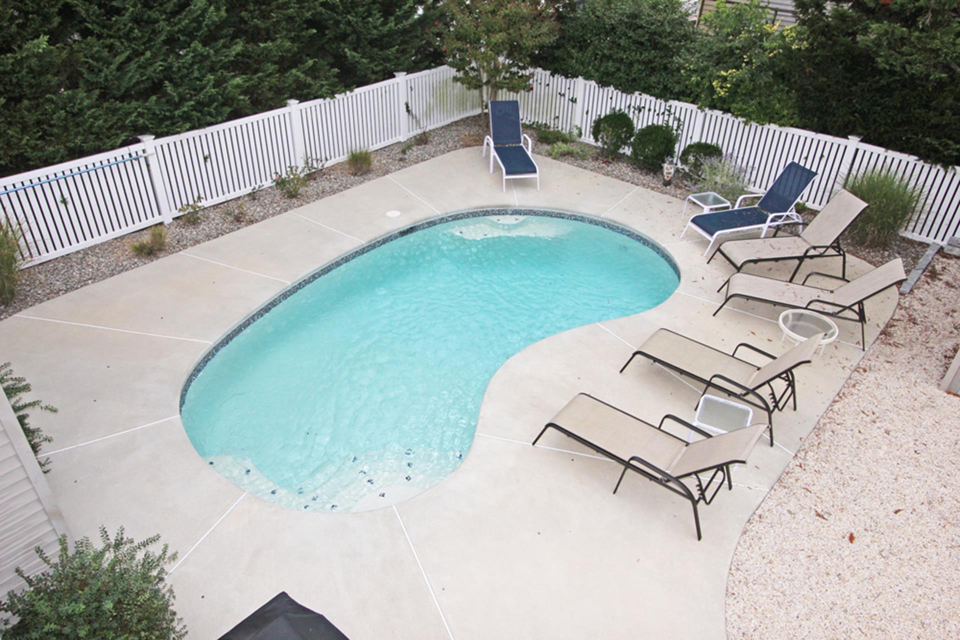 | This four bedroom, three bath Cape Cod style home is located in the north end of Avalon. The first floor offers the main living area, dining area and kitchen, a bedroom with queen size bed and a private bath (tub), a bedroom with two twin size beds plus a full hall bathroom (shower). The second floor has a bedroom with a queen size bed with a slider to a deck and the master bedroom with king size bed and private bath. This home is complete with a heated in ground swimming pool and a screened in front porch. THIS PROPERTY RENTS FRIDAY TO FRIDAY. |