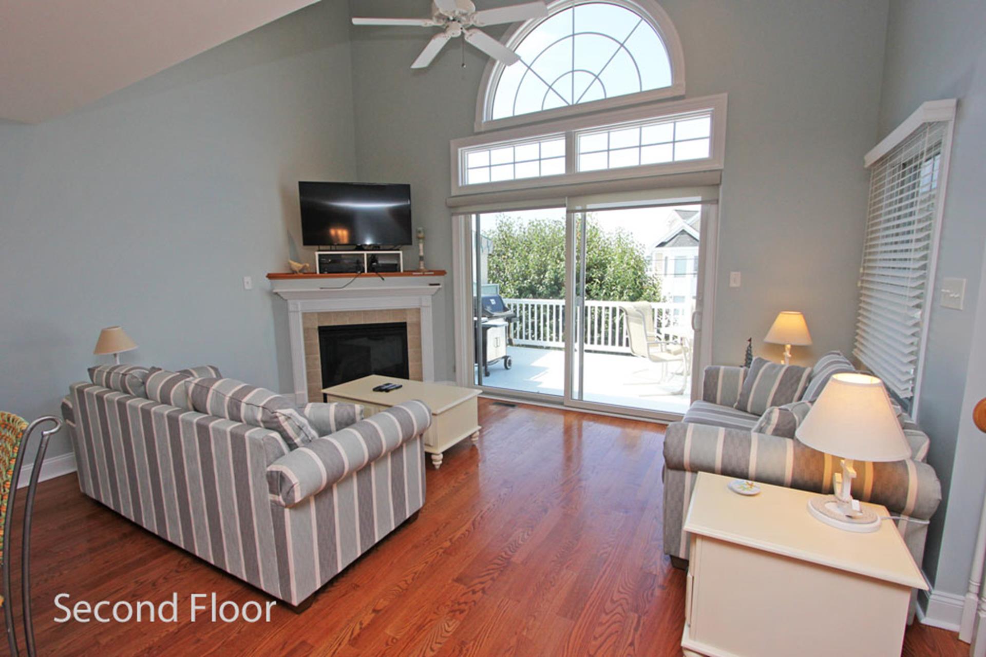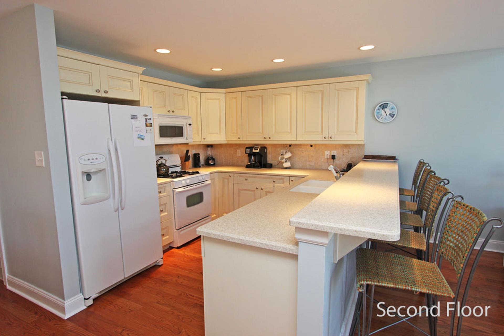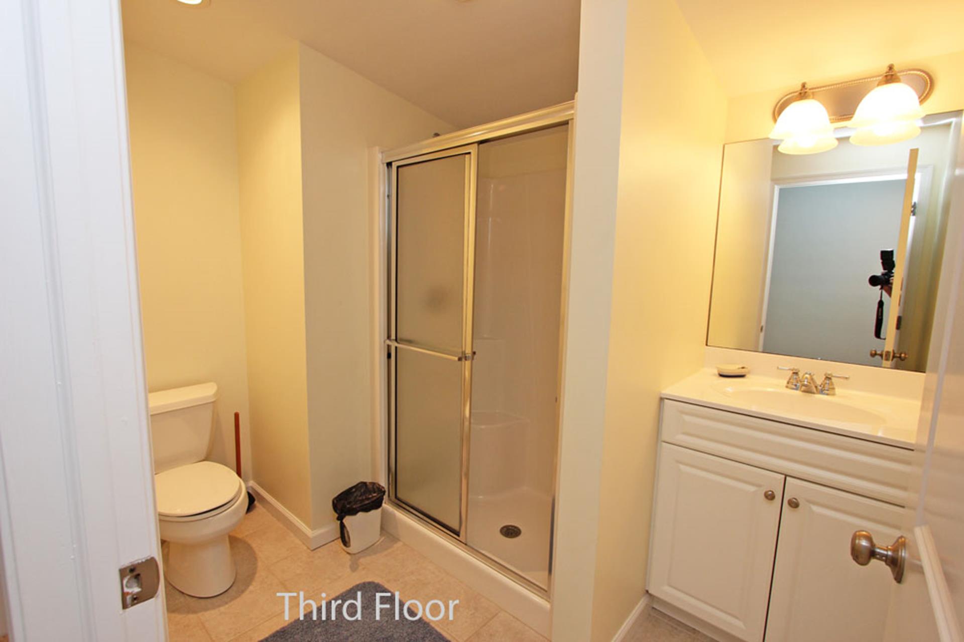 | Beautiful three story townhouse with 5 bedrooms and 5 1/2 baths. The first floor offers a game room with wet bar and a slider to a deck, a full hall bathroom, a bedroom with a double size bed and a set of bunk beds and a junior master bedroom with a queen bed and private bath. The second floor consists of the main living area with a slider to a deck, a half bathroom, the kitchen and dining area. Also on the second floor is the master bedroom with a king size bed and master bathroom with jacuzzi tub. There is a bedroom with 2 twin size beds, a full hall bathroom and a bedroom with a queen size bed (attached bathroom) on the third floor along with a sitting area. |
