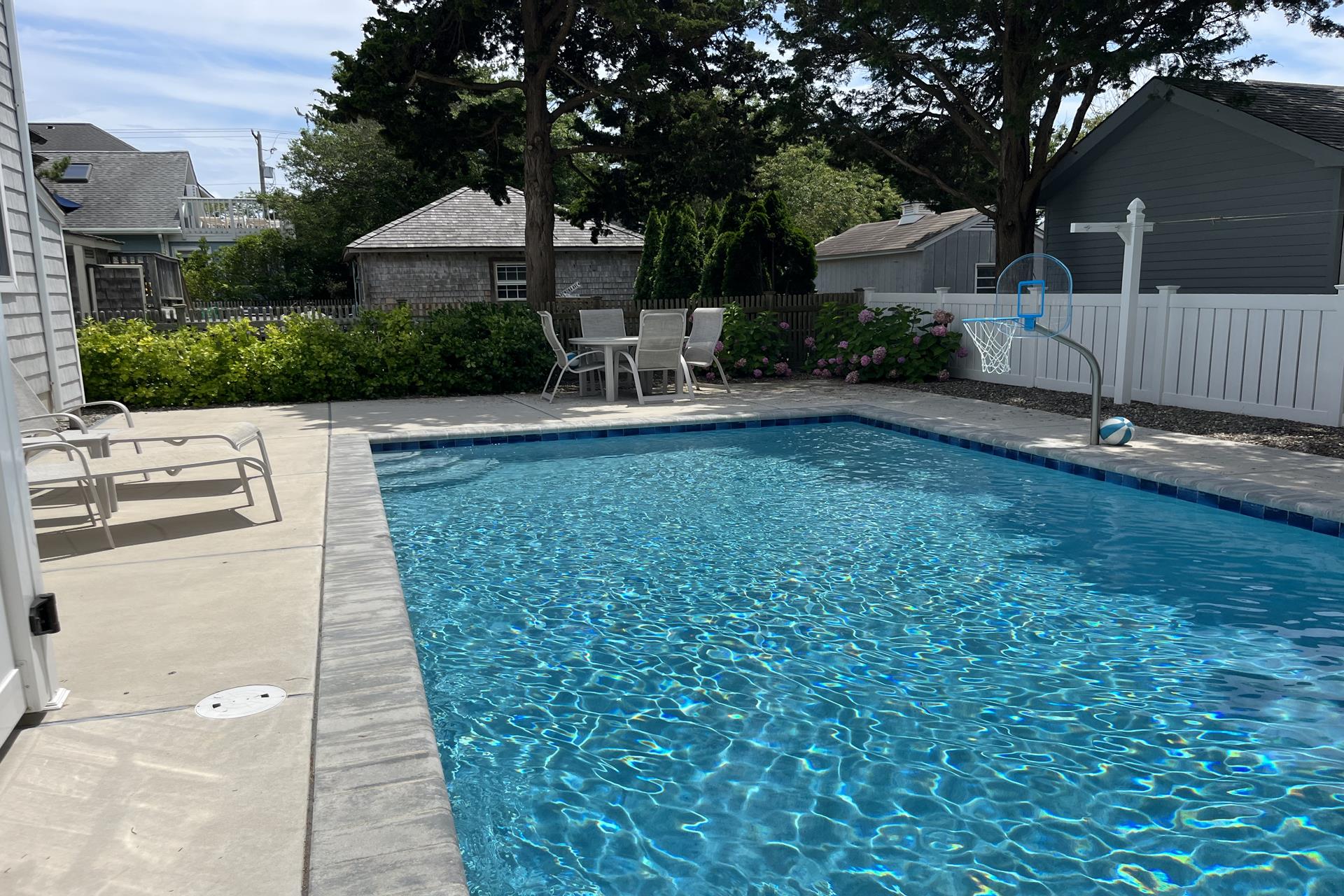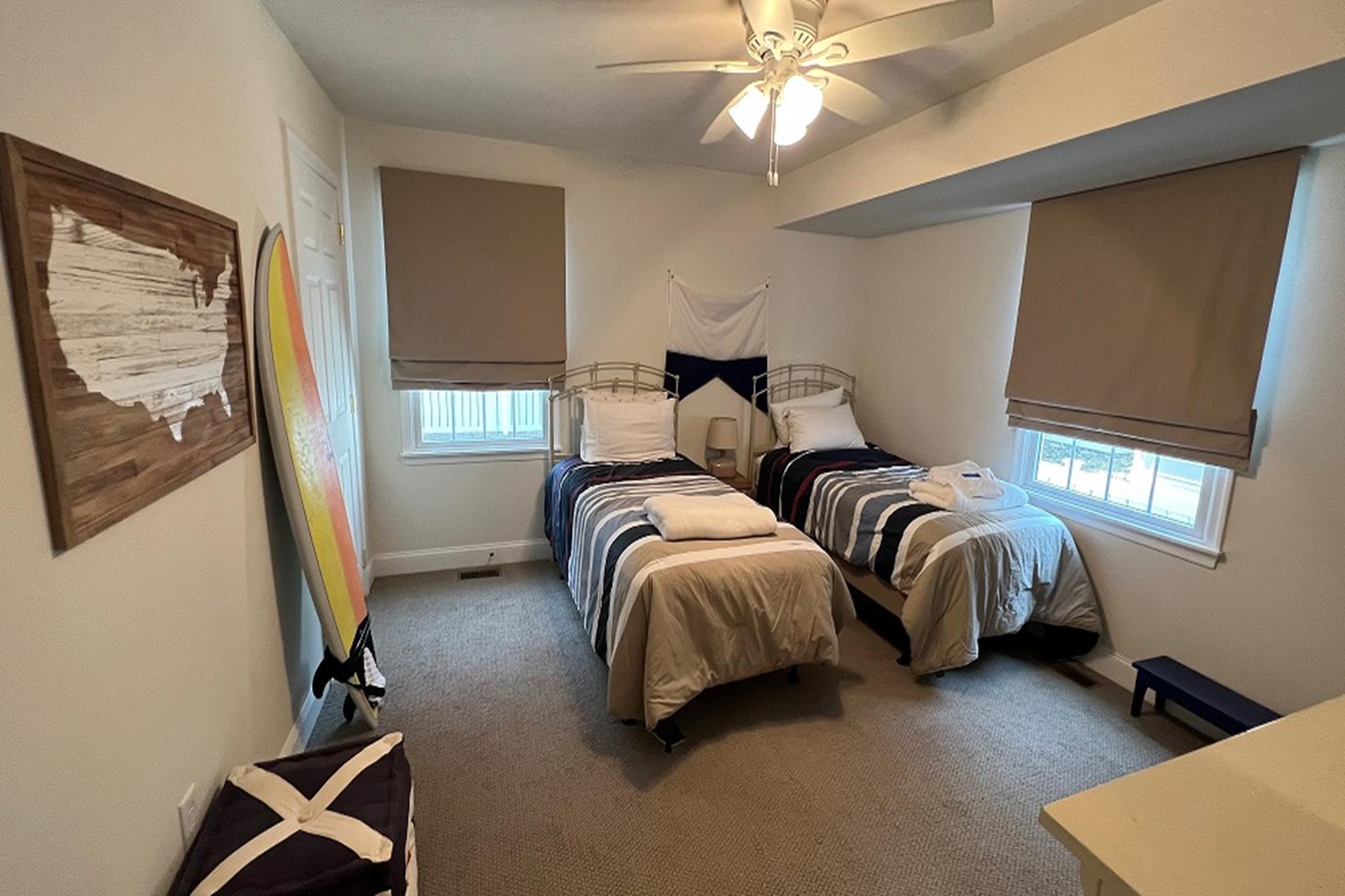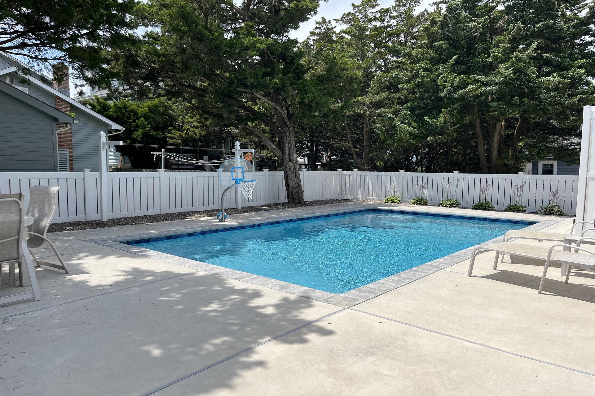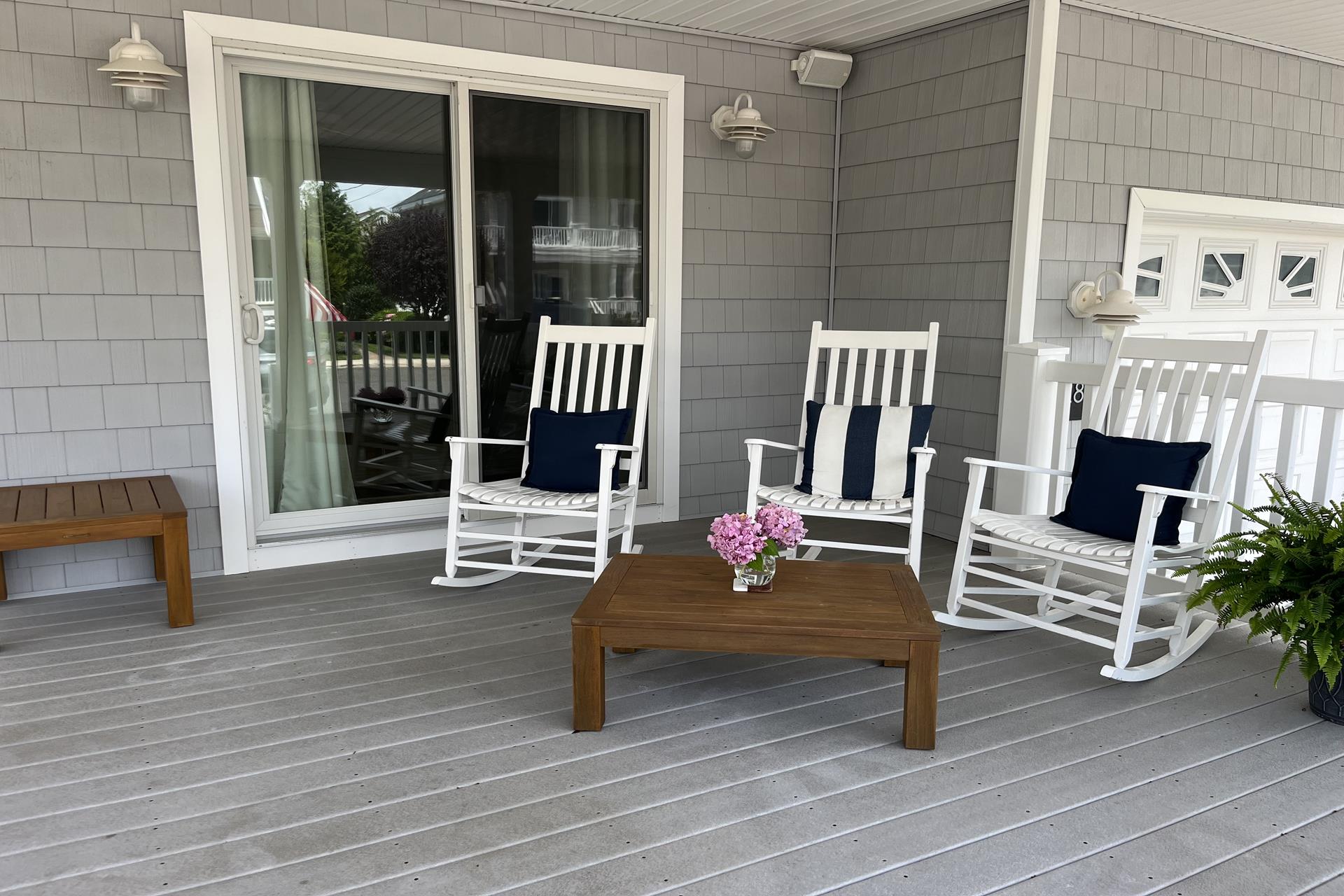 | This 5-bedroom, 5 full bath single-family home features a large 400+ sq. ft. pool and prime location just over two blocks from both the beach and the 8th street playground/park/courts. The 1st floor includes 2 bedrooms (queen, 2 twins), 2 full baths, laundry/utility room, garage, and family room (queen sofa bed) opening to covered 1st floor porch. Upstairs leads to the bright and cheery 2nd floor great room with hardwood floors and vaulted ceilings, featuring an open living area, dining area, kitchen/island with granite countertops, and walk-in pantry. The Sliders lead to a spacious 2nd floor deck, ideal for dining/entertaining and facing north with natural shade from early afternoon on. The 2nd floor also has 2 bedrooms (queen, 2 full size) and 2 full baths. The 3rd floor includes a private primary suite (king), walk in closet, primary bath, and back deck. Backyard features patio/dining area, outdoor shower and large heated pool surrounded and partly shaded by mature cypress trees. Ideal home and location for enjoying all that vacationing at the peaceful north end of Avalon has to offer! |