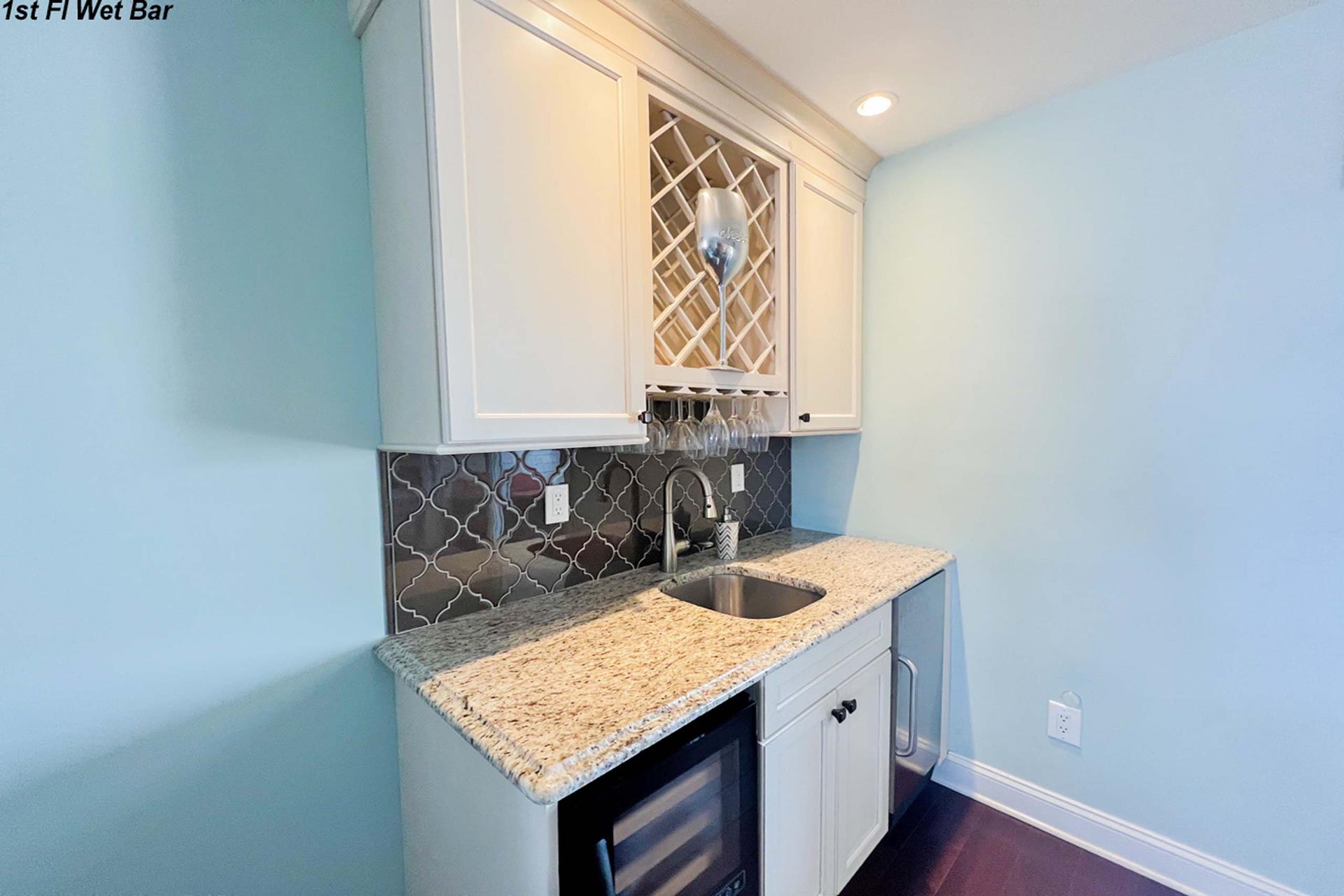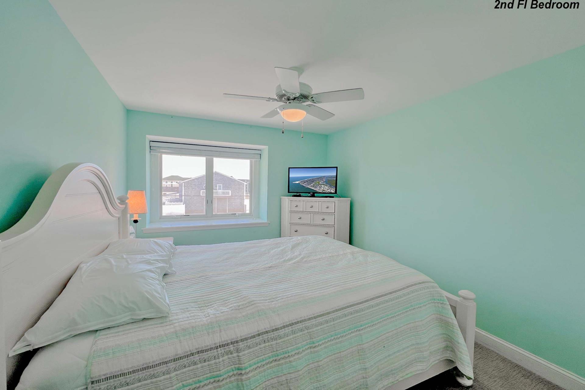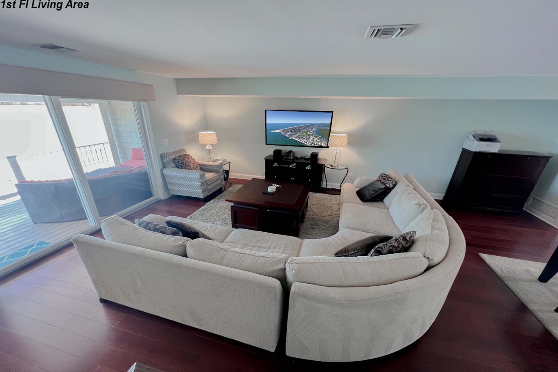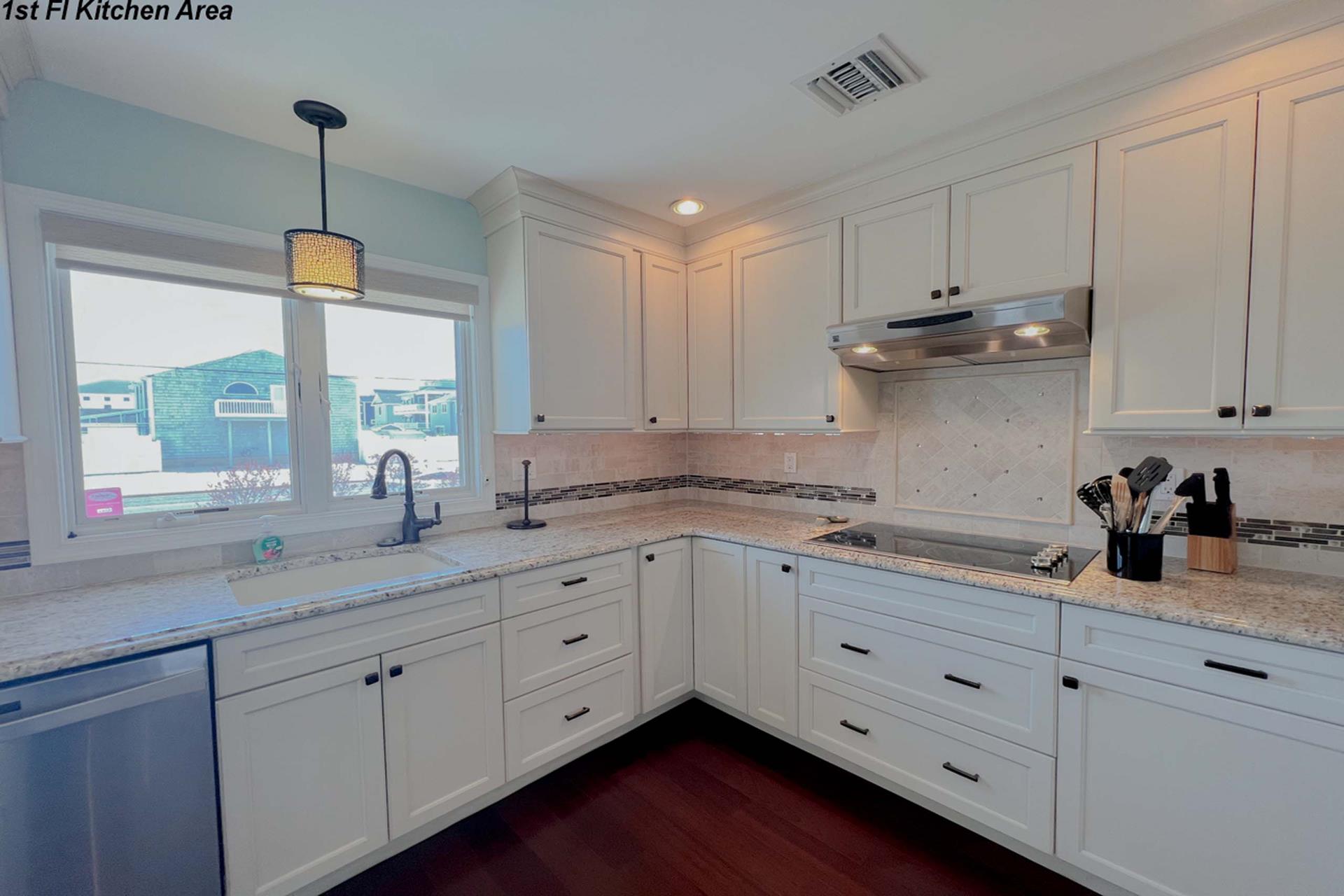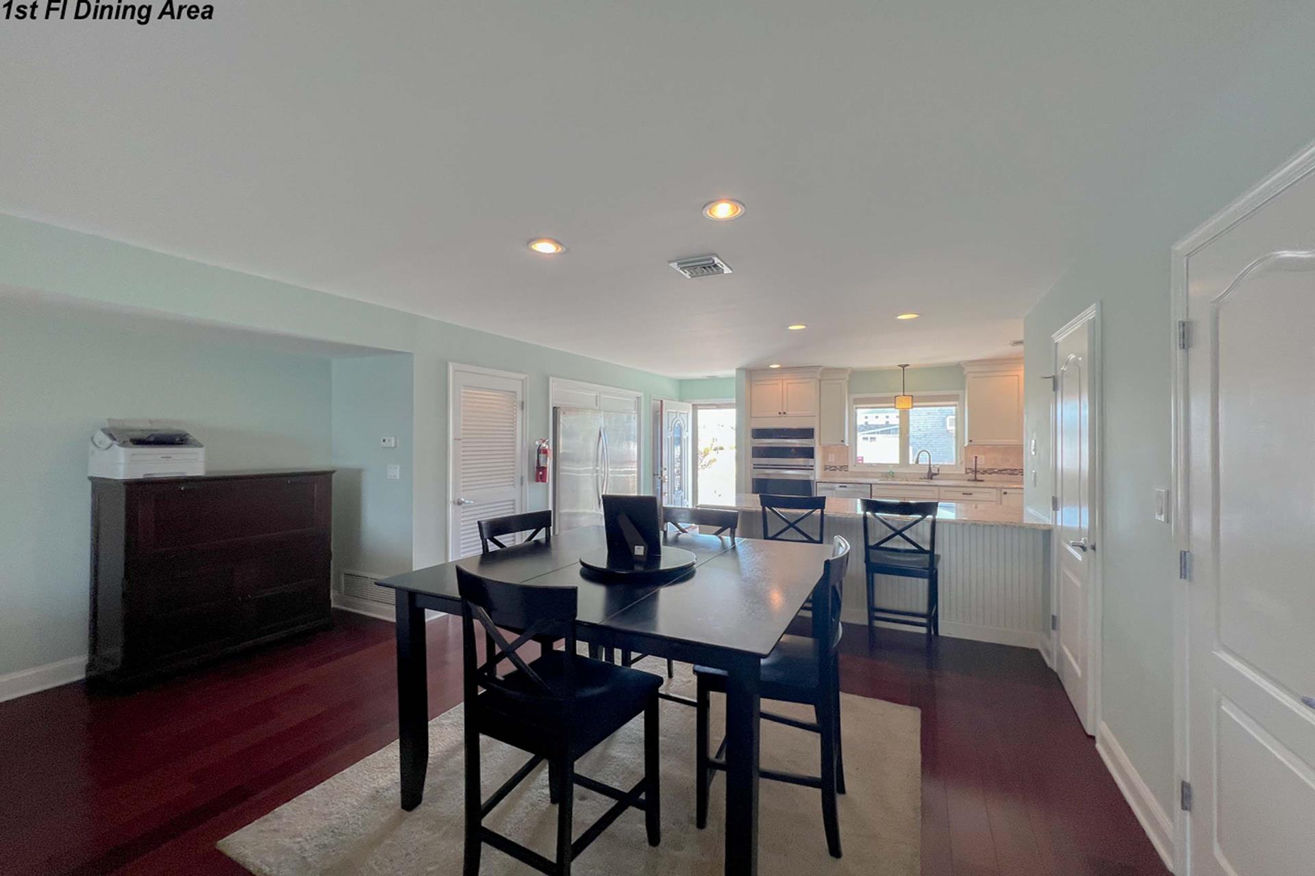 | Fantastic two story bayfront townhome located in the quiet north end area of Avalon situated between 15th and 16th street on Ocean Drive. Close to the recreational area (8th to 12th street) with basket ball court, volleyball, playground, and field. First floor provides custom kitchen with built in dual ovens, large stainless steel side by side refrigerator, ceramic glass cooktop range, hardwood floors, recessed lighting, and granite counters and island with sit down seating. An inviting first floor living area with sectional sofa, hardwood floors, mounted flat screen television, rear deck access and beautiful bay views, mini wet bar area with granite counters, wine enthusiast mini refrigerator and UL ice maker. Also, first floor hosts the dining area and powder room. All three bedrooms are located on the second floor. Bay front Master Bedroom with King Size Bed, his and her closets, flat screen television, carpets, ceiling fan, private deck with great bay views, deck, and private master bath. Southeast bedroom with a Queen bed, flat screen television, ceiling fan, carpets and closet. Northeast bedroom with two twin beds, mounted flat screen television, ceiling fan, carpet and closet. Second floor also features washer and dryer area and hall full bathroom (with tub). There is NO outside shower. |