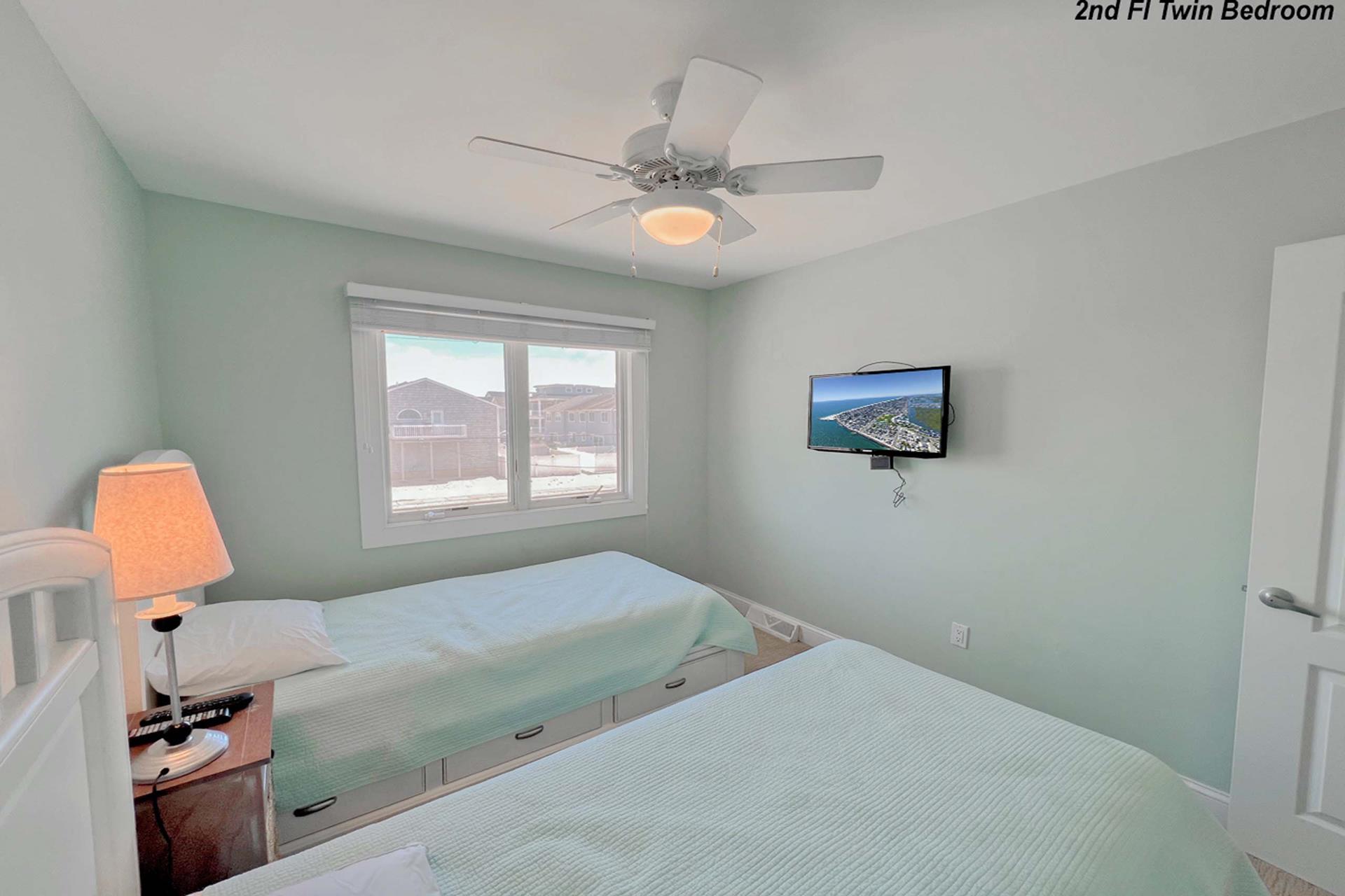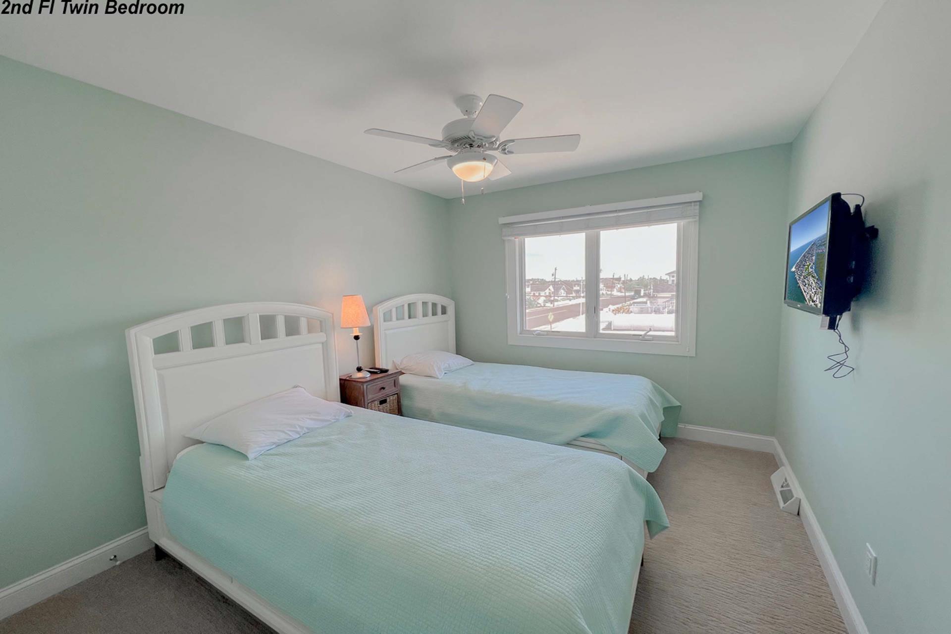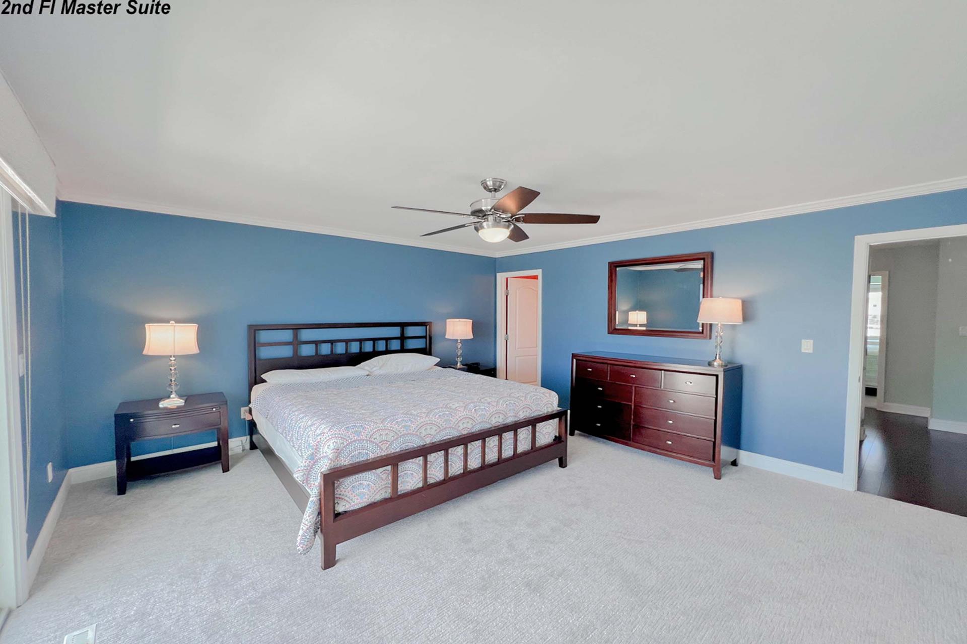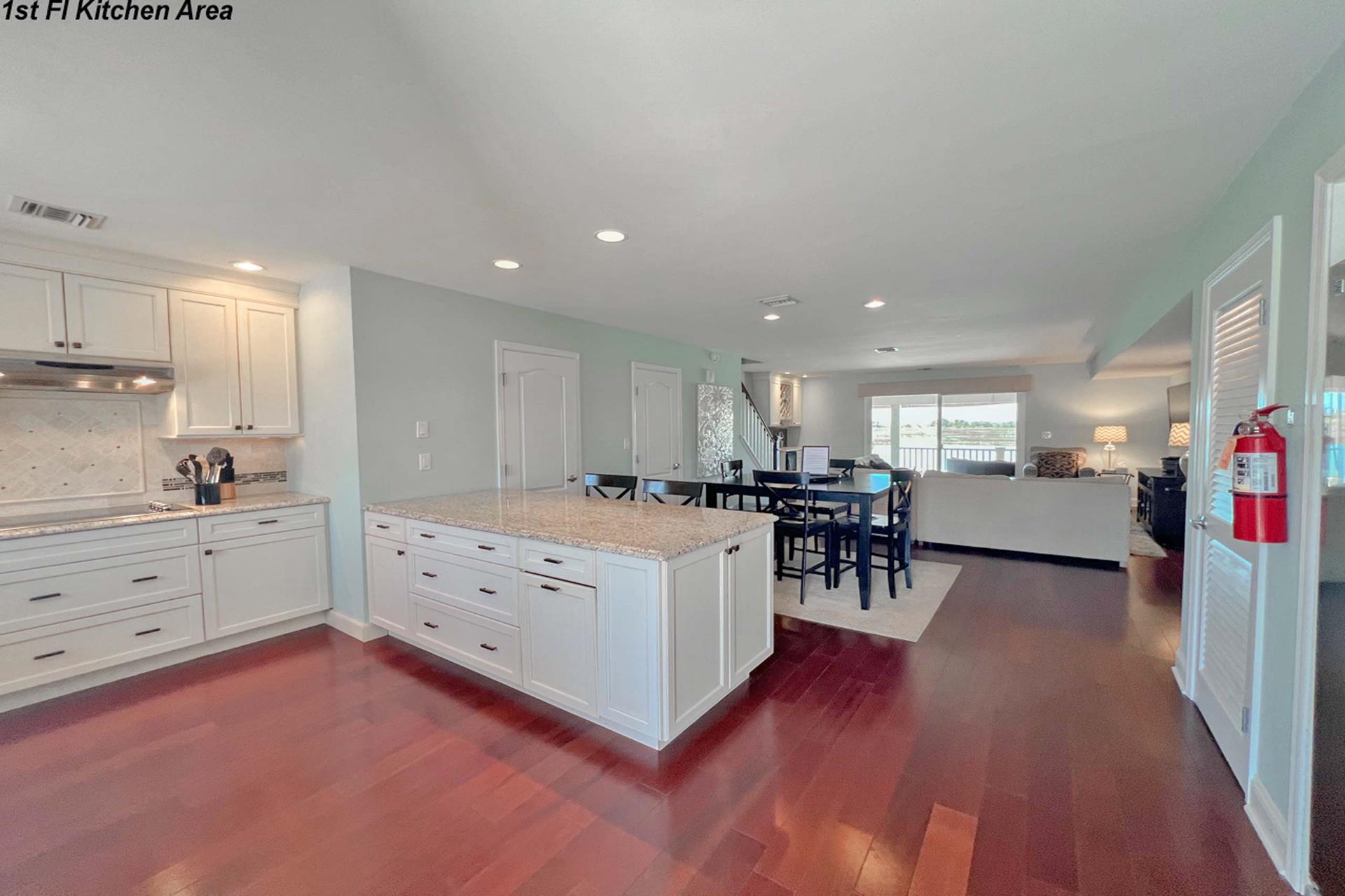 | Fantastic two story bayfront townhome located in the quiet north end area of Avalon situated between 15th and 16th street on Ocean Drive. Close to the recreational area (8th to 12th street) with basket ball court, volleyball, playground, and field. First floor provides custom kitchen with built in dual ovens, large stainless steel side by side refrigerator, ceramic glass cooktop range, hardwood floors, recessed lighting, and granite counters and island with sit down seating. An inviting first floor living area with sectional sofa, hardwood floors, mounted flat screen television, rear deck access and beautiful bay views, mini wet bar area with granite counters, wine enthusiast mini refrigerator and UL ice maker. Also, first floor hosts the dining area and powder room. All three bedrooms are located on the second floor. Bay front Master Bedroom with King Size Bed, his and her closets, flat screen television, carpets, ceiling fan, private deck with great bay views, deck, and private master bath. Southeast bedroom with a Queen bed, flat screen television, ceiling fan, carpets and closet. Northeast bedroom with two twin beds, mounted flat screen television, ceiling fan, carpet and closet. Second floor also features washer and dryer area and hall full bathroom (with tub). There is NO outside shower. |