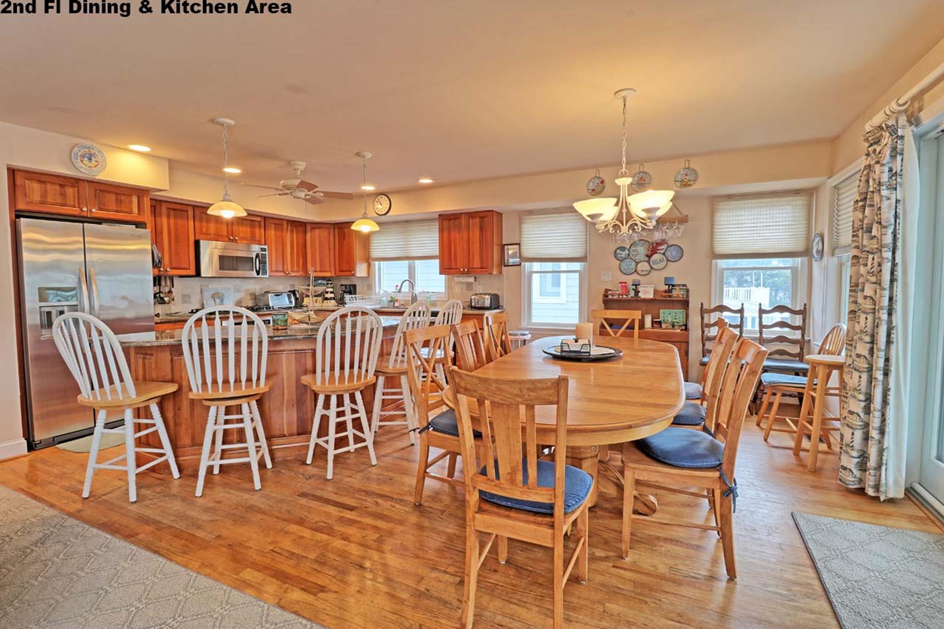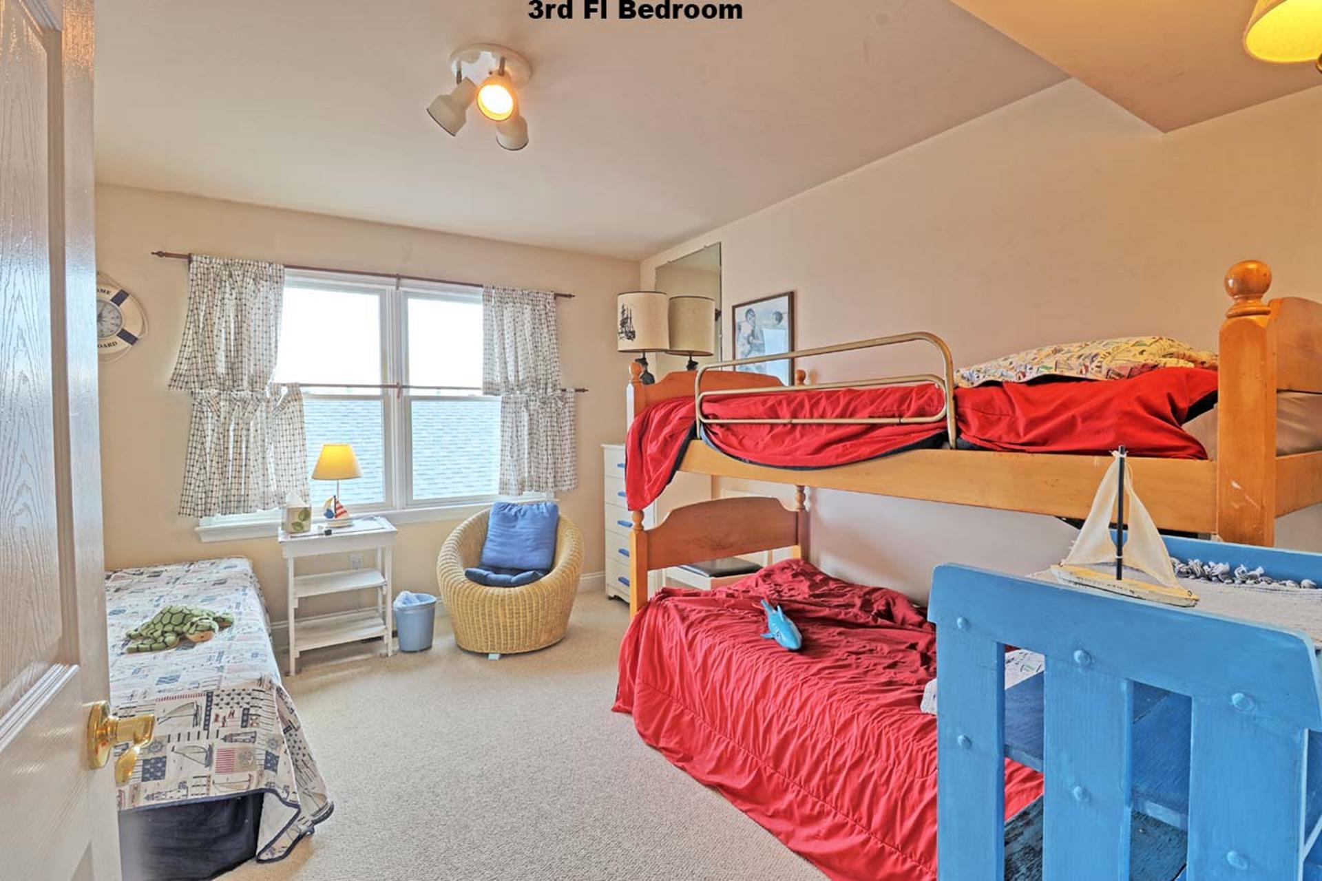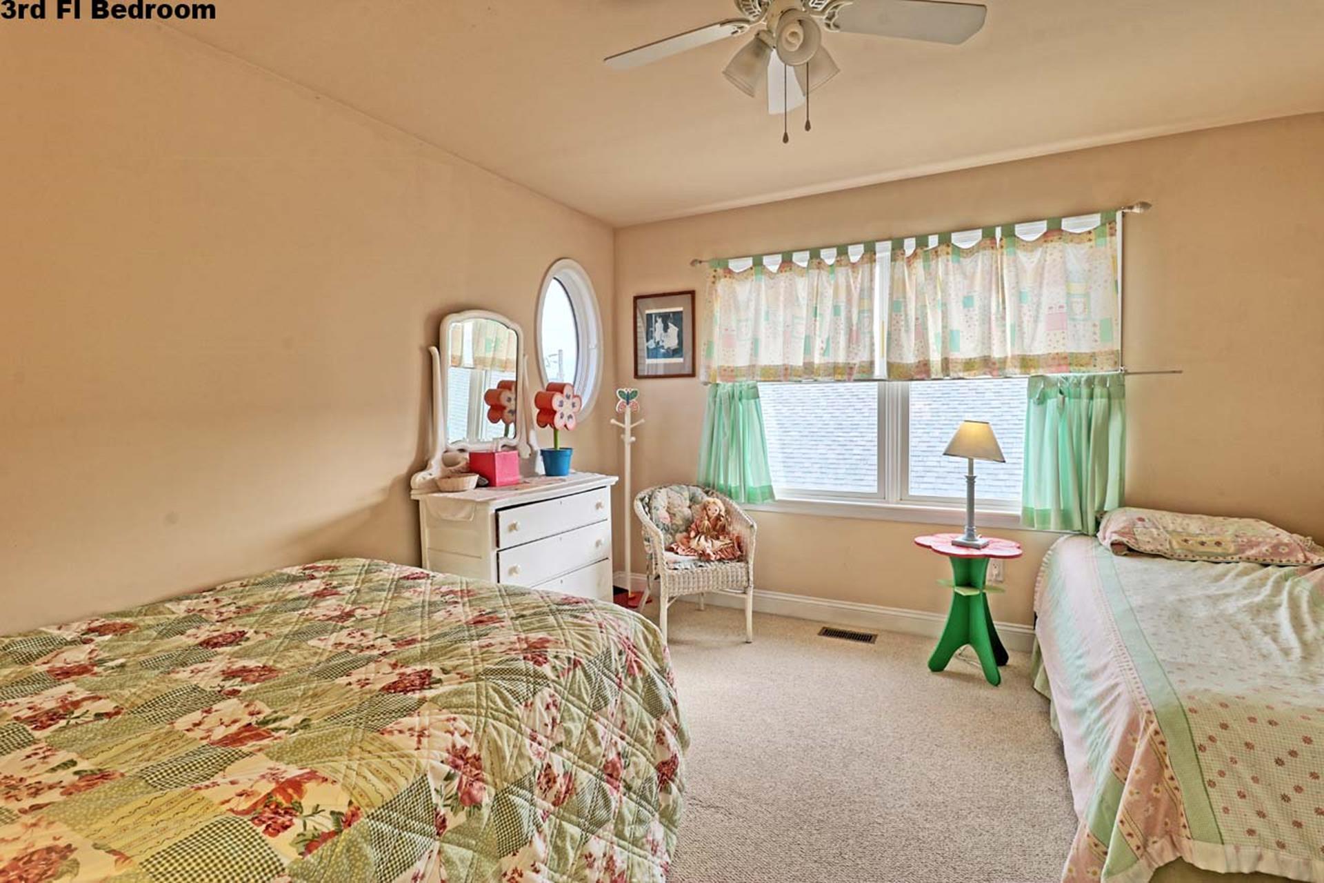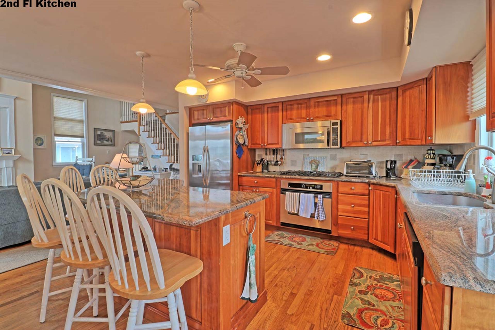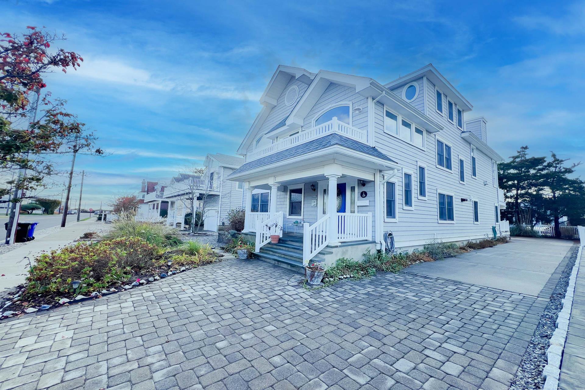 | Friday to Friday Rental- 4pm check in and 12pm check out ! Spacious 3 story upside down style home featuring 8 bedrooms and 5.5 baths sleeping 18! Located on the first floor are three bedrooms. Two rooms contain queen beds and the third offers a queen bed and private bath. Also located on the first floor is a family room and a full bath. The second floor offers the living room, gorgeous gourmet kitchen with stainless steel appliances, dining area, full bath, a bedroom with a king bed and private bath, and a bedroom with a set of twin beds. The third floor includes a full bath and three bedrooms. One room with a double bed and twin bed, one room with a bunk bed (single on top and on bottom) and another single bed in this room for sleeping of 3, and one room offering a king bed and private half bath. Tastefully decorated with hardwood floors, wall to wall carpet and beautiful tile floors throughout the home. Enjoy the short walk to the beach, boardwalk, or town. Owner provides extra fridge in laundry room, blender, iron and ironing board, regular coffee maker and keurig, propane grill in back yard, hose and off street parking. |