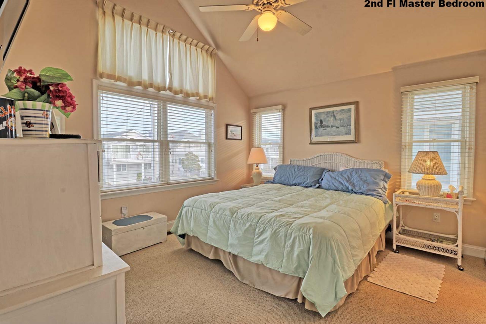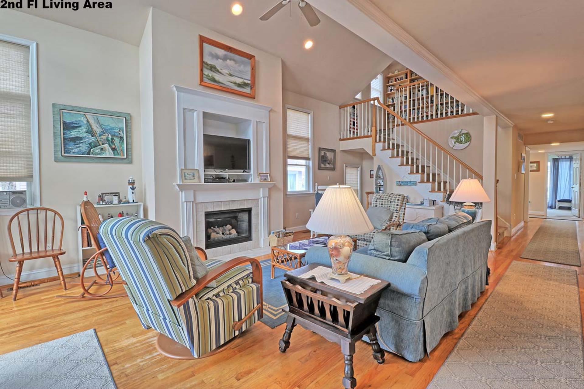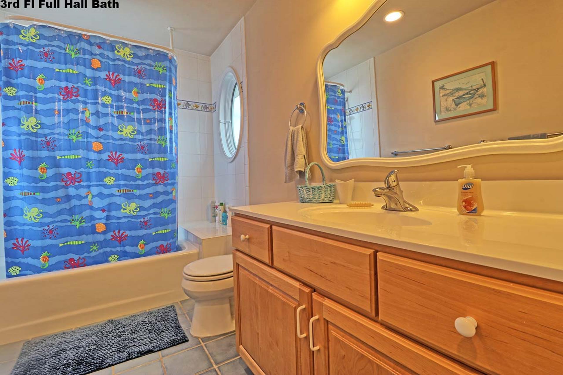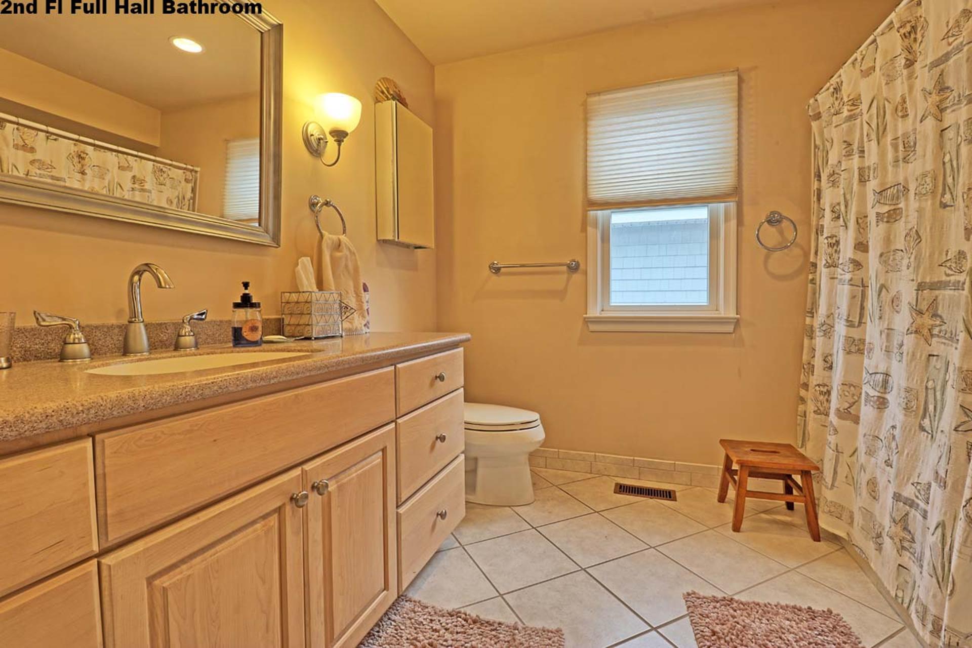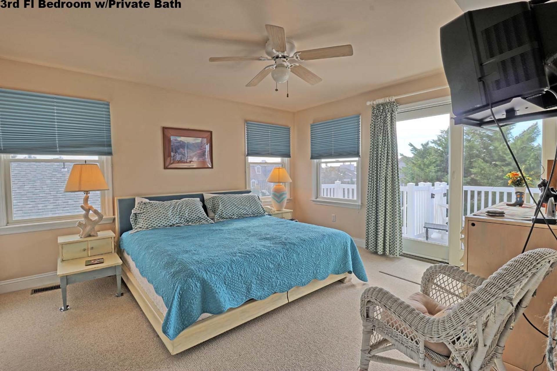 | Friday to Friday Rental- 4pm check in and 12pm check out ! Spacious 3 story upside down style home featuring 8 bedrooms and 5.5 baths sleeping 18! Located on the first floor are three bedrooms. Two rooms contain queen beds and the third offers a queen bed and private bath. Also located on the first floor is a family room and a full bath. The second floor offers the living room, gorgeous gourmet kitchen with stainless steel appliances, dining area, full bath, a bedroom with a king bed and private bath, and a bedroom with a set of twin beds. The third floor includes a full bath and three bedrooms. One room with a double bed and twin bed, one room with a bunk bed (single on top and on bottom) and another single bed in this room for sleeping of 3, and one room offering a king bed and private half bath. Tastefully decorated with hardwood floors, wall to wall carpet and beautiful tile floors throughout the home. Enjoy the short walk to the beach, boardwalk, or town. Owner provides extra fridge in laundry room, blender, iron and ironing board, regular coffee maker and keurig, propane grill in back yard, hose and off street parking. |
