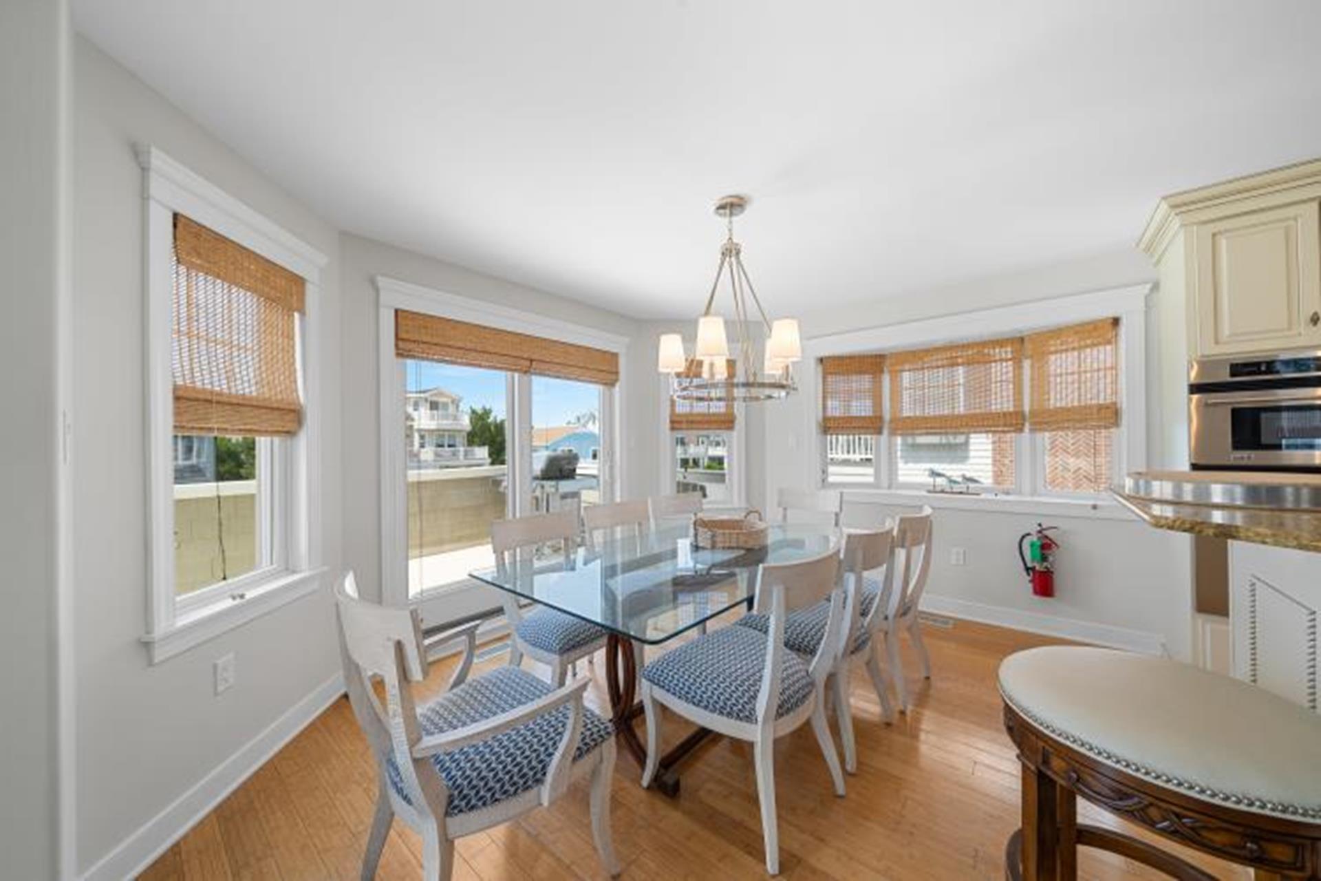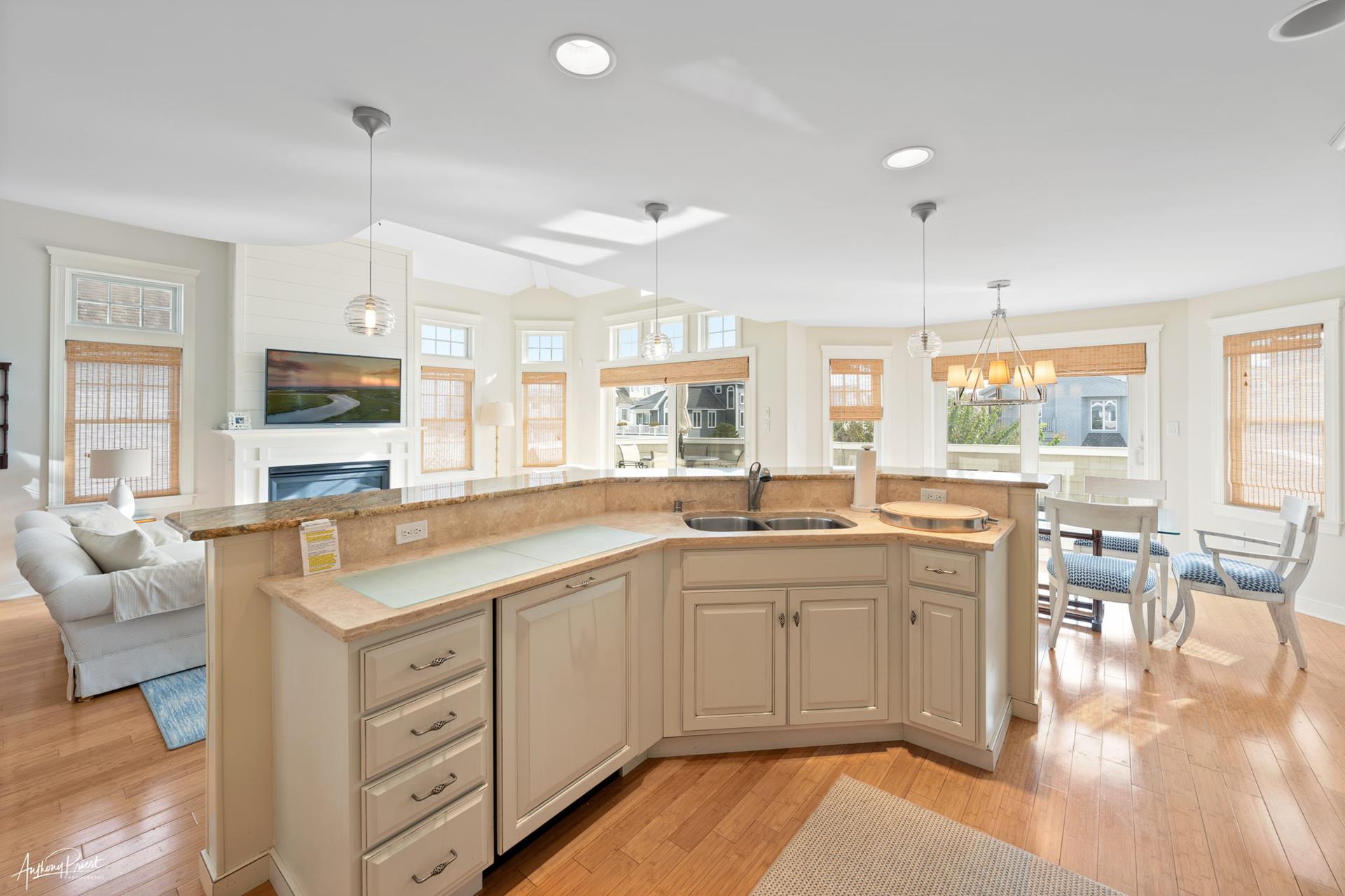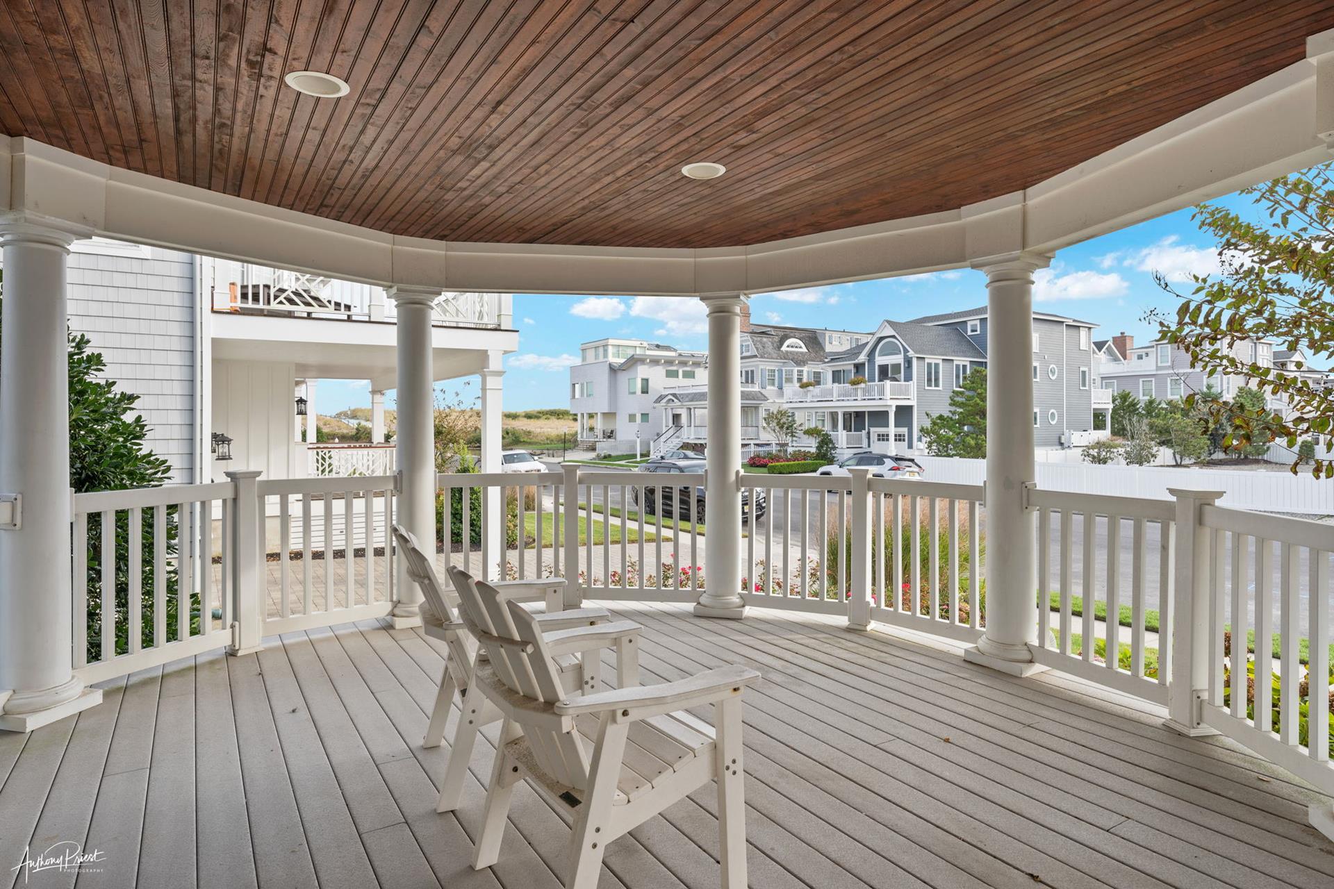 Vacation in the lap of luxury in this spectacular 6BR, 6BA designer furnished and decorated beach block home. Swim or sun yourself by the heated pool in the beautifully landscaped rear yard or lounge indoors in air conditioned comfort in the elegant family room with a fantastic wet bar and flat screen TV. The first floor also holds a full bath and 2 bedrooms: Junior suite with a queen and a set of twin beds. Ascend to the second floor living area where you can relax or entertain in the spacious living room featuring volume ceilings and access to a front deck. Bamboo flooring throughout and vaulted ceilings allow this home to stand out amongst its beach block competition. Prepare anything from a snack to a feast in the well equipped gourmet kitchen, or enjoy the ocean s ebb & flow from the magnificent front decks! A full bath and 2 bedrooms (a junior suite with a King bed and 2 twins, each with deck access to enjoy the view of the pool & patio area) are located on the 2nd floor. Finally, the third floor master suite is fit for a king and queen with vaulted ceilings, a private deck overlooking the heated pool and a peek of the ocean, spacious walk~in closet and king bed. (Pool is open mid~May to mid~September) A junior suite with a queen and private deck are also located on the 3rd floor. This lovely beach block home is well maintained by the Owners and will serve as the perfect vacation destination for you and your family! |