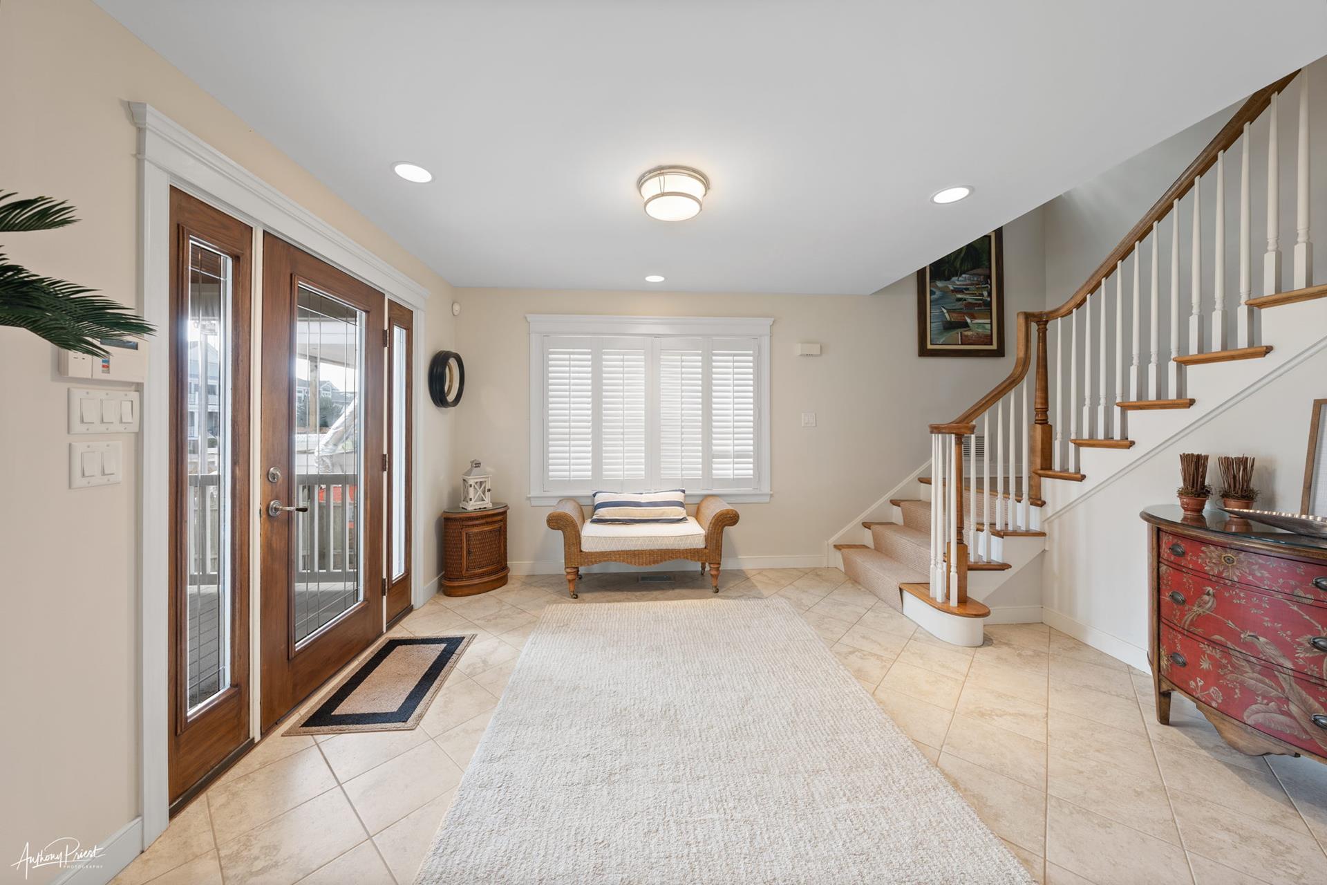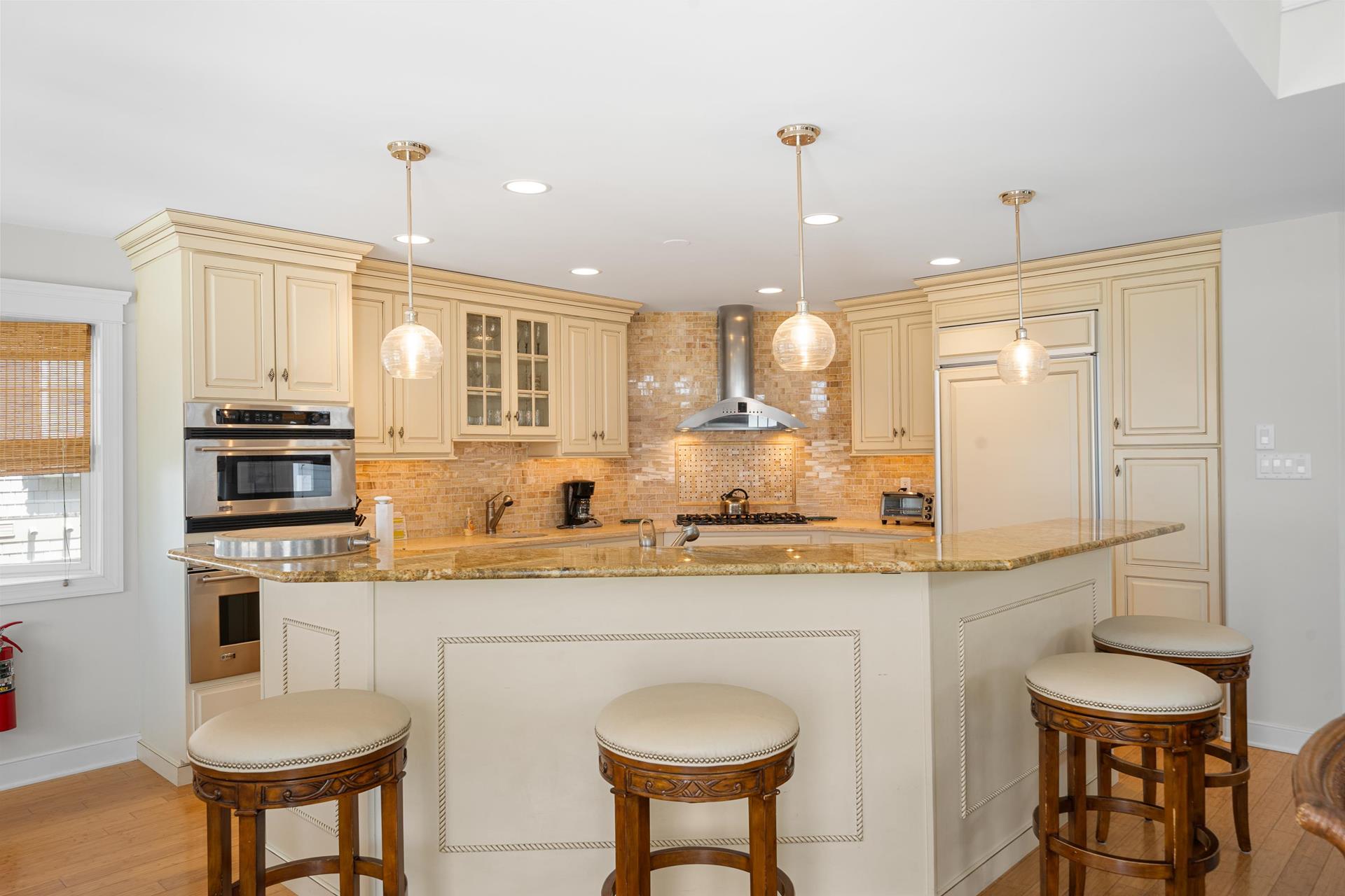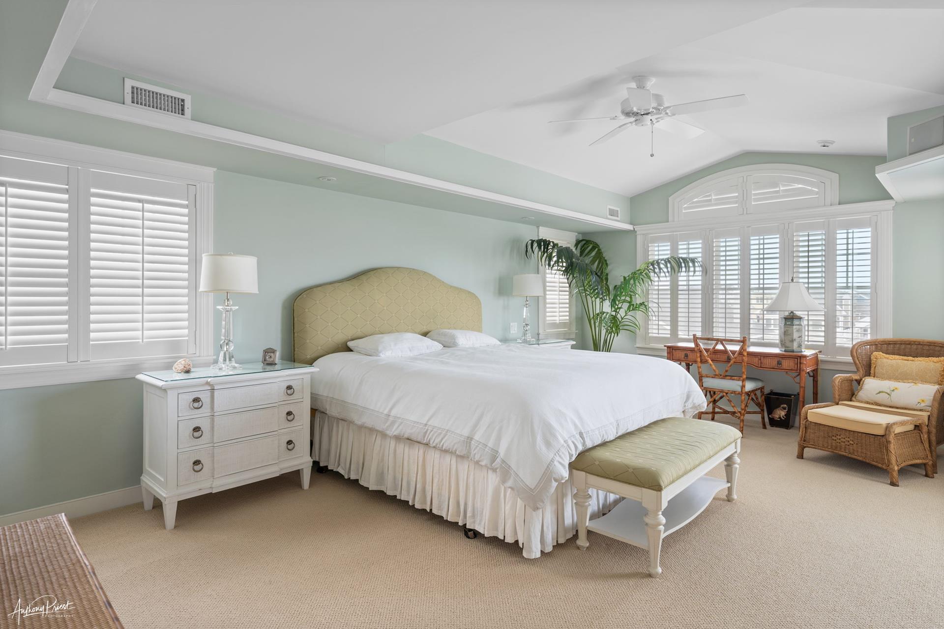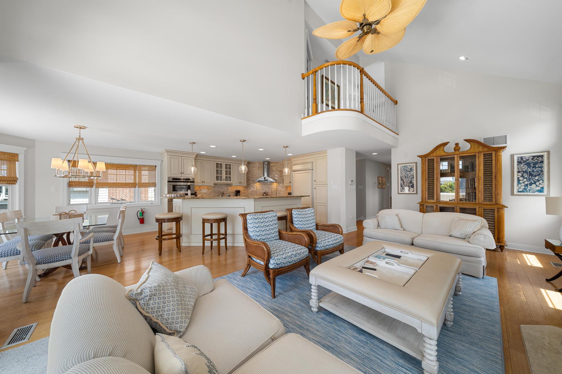 Vacation in the lap of luxury in this spectacular 6BR, 6BA designer furnished and decorated beach block home. Swim or sun yourself by the heated pool in the beautifully landscaped rear yard or lounge indoors in air conditioned comfort in the elegant family room with a fantastic wet bar and flat screen TV. The first floor also holds a full bath and 2 bedrooms: Junior suite with a queen and a set of twin beds. Ascend to the second floor living area where you can relax or entertain in the spacious living room featuring volume ceilings and access to a front deck. Bamboo flooring throughout and vaulted ceilings allow this home to stand out amongst its beach block competition. Prepare anything from a snack to a feast in the well equipped gourmet kitchen, or enjoy the ocean s ebb & flow from the magnificent front decks! A full bath and 2 bedrooms (a junior suite with a King bed and 2 twins, each with deck access to enjoy the view of the pool & patio area) are located on the 2nd floor. Finally, the third floor master suite is fit for a king and queen with vaulted ceilings, a private deck overlooking the heated pool and a peek of the ocean, spacious walk~in closet and king bed. (Pool is open mid~May to mid~September) A junior suite with a queen and private deck are also located on the 3rd floor. This lovely beach block home is well maintained by the Owners and will serve as the perfect vacation destination for you and your family! |
