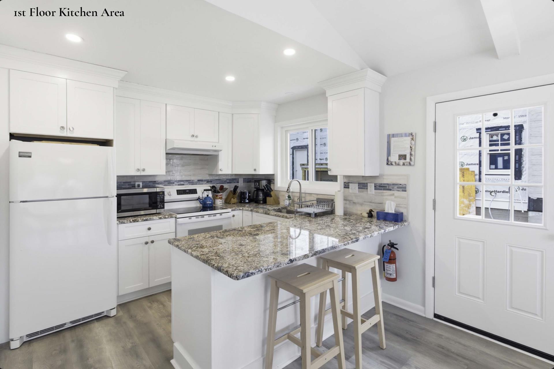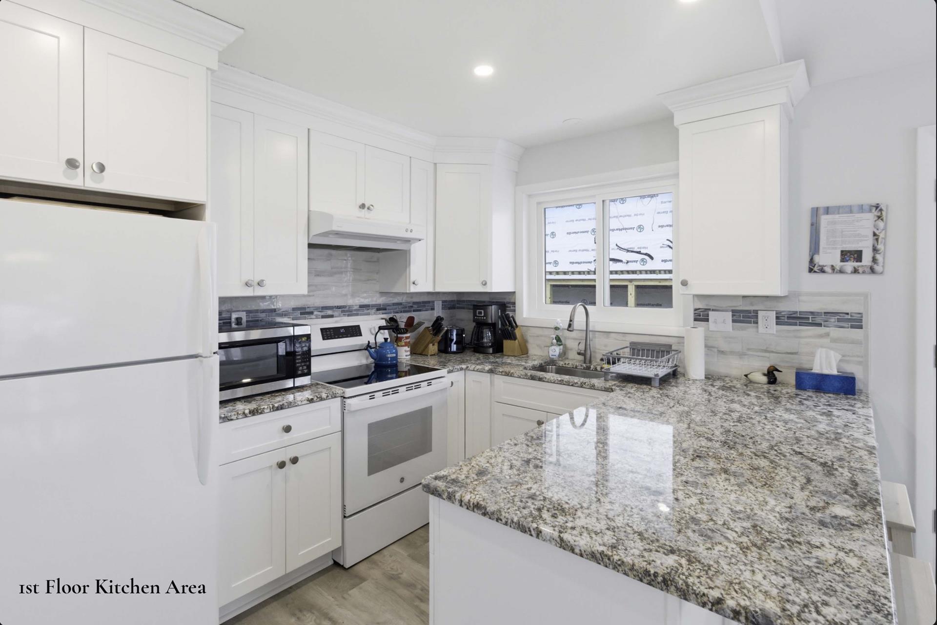 • Renovated kitchen – new cabinets, back splash, countertops and bar stools (appliances are the same)