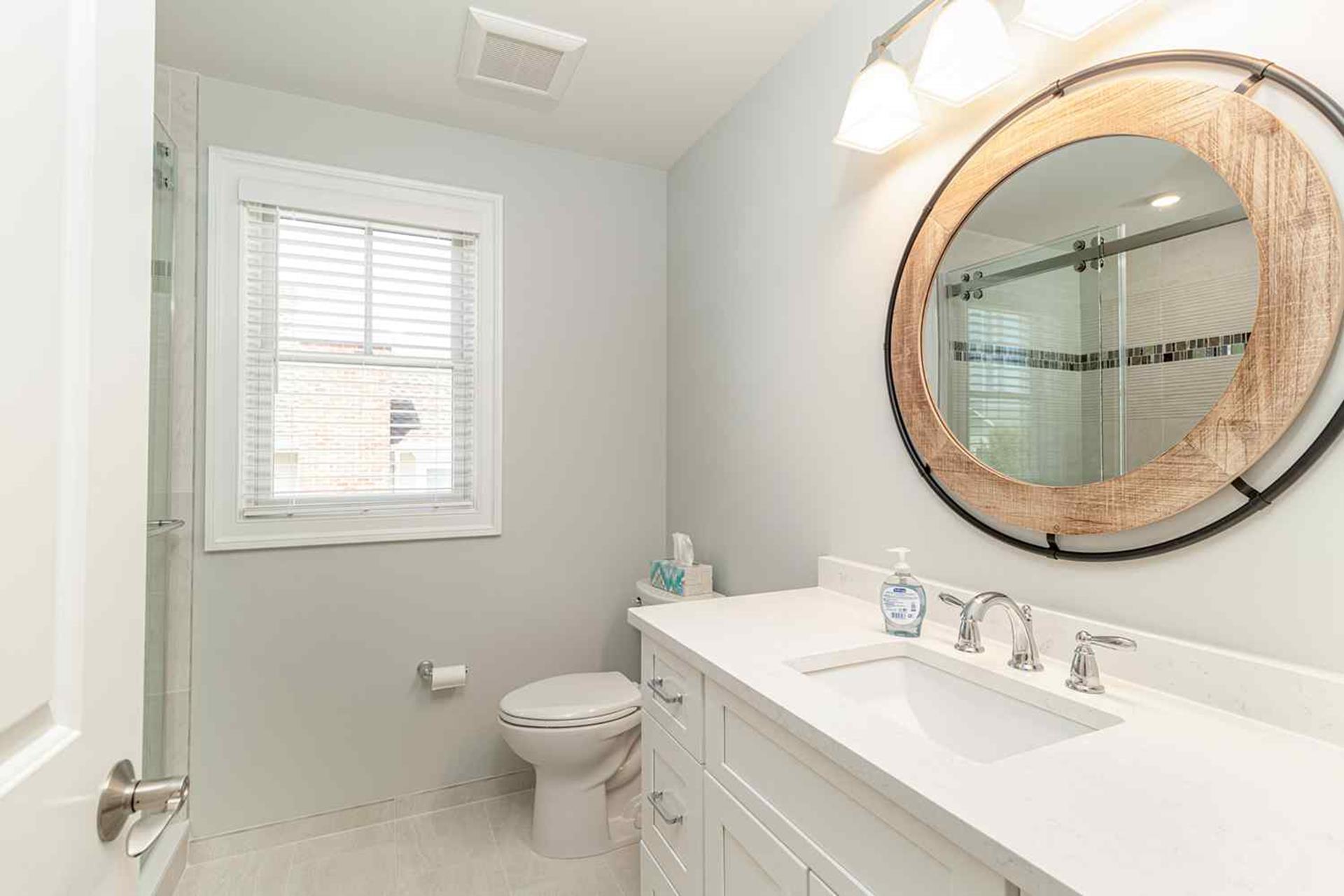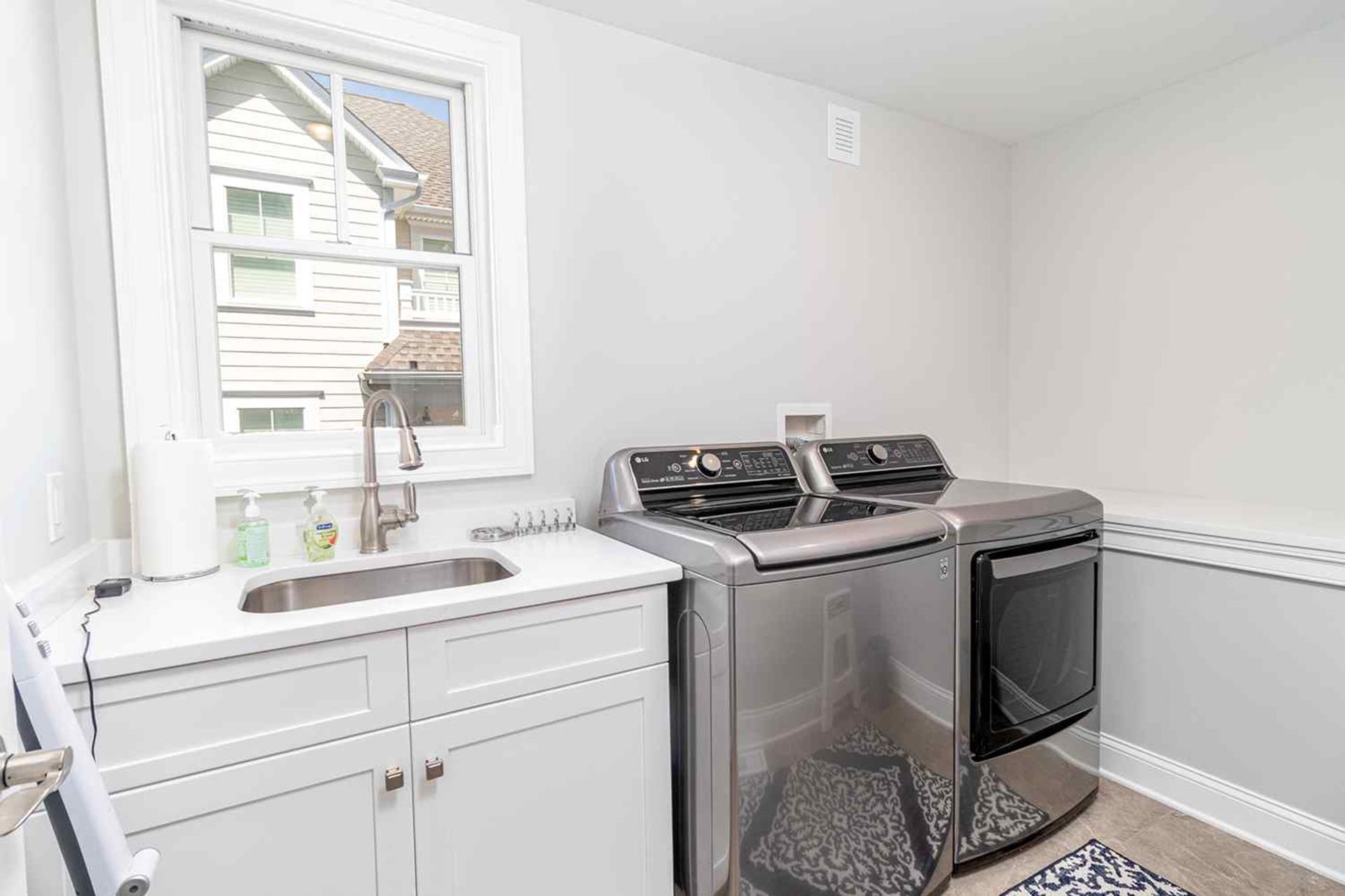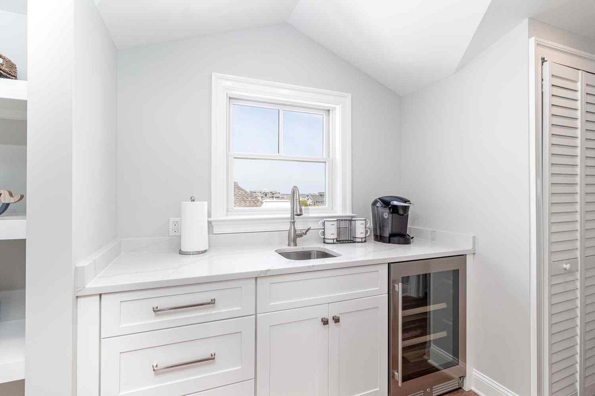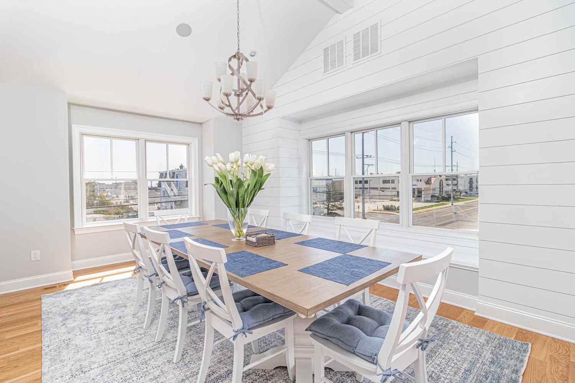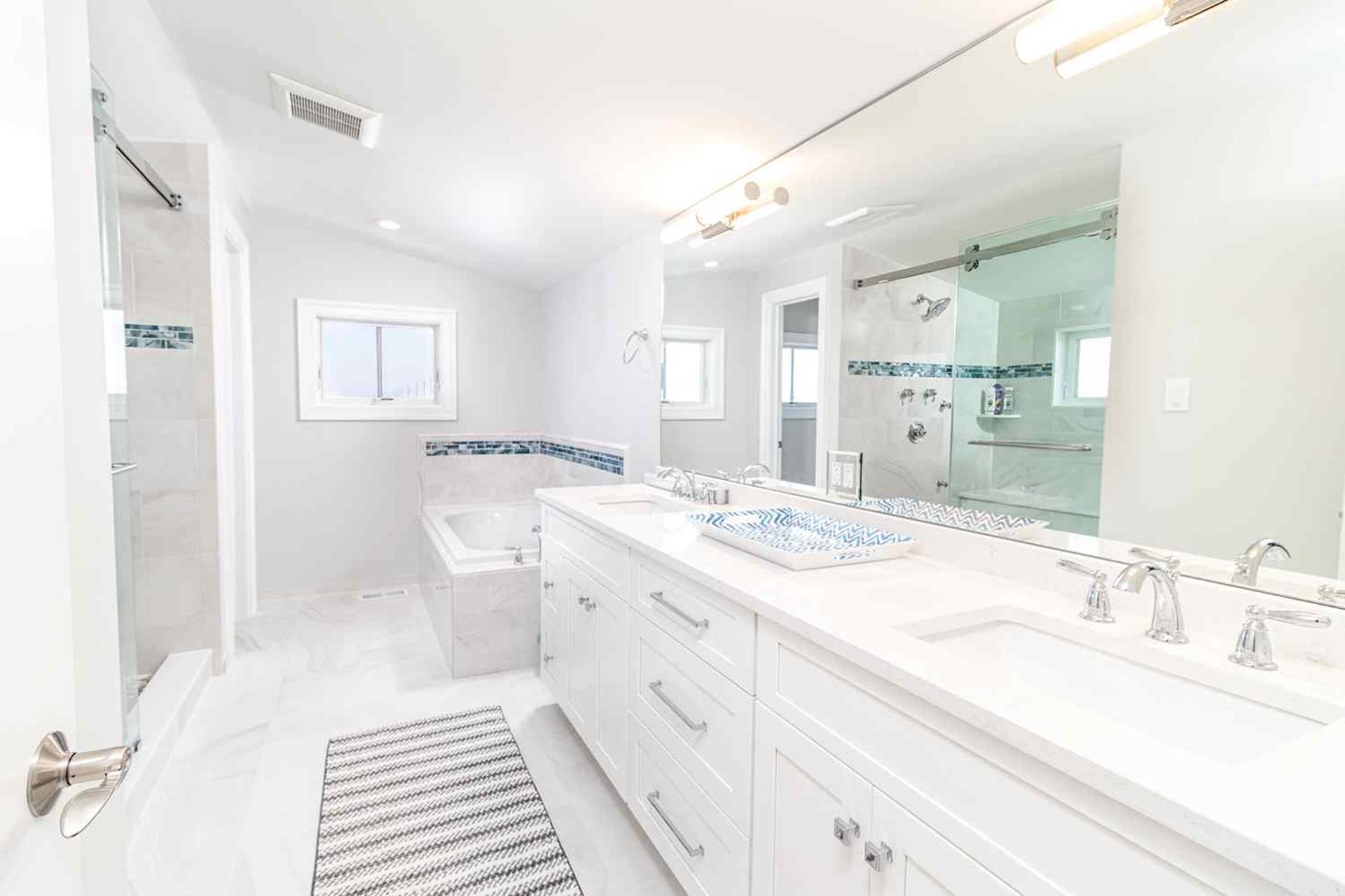 | Fantastic 7 bedroom 9 bath single family home sleeping 17 with 4 stop (Garage to 3rd floor) elevator and heated salt water kidney shaped concrete pool measuring 28 ft by 13 feet. Highlights for the home include, but, not limited to; all 7 bedrooms having their own private bathroom, hardwood flooring throughout home except in bathrooms which feature custom tiled flooring and quartz vanities, ceiling fans in all bedrooms, living room and 2 rear decks, The first floor has 3 bedrooms as follows; First floor bedroom with Queen bed and private bathroom with tiled standing shower with quartz vanity, slider to side deck, custom closet. Second bedroom has a bunk bed (sleeps 3) with full on bottom and single on top, custom closet, private bath with tub, shower and quartz vanity. Third bedroom with Queen bed, private bath with walk-in shower and custom closet. Also, the first floor hosts a family room with large navy blue sectional couch (queen pullout bed), TV, custom wet bar with quartz top, stainless steel sink and beverage fridge, room leads out to large deck overlooking pool and ceiling fan. First Floor family room powder room which is close to the pool deck. A laundry room is on the first level with LG large gas washer and dryer and 72" by 25" large folding area for pool and beach towels and door to access outside.