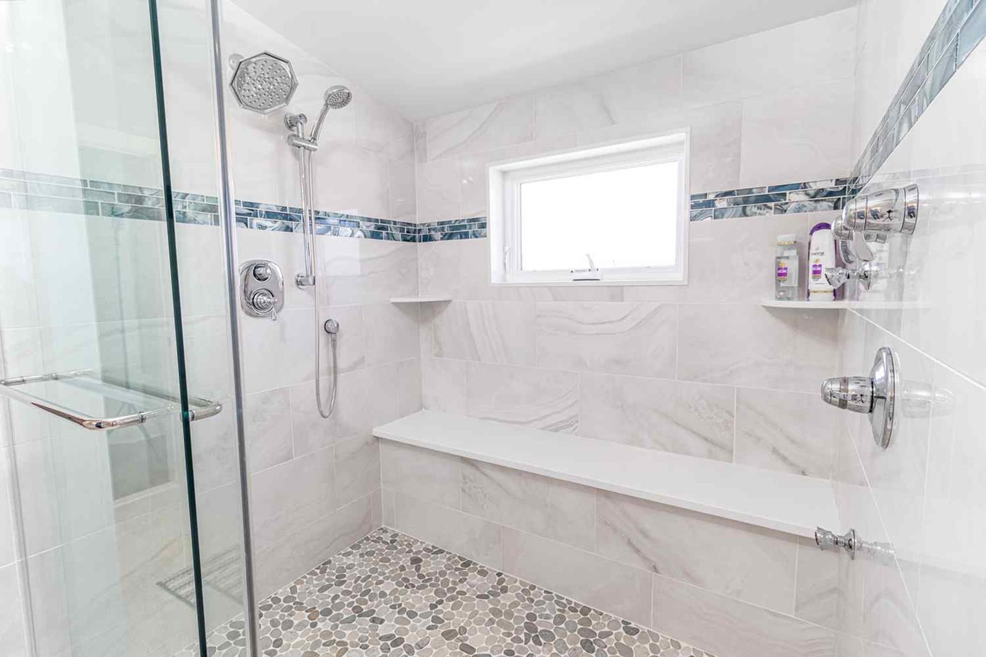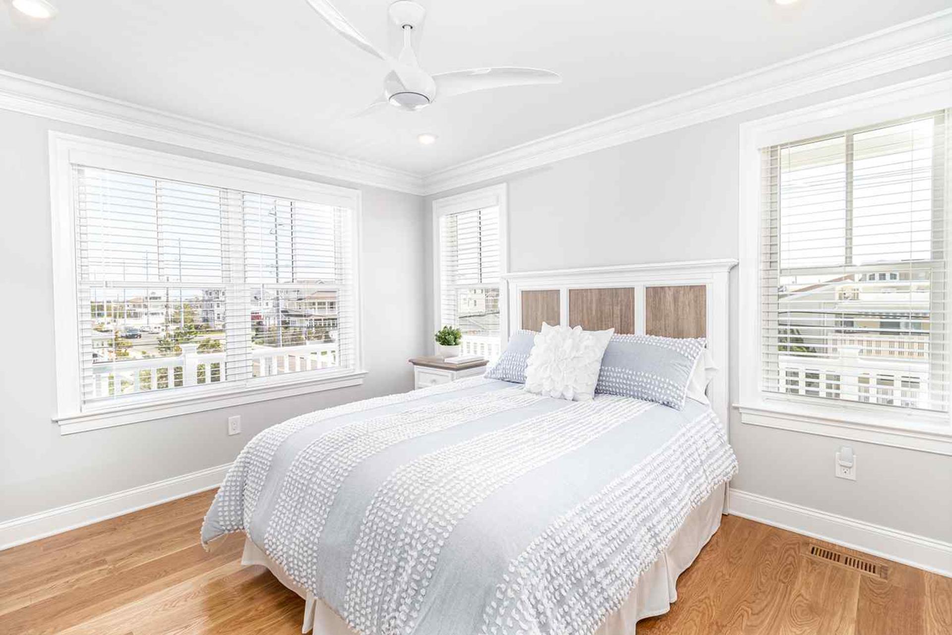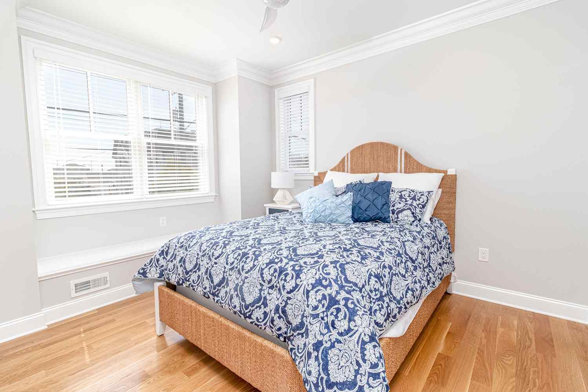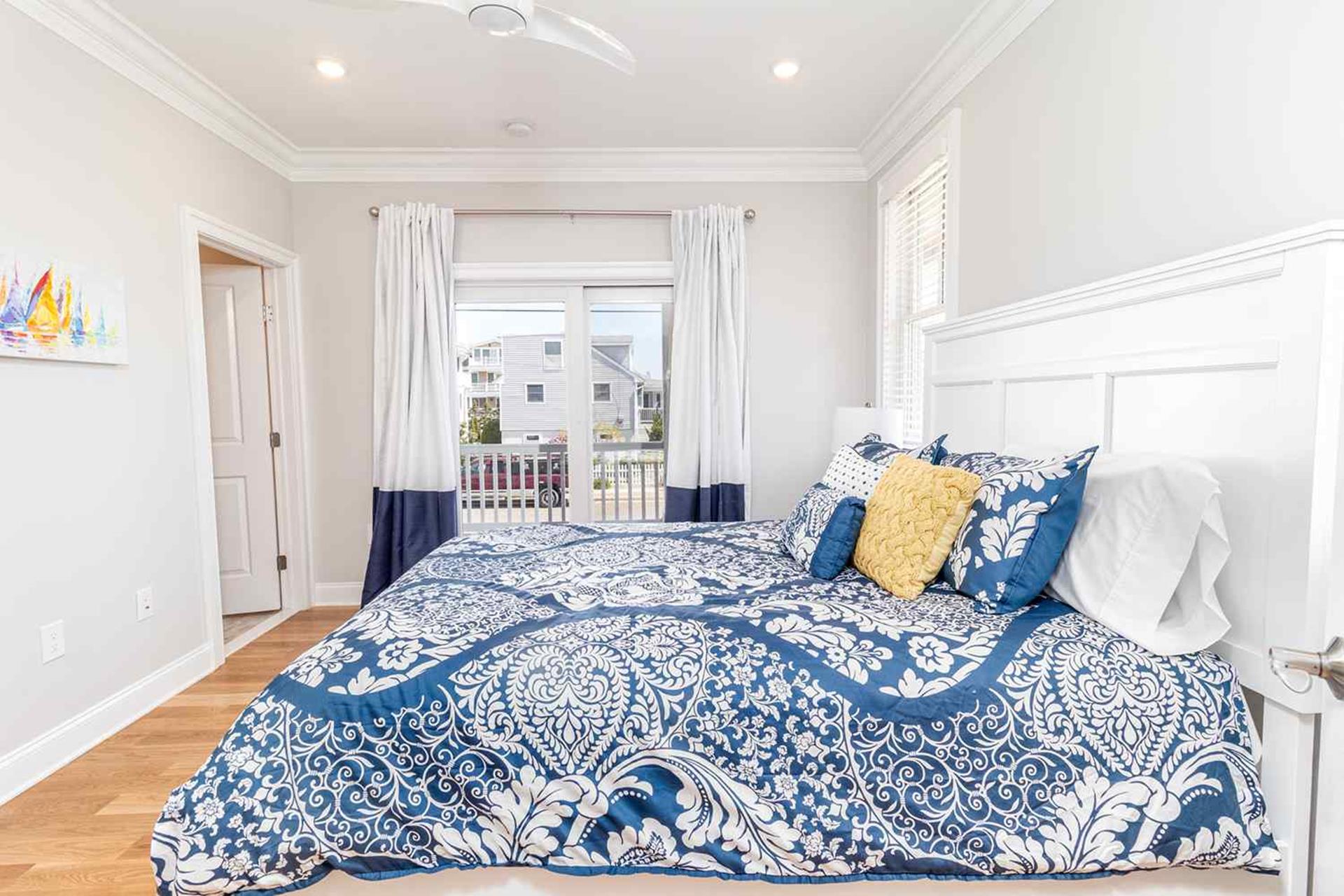 The third floor boasts the last 2 bedrooms of this 7 bedroom home. The third floor bedroom with King bed with TV, private deck (special privacy screening rails) that is off the front of the house looking towards the beach, walk in custom closet and master bathroom with his and her quartz top vanities with double sinks and custom tiled flooring oversized 6 by 5 6 custom shower with dual heads and seat with frameless shower doors. The other bedroom being a Jr Master Suite with King size bed has access to second floor private deck, private bathroom.