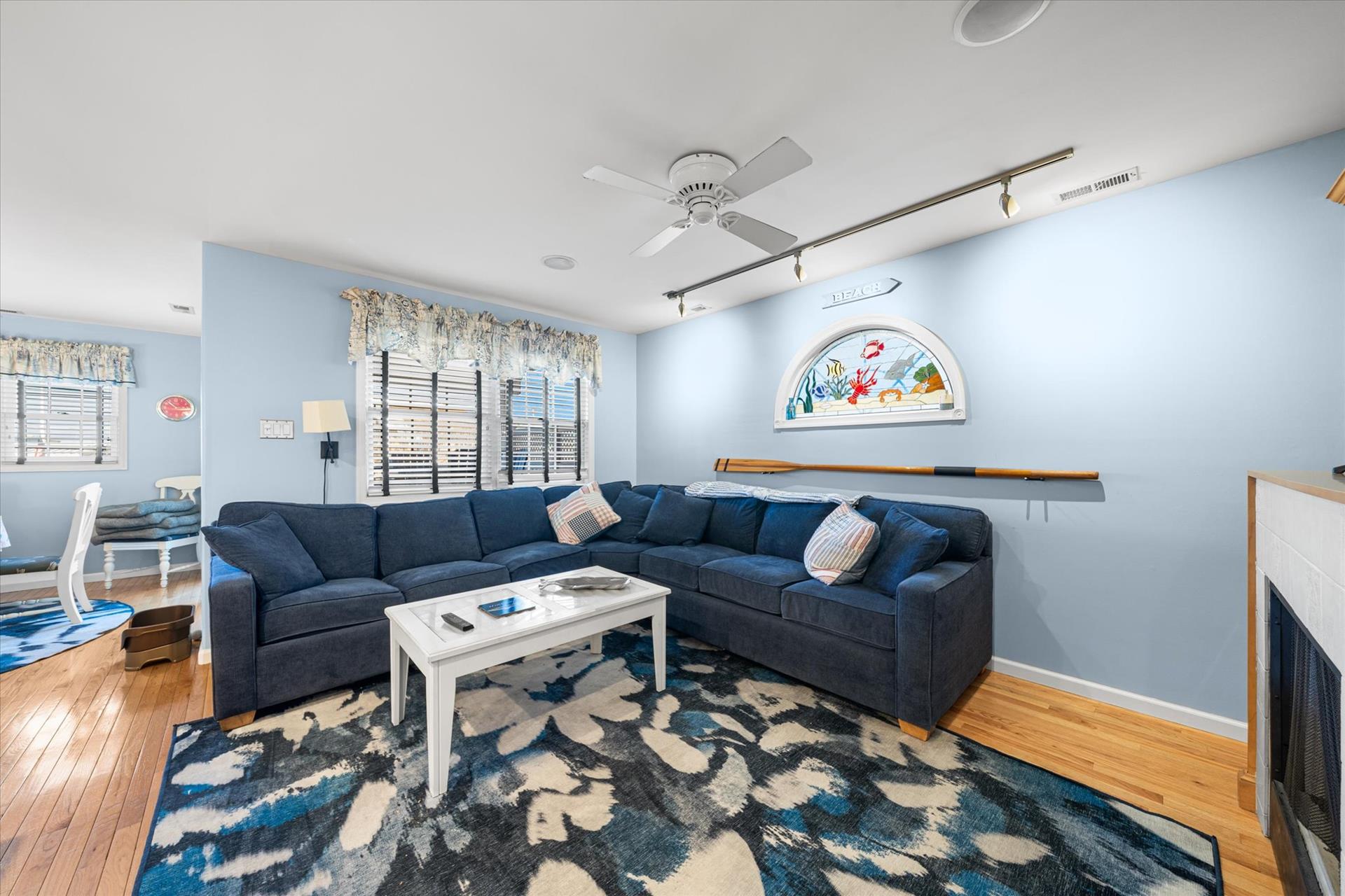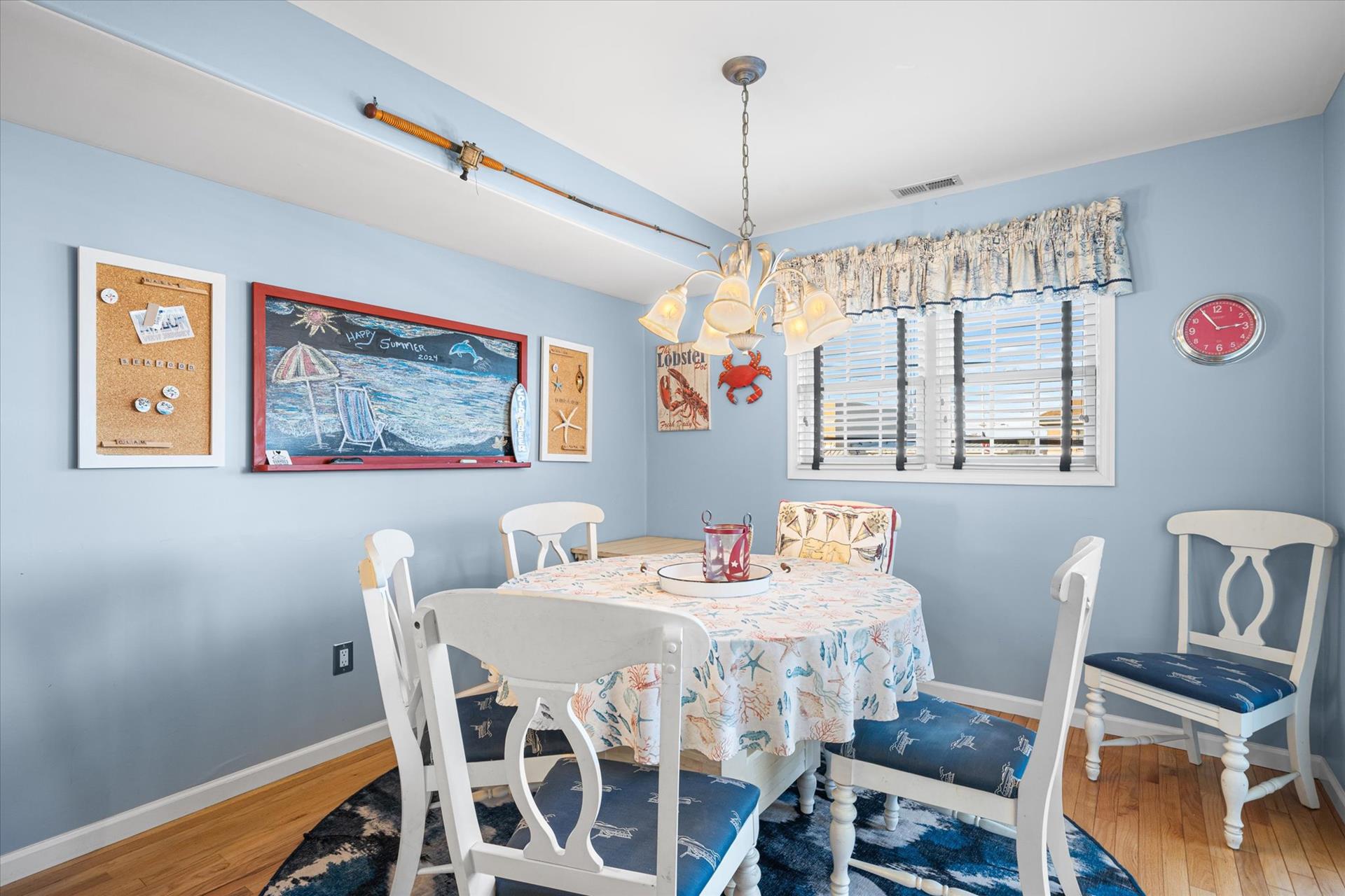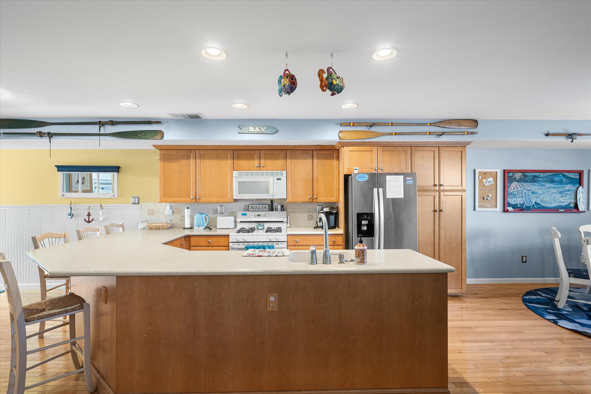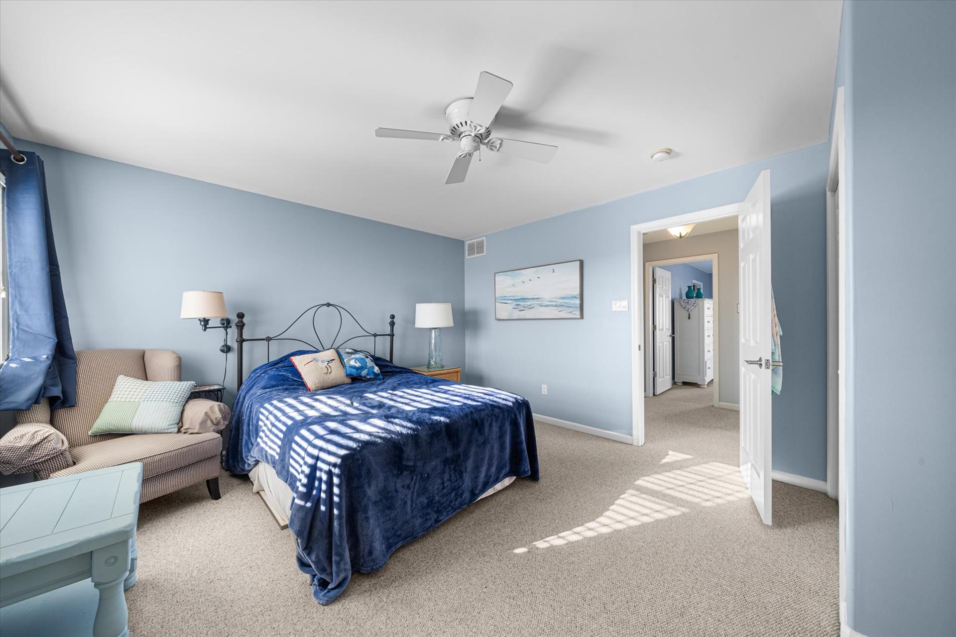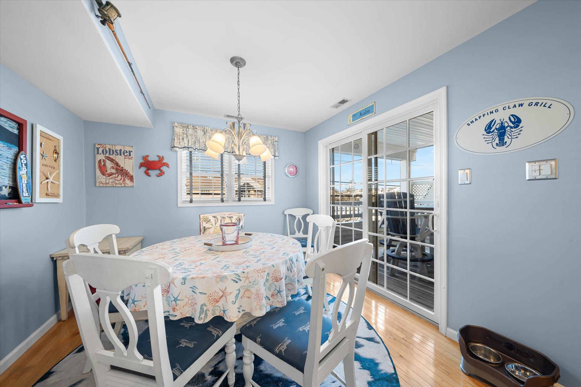 | Discover this charming 3-bedroom, 3-bathroom townhome, nestled just two blocks away from the beach and conveniently situated in the heart of town. With parking convenience and a walkable location, this second and third floor residence boasts hardwood floors and an inviting open floor plan. The spacious kitchen features a breakfast bar and sleek Corian countertops, while the dining room offers a cozy round table and sliders leading to the deck area. On the first floor, find a bedroom with a single sized bed as well as a BUNK BED (single on top; double on bottom) with access to a full bath, complementing the open living area. Upstairs, a junior master suite (Queen bed) with a private bath and access to an east-facing deck awaits, alongside the main master suite (King size bed) with its own full bath. Decorated with care and fully equipped for your summer getaway, this unit also includes one assigned parking spot. Updates completed within the past few years include new carpeting, a plush new couch, a 55-inch TV, and refreshed vinyl siding for the showers in the backyard. Disclosure: Living Area TV includes cable, first floor bedroom TV is streaming only. |