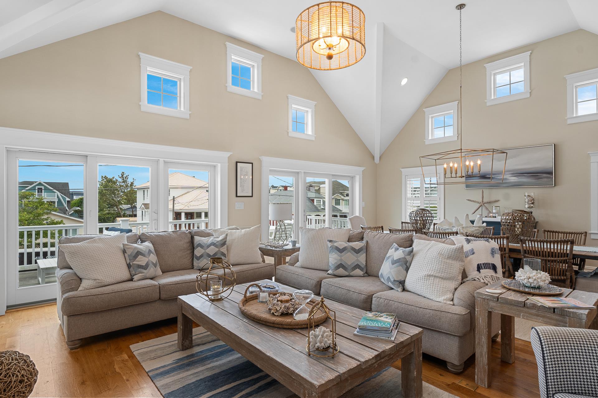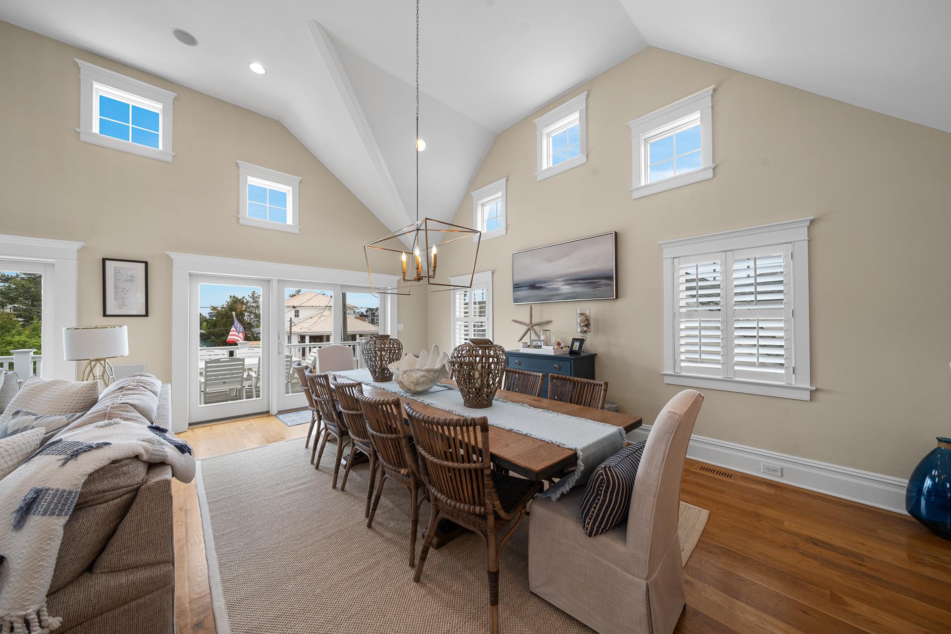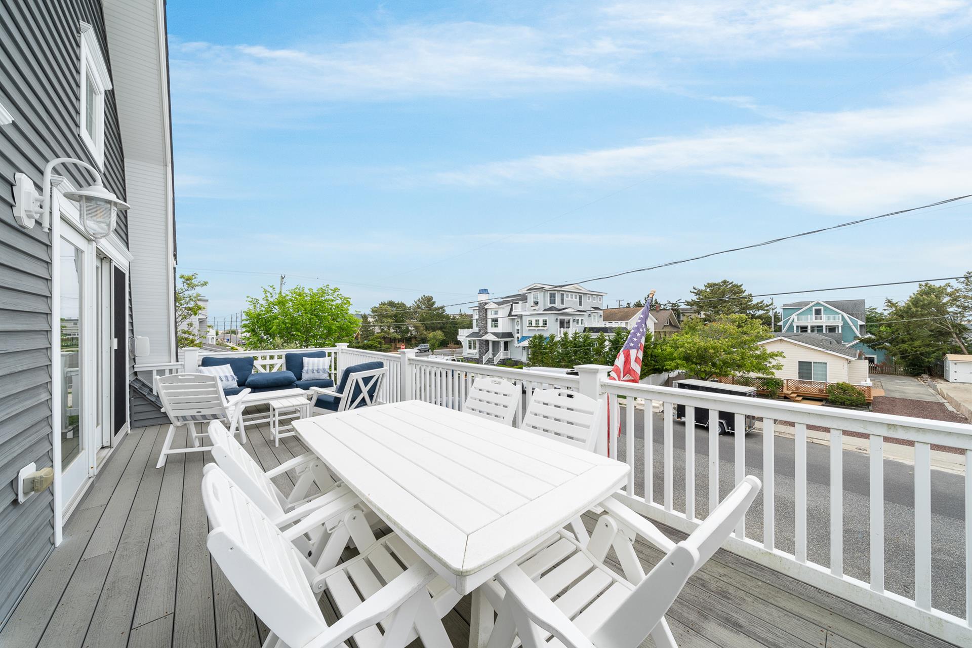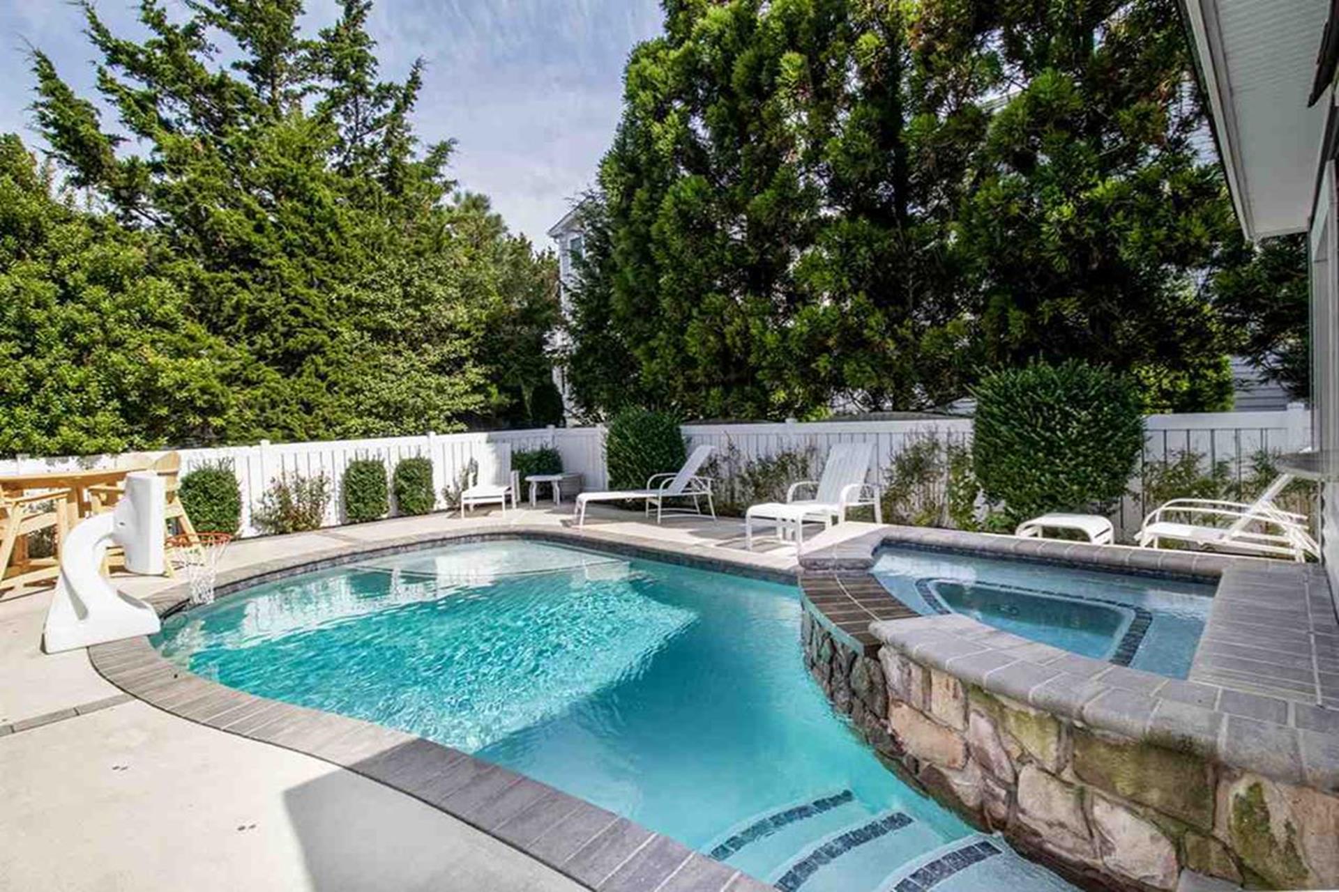 | This beautiful Single-family home offers an upside-down style floor plan, 2 blocks to the beach and 1 block to the recreation field & playground located between 8th Street -12th Street on Dune Drive. The first floor offers 3 bedrooms, 2 bathrooms, laundry room, bar room/family room that overlooks the pool & patio area. The 1st bedroom offers a king bed with an attached, private full bathroom, the 2nd bedroom offers 2 sets of bunkbeds and trundle bed, and the 3rd bedroom offers a Queen Bed. The 2nd floor greets you with a bright and airy Great Room, featuring beautiful hardwood flooring, a spacious living room & dining area with vaulted ceilings and beautiful modern kitchen with granite countertops & stainless steel appliances. Just off the Living/Dining area, you will find a large deck with a nice sitting area and dining space for 6. For your convenience the BBQ gas grill is also located on the deck. Finishing the 2nd floor, you will find a powder room and the junior master suite with a King bed, an attached private full bathroom. The third floor consists of the master bedroom with a king bed attached en-suite bathroom, and office space. Located on the outside of the home you will find an outside shower and an outside half bathroom. Additional amenities include WIFI, Sonos surround sound throughout the house, gas fireplace (cooler months only), off-street parking for 4 cars, and a Tesla charging station in the driveway. This is a Friday to Friday rental! This property is the perfect family vacation home and it’s "shore" to please. The owner will also consider weekend rentals with a 3 night minimum during the off season, so if your looking for just a short getaway this property is it! The owner provides a changeover cleaning upon your departure. |