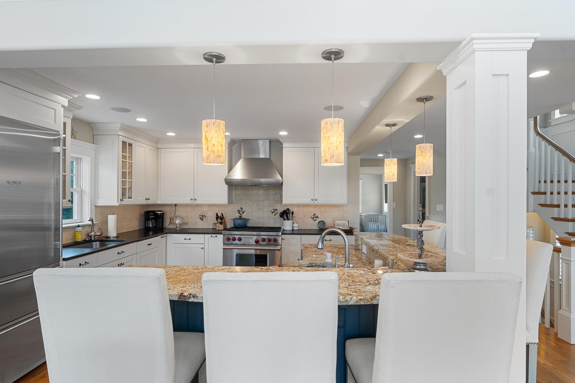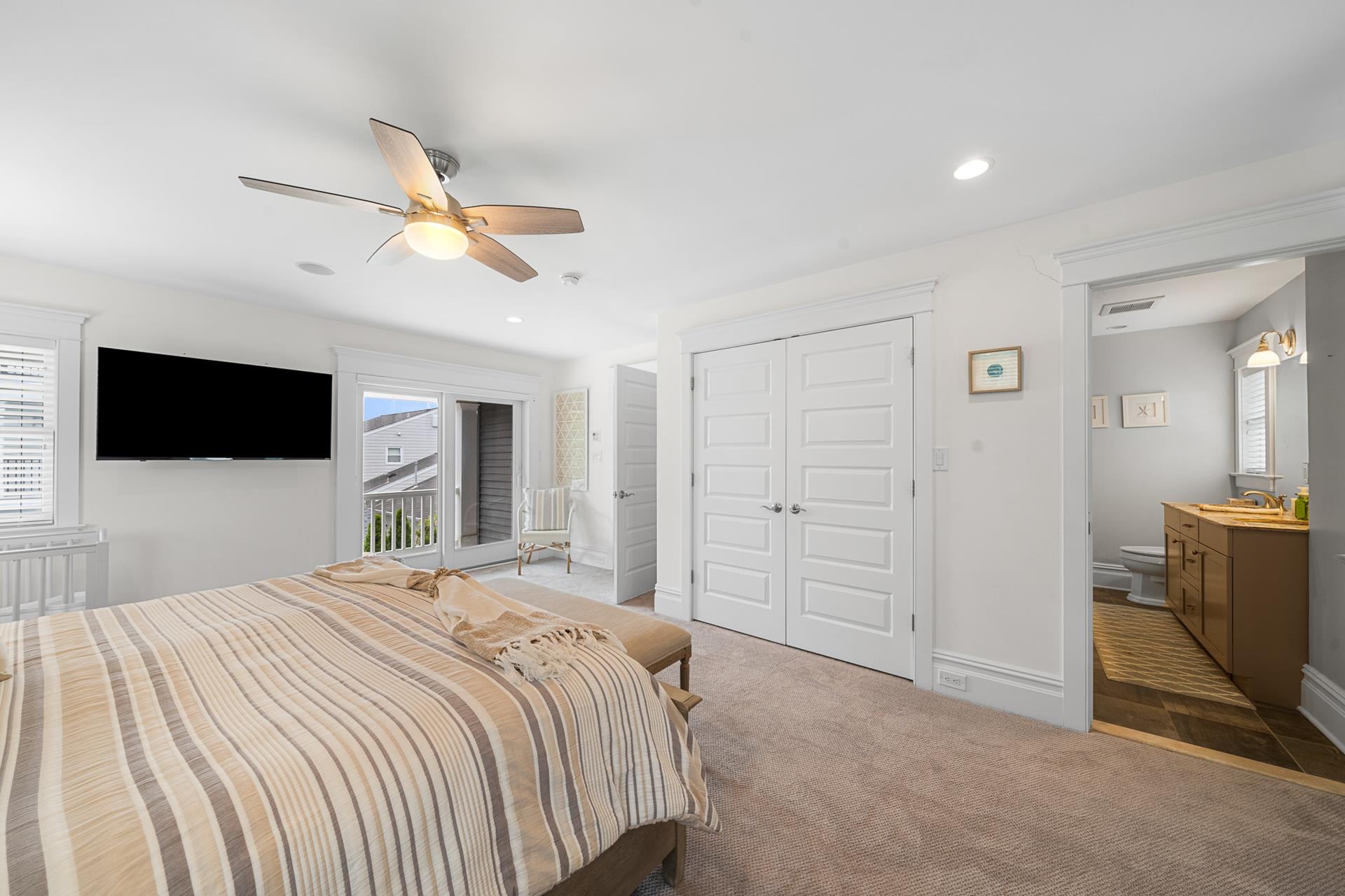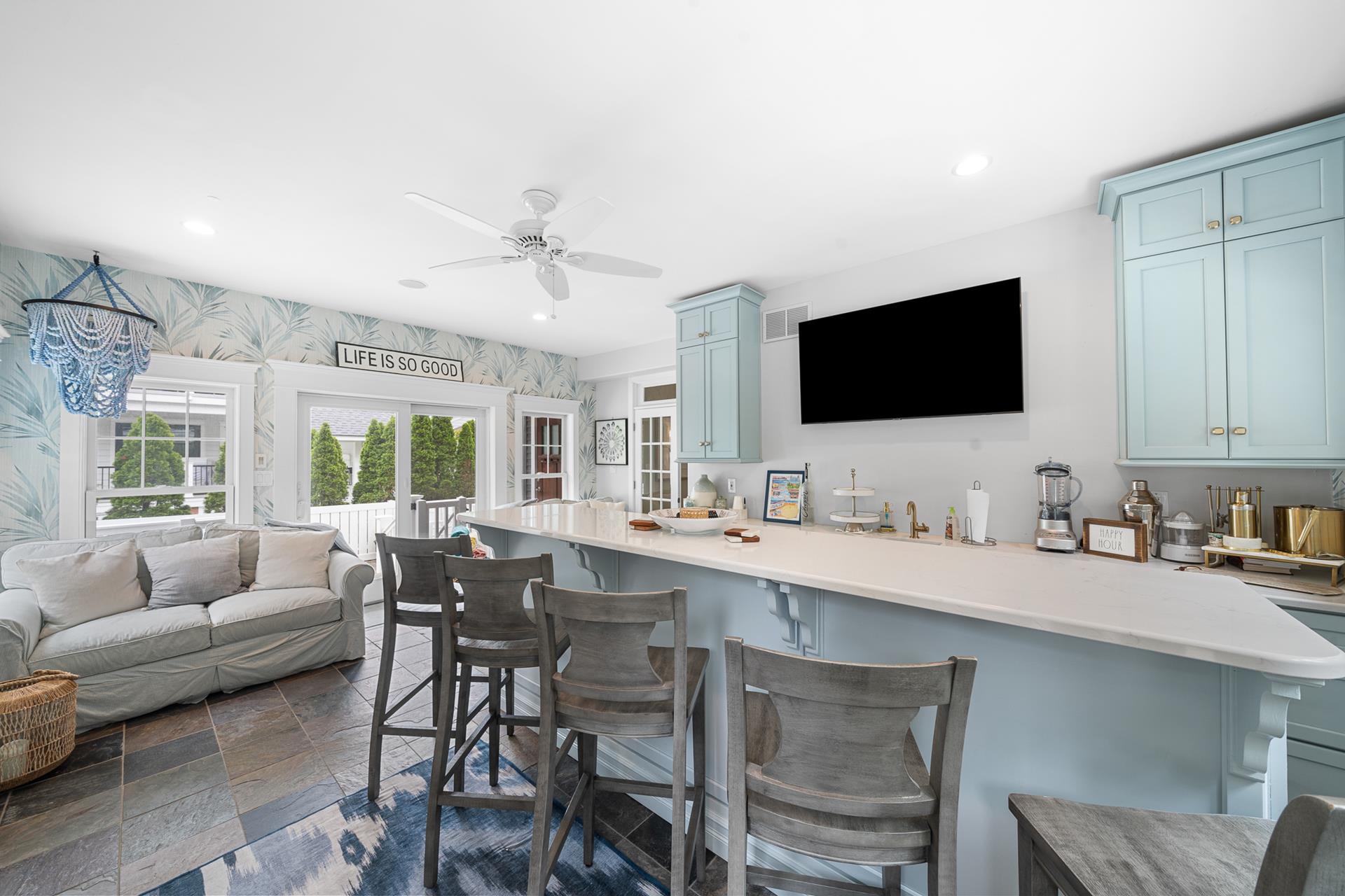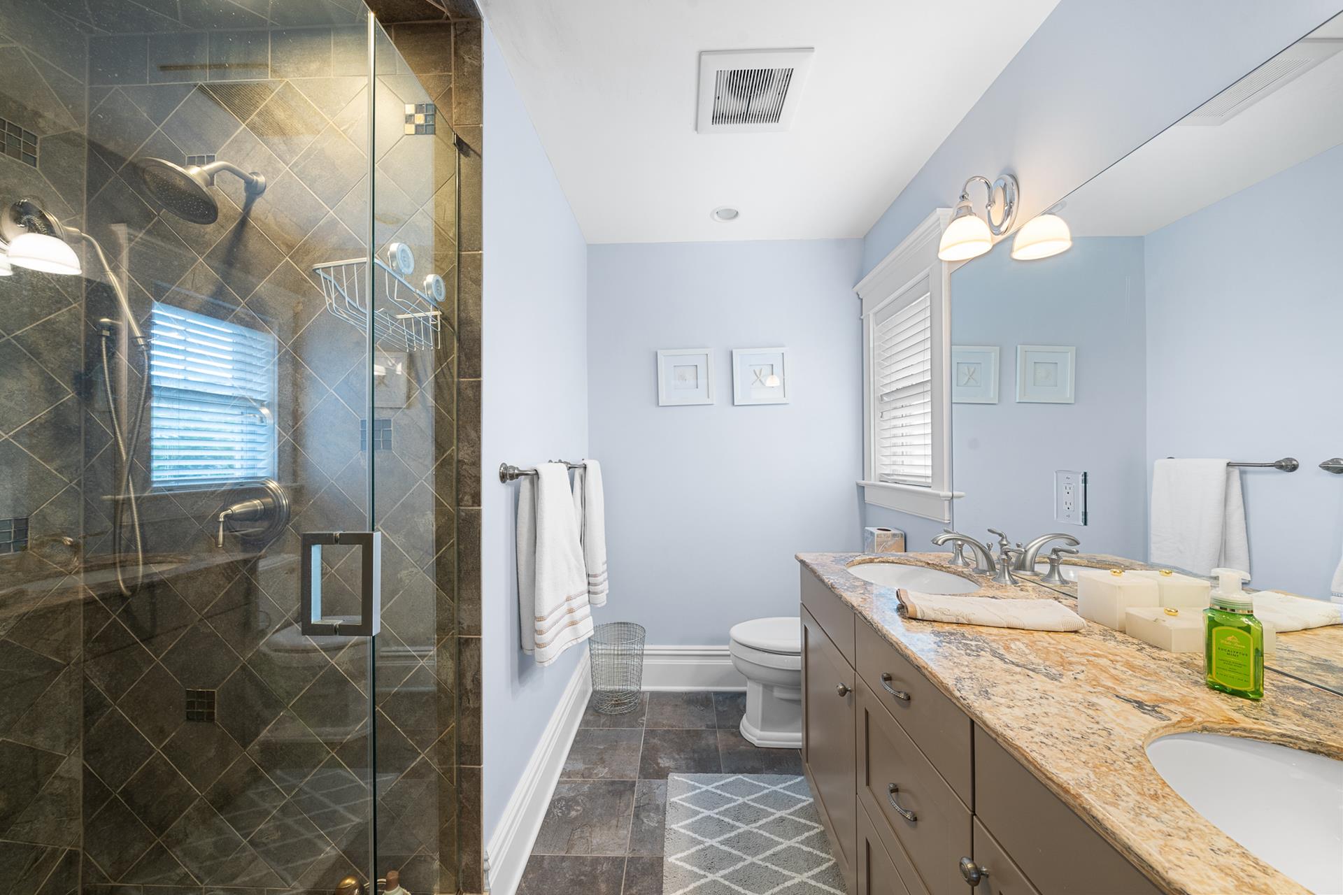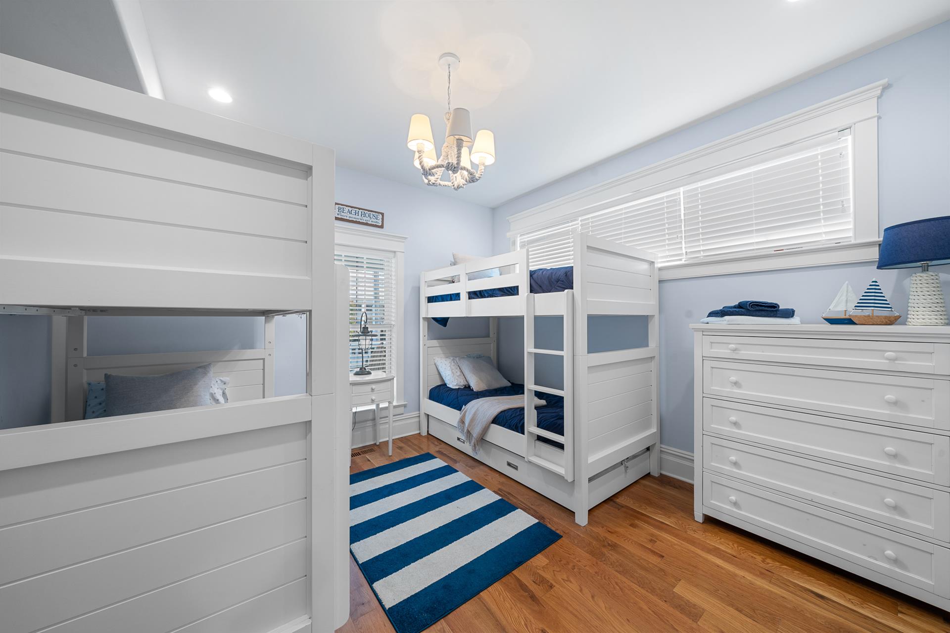 | This beautiful Single-family home offers an upside-down style floor plan, 2 blocks to the beach and 1 block to the recreation field & playground located between 8th Street -12th Street on Dune Drive. The first floor offers 3 bedrooms, 2 bathrooms, laundry room, bar room/family room that overlooks the pool & patio area. The 1st bedroom offers a king bed with an attached, private full bathroom, the 2nd bedroom offers 2 sets of bunkbeds and trundle bed, and the 3rd bedroom offers a Queen Bed. The 2nd floor greets you with a bright and airy Great Room, featuring beautiful hardwood flooring, a spacious living room & dining area with vaulted ceilings and beautiful modern kitchen with granite countertops & stainless steel appliances. Just off the Living/Dining area, you will find a large deck with a nice sitting area and dining space for 6. For your convenience the BBQ gas grill is also located on the deck. Finishing the 2nd floor, you will find a powder room and the junior master suite with a King bed, an attached private full bathroom. The third floor consists of the master bedroom with a king bed attached en-suite bathroom, and office space. Located on the outside of the home you will find an outside shower and an outside half bathroom. Additional amenities include WIFI, Sonos surround sound throughout the house, gas fireplace (cooler months only), off-street parking for 4 cars, and a Tesla charging station in the driveway. This is a Friday to Friday rental! This property is the perfect family vacation home and it’s "shore" to please. The owner will also consider weekend rentals with a 3 night minimum during the off season, so if your looking for just a short getaway this property is it! The owner provides a changeover cleaning upon your departure. |