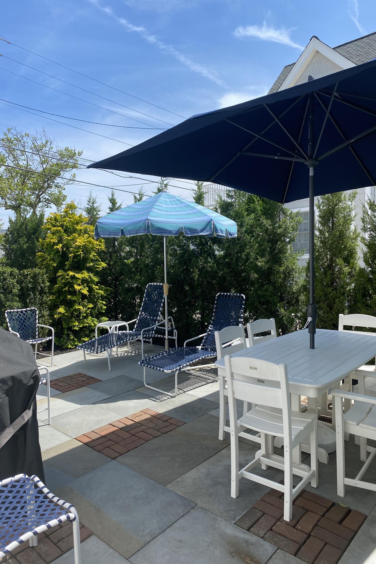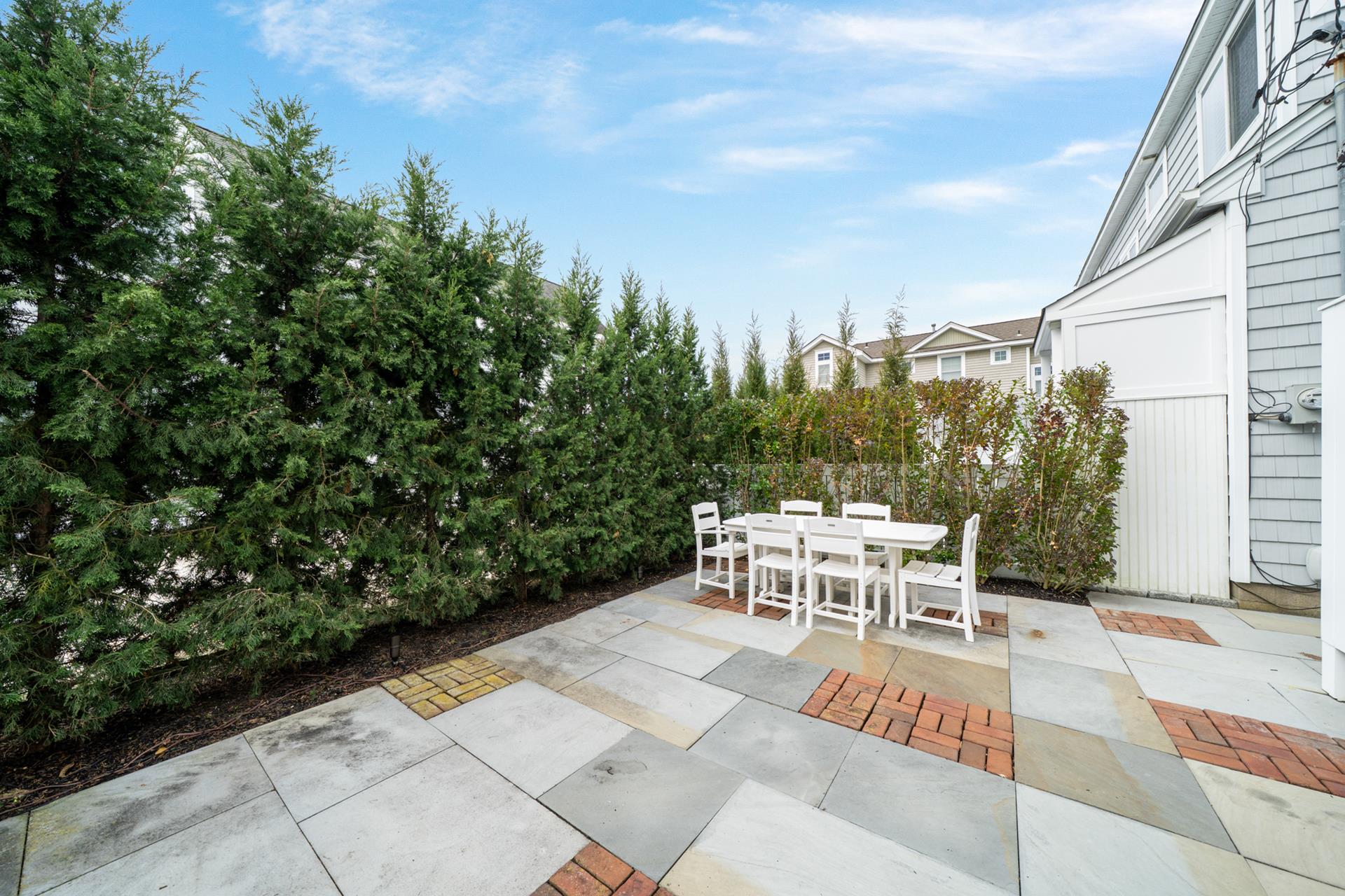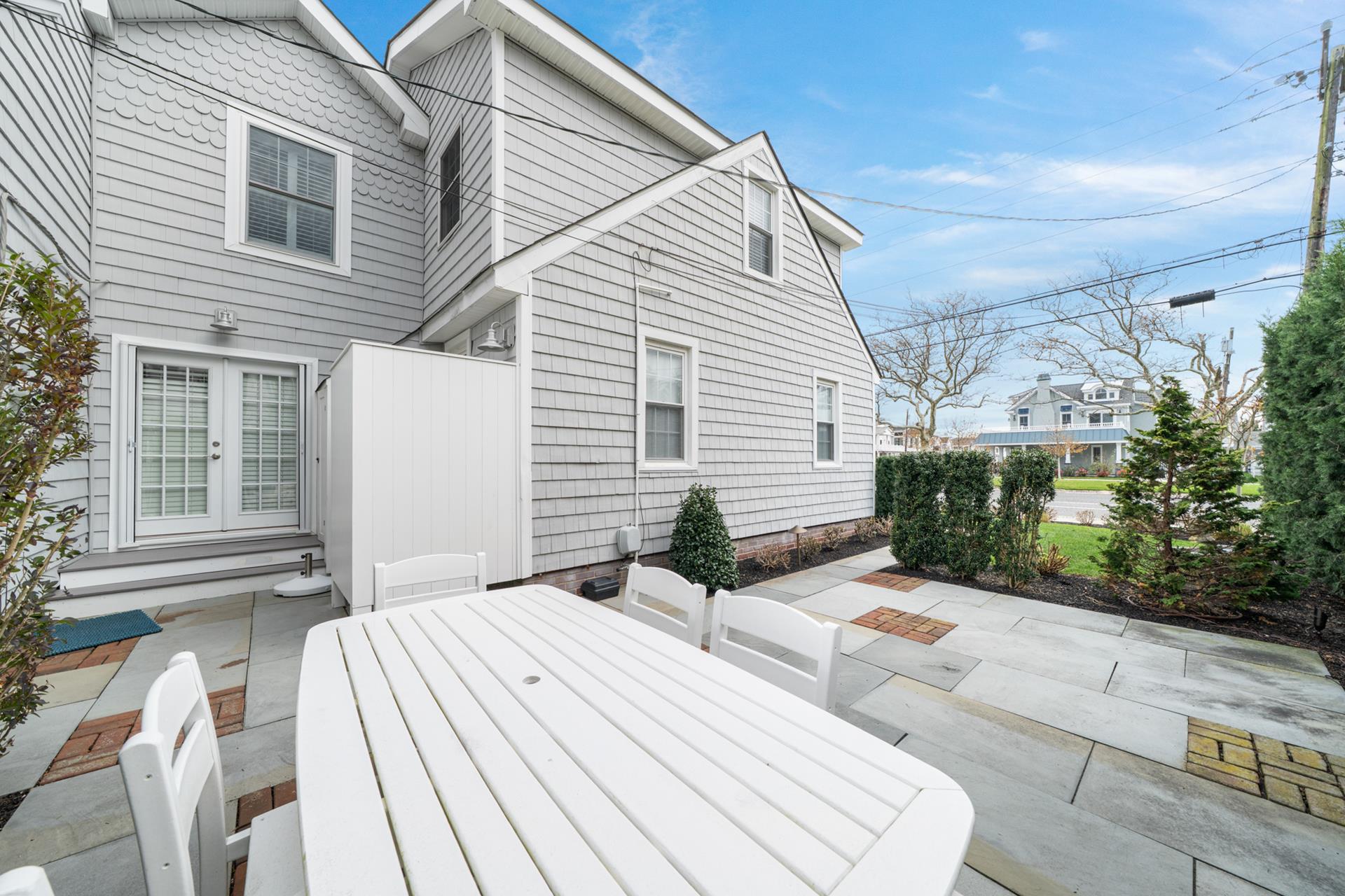 | Located in a quiet neighborhood, only 1 ½ blocks from the beach and on the southern edge of town, this beautiful townhome is a great find! The thoughtful design is aimed at enhancing privacy, as there are just two units in the building - the attached unit’s entrance is off 102nd Street, while this unit’s Main entrance is off of Second Avenue. You’ll appreciate the convenient Park-n-Walk location, as this lavishly landscaped property sits on the corner of 102nd Street and Second Avenue; just a very short walk to the beach and ever-popular downtown Stone Harbor! The two-story floor plan features 3 bedrooms PLUS a Den, a Library/sitting area, and 2 full bathrooms. The property is ideal for those who prefer to minimize steps, as the Living/Kitchen/Dining Area, 2 bedrooms, 1 bathroom and the sitting area are all on the First Floor, as is an amazing patio area, which is conveniently located right off the Kitchen. Entering the Living Area, you’re greeted by an inviting atmosphere, which is accented by thoughtful use of glass for a bright & cheery feel, wainscoting and hardwood flooring. Each of the bedrooms on this floor has a Double Bed. The Kitchen features granite counters and stainless-steel appliances, including a gas range. The adjacent Dining Area features a bay window for natural light, and opens to a super-inviting, southern-exposed patio and grilling area. The patio is surrounded by mature trees for privacy (you barely see your neighbor), and offers the convenience of ground level, outdoor living with plenty of seating and a gas BBQ grill. Back inside, the 2nd floor features the private Master Suite and a Den with a high ceiling, and a private deck for additional outdoor living space. Additional highlights include an On-Demand gas hot water heater (offering an endless supply of hot water), off-street parking for two vehicles and a storage bin located on the side of the garage to store all of your beach gear. BOOK TODAY! You’ll enjoy this distinctive property; its outdoor patio area that’s second to none, and its great location that’s quieter than most “condo” settings…and of course, the very short walk to the beach and all that’s offered in Stone Harbor’s Business District! |