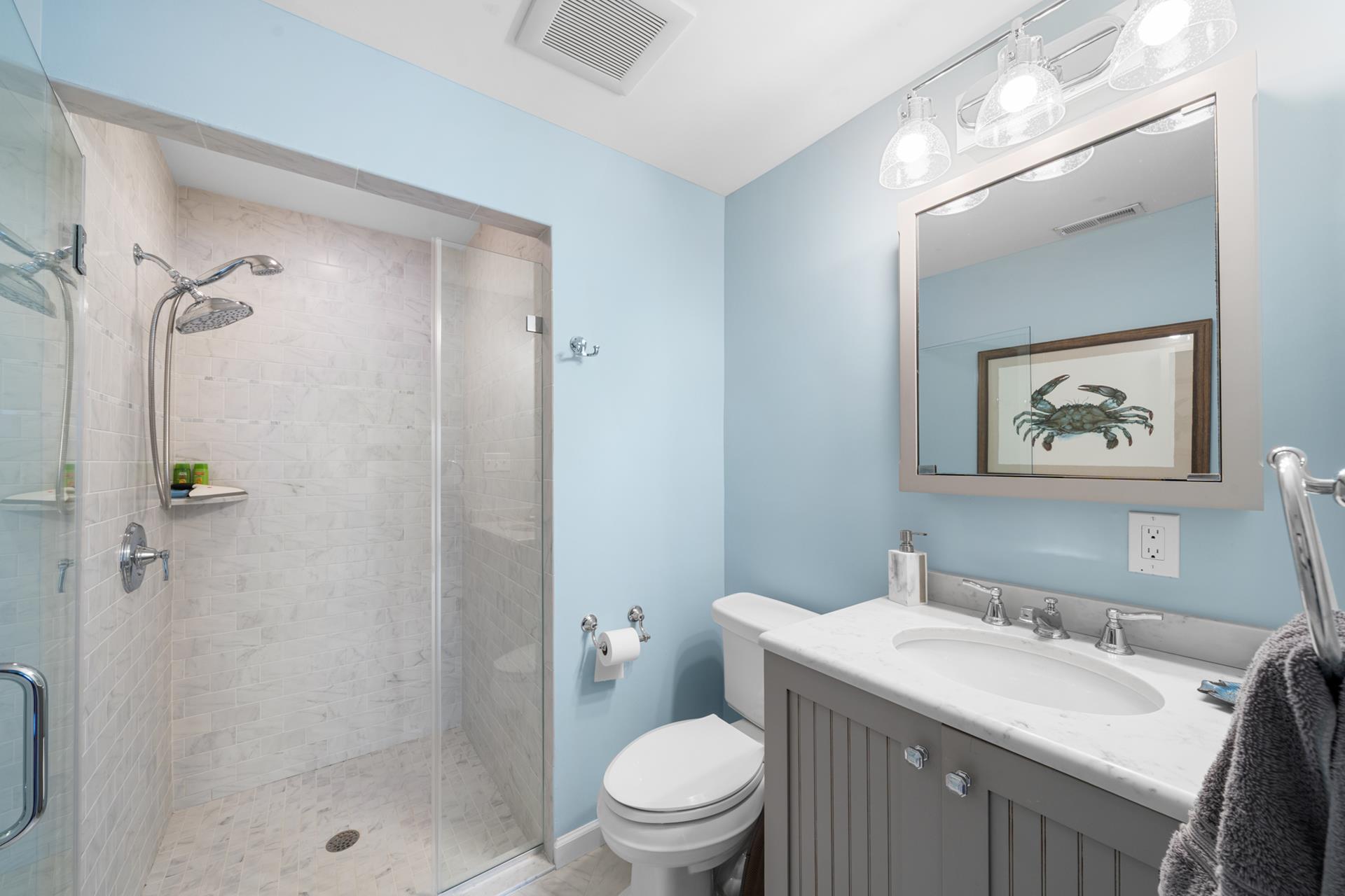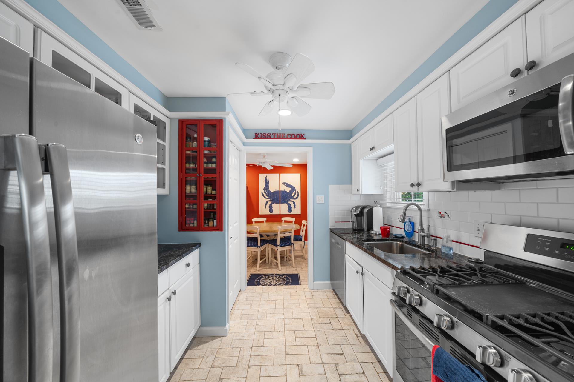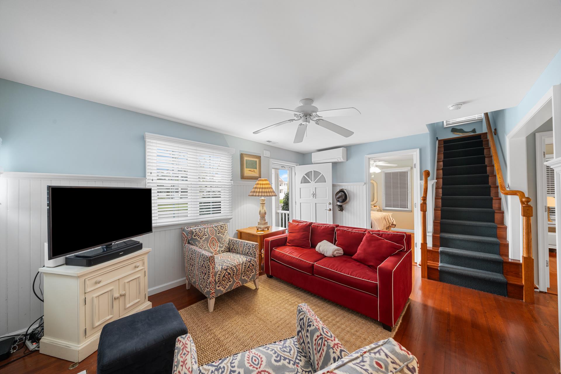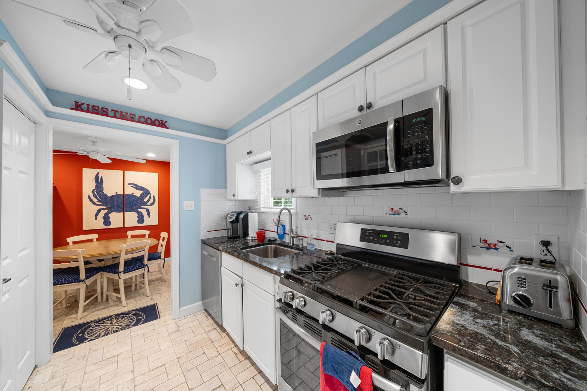 | Located in a quiet neighborhood, only 1 ½ blocks from the beach and on the southern edge of town, this beautiful townhome is a great find! The thoughtful design is aimed at enhancing privacy, as there are just two units in the building - the attached unit’s entrance is off 102nd Street, while this unit’s Main entrance is off of Second Avenue. You’ll appreciate the convenient Park-n-Walk location, as this lavishly landscaped property sits on the corner of 102nd Street and Second Avenue; just a very short walk to the beach and ever-popular downtown Stone Harbor! The two-story floor plan features 3 bedrooms PLUS a Den, a Library/sitting area, and 2 full bathrooms. The property is ideal for those who prefer to minimize steps, as the Living/Kitchen/Dining Area, 2 bedrooms, 1 bathroom and the sitting area are all on the First Floor, as is an amazing patio area, which is conveniently located right off the Kitchen. Entering the Living Area, you’re greeted by an inviting atmosphere, which is accented by thoughtful use of glass for a bright & cheery feel, wainscoting and hardwood flooring. Each of the bedrooms on this floor has a Double Bed. The Kitchen features granite counters and stainless-steel appliances, including a gas range. The adjacent Dining Area features a bay window for natural light, and opens to a super-inviting, southern-exposed patio and grilling area. The patio is surrounded by mature trees for privacy (you barely see your neighbor), and offers the convenience of ground level, outdoor living with plenty of seating and a gas BBQ grill. Back inside, the 2nd floor features the private Master Suite and a Den with a high ceiling, and a private deck for additional outdoor living space. Additional highlights include an On-Demand gas hot water heater (offering an endless supply of hot water), off-street parking for two vehicles and a storage bin located on the side of the garage to store all of your beach gear. BOOK TODAY! You’ll enjoy this distinctive property; its outdoor patio area that’s second to none, and its great location that’s quieter than most “condo” settings…and of course, the very short walk to the beach and all that’s offered in Stone Harbor’s Business District! |