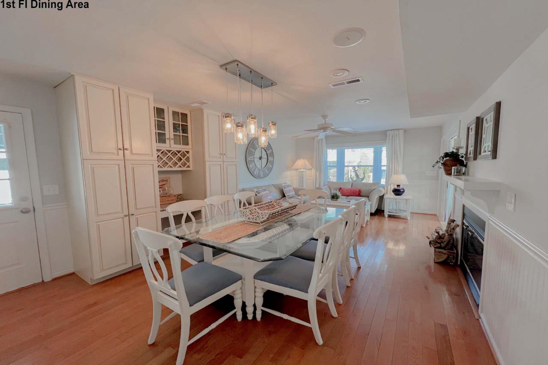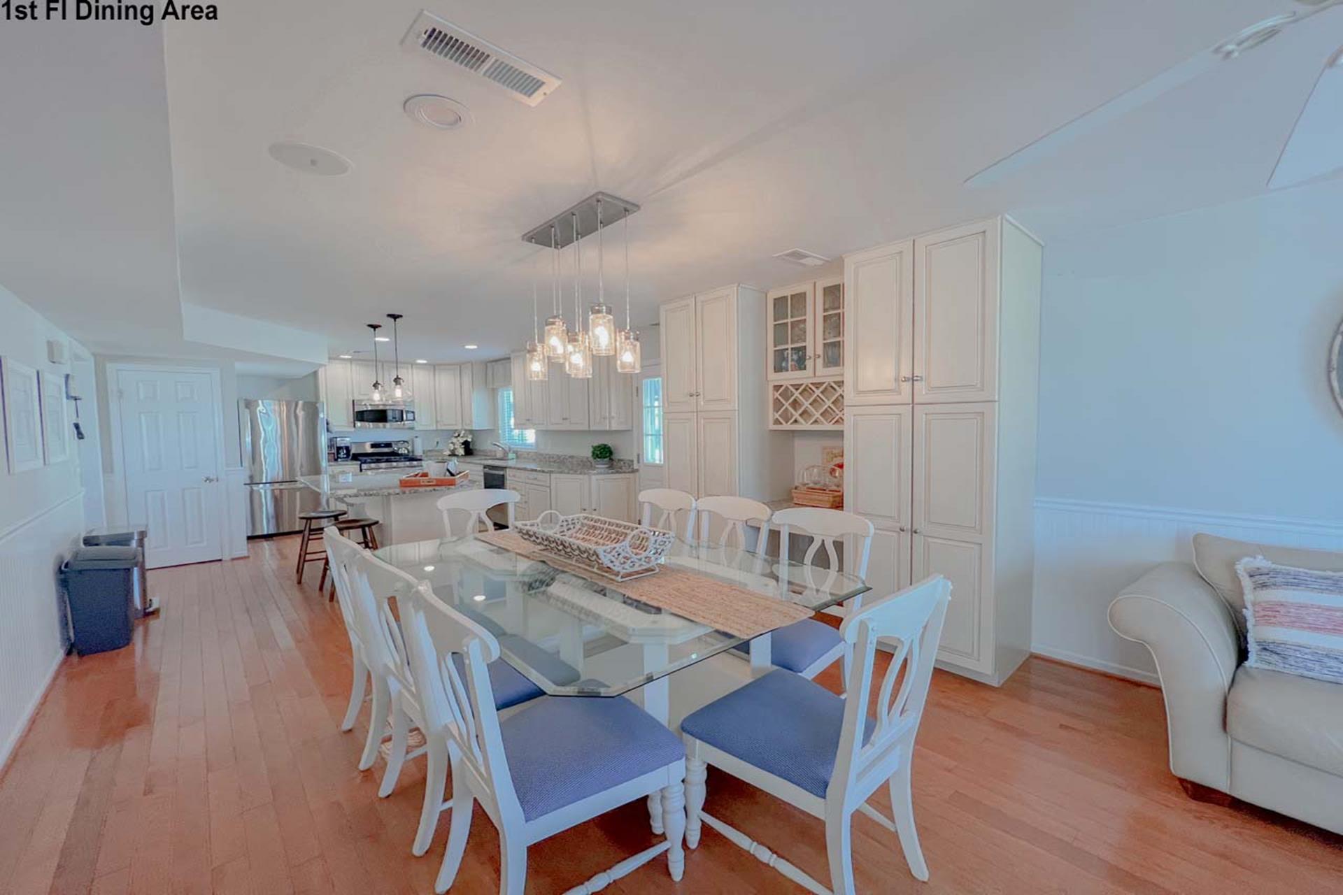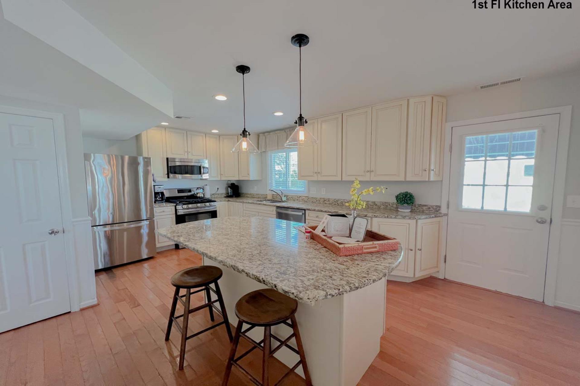| Great 5 bedroom and 4 bath spacious single family home located in Stone Harbor close to the Beach, Recreational Area boasting tennis, basketball, field, playground, boot camps, fitness classes and various events throughout the season. Also, in close proximity to the Golden Inn, Windrift, Buds Market, pizza and more. This home is tastefully decorated and features the main living areas on the first floor. The living area is bright and open, the beautiful kitchen area has granite counters, stainless steel appliances, center island and white cabinetry, the dining area has custom cabinets with wine rack and additional sitting area. The comfortable and inviting family room has flat screen television and access to the outside oasis with covered deck area for outside entertaining. There are two bedrooms located on the first floor. The one bedroom has a queen bed and shares access to the first floor full hall bath. The other bedroom a first floor junior master with King bed and private bathroom. The second floor hosts the spacious master bedroom with King bed, flat screen smart tv and additional sitting/office area and master bathroom with double sinks and large step in tiled shower. There is a second floor hall bathroom. There is a room with another queen bed and another bedroom with bunk bed set (twin over twin) and single bed. This home is a short block and a half walk to the beach. Owner also provides for your convenience a blender, iron and ironing board, regular coffee maker, toaster oven, bullet, crockpot, access to garage to store items, 2 off street parking spots, propane BBQ grill in rear yard area and outside shower. A custom outdoor shower and teak outdoor furniture. Truly a great place to enjoy your Stone Harbor vacation and build more memories! |