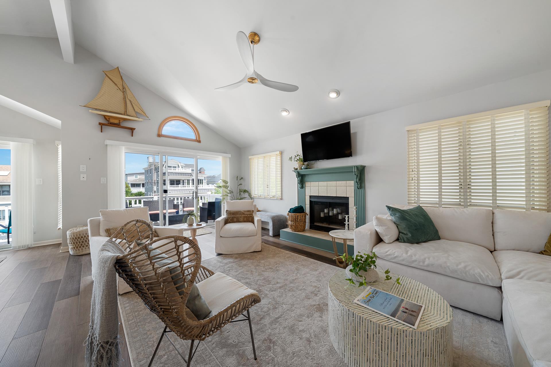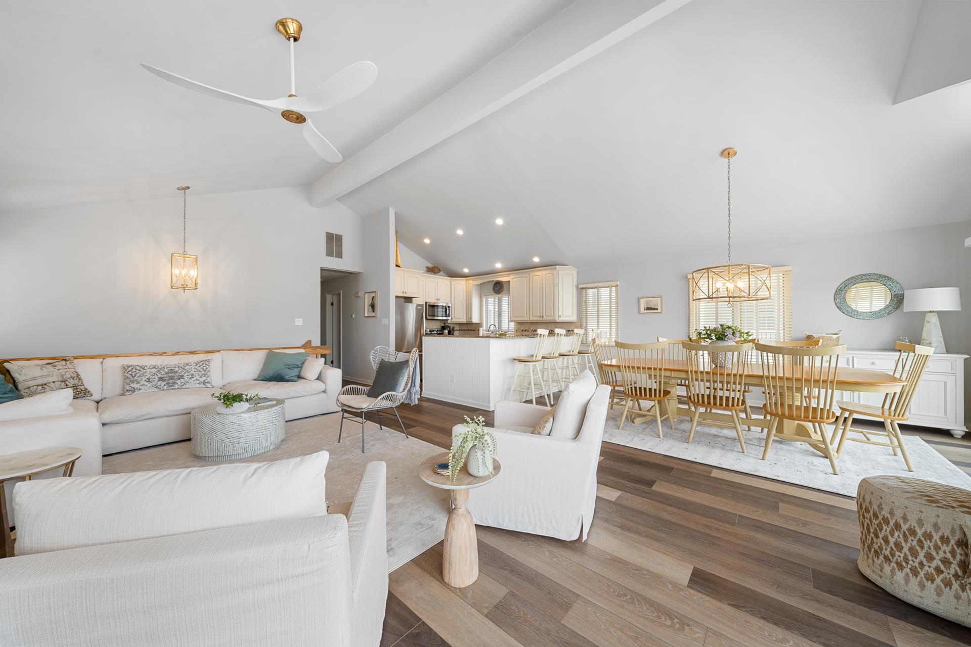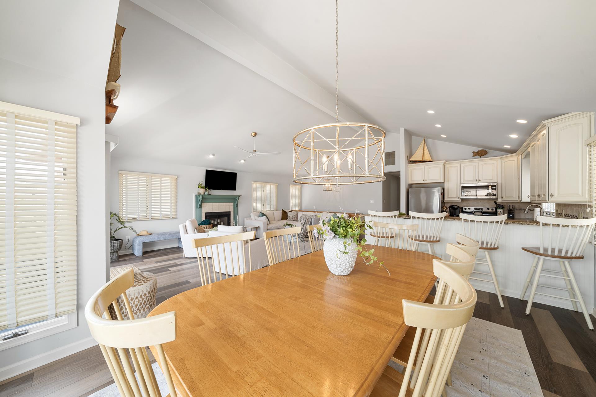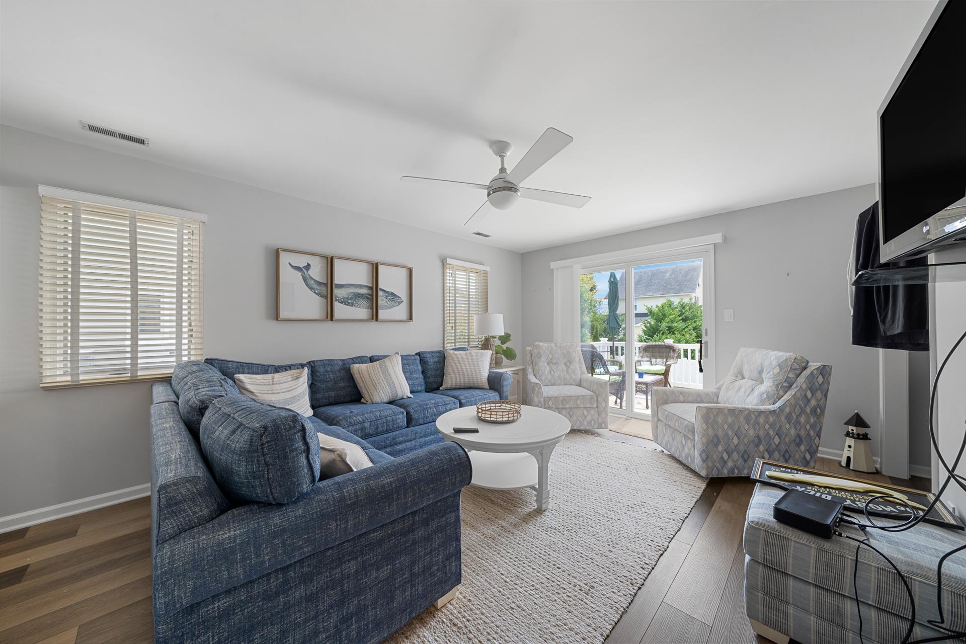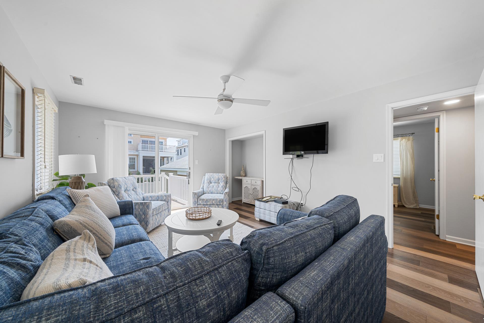 | LOCATED JUST UNDER 2 BLOCKS FROM THE BEACH & AROUND THE CORNER FROM TOWN! There is only one street to cross on the way to the beach, and you can leave the car parked and walk to just about everything! This is the ideal location to enjoy your summer vacation! The location is also convenient to the Public Dock located at 33rd & the bay, where you can fish, crab and enjoy the sunset! There are Public Recreation areas located at: 30th Street (next to the Avalon Public School) , 39th Street (including a playground), and at The Surfside Park (30th & the beach); all just a short walk away! In addition, Avalon's award-winning library is located on 32nd Street. The boardwalk spans along the beachfront from 32nd Street to 21st Street, and it s the perfect setting for a relaxing walk or invigorating run! This home offers the popular "Upside Down Style" floor plan, which features a wide open Living/Kitchen/Dining area with a soaring cathedral ceiling above! Sliding doors provide convenient access from the Great Room to a large deck that spans the width of the property. The updated Kitchen features granite counters complimented with a tile backsplash, stainless steel appliances and custom cabinetry. The Master Suite is in the rear of the 2nd Floor and features a King size bed and a private bathroom with granite countertops. The second bedroom offers a Queen bed and semi-private access to the full hall bathroom; this bathroom offers a shower and granite counters. The First Floor has a nice size rear-facing Family Room with attached Powder Room. This is the perfect room to allow the kids & adults to enjoy their "own space". The Family Room opens to a southern exposed deck and then down to a fenced rear yard with additional seating under the porch of the garage area. Ideal for those summertime BBQs with family & friends! The entire family can spread out in the additional 3 bedrooms on the First Floor. 1st bedroom has 4 twin beds, 2nd bedroom has a king bed and the 3rd bedroom has a King bed & has private access to the hall bath with tub/shower. All the bedrooms have hardwood floor and area rugs for comfort. You may use the detached garage for storage. Truly a great property to enjoy with family & friends! |