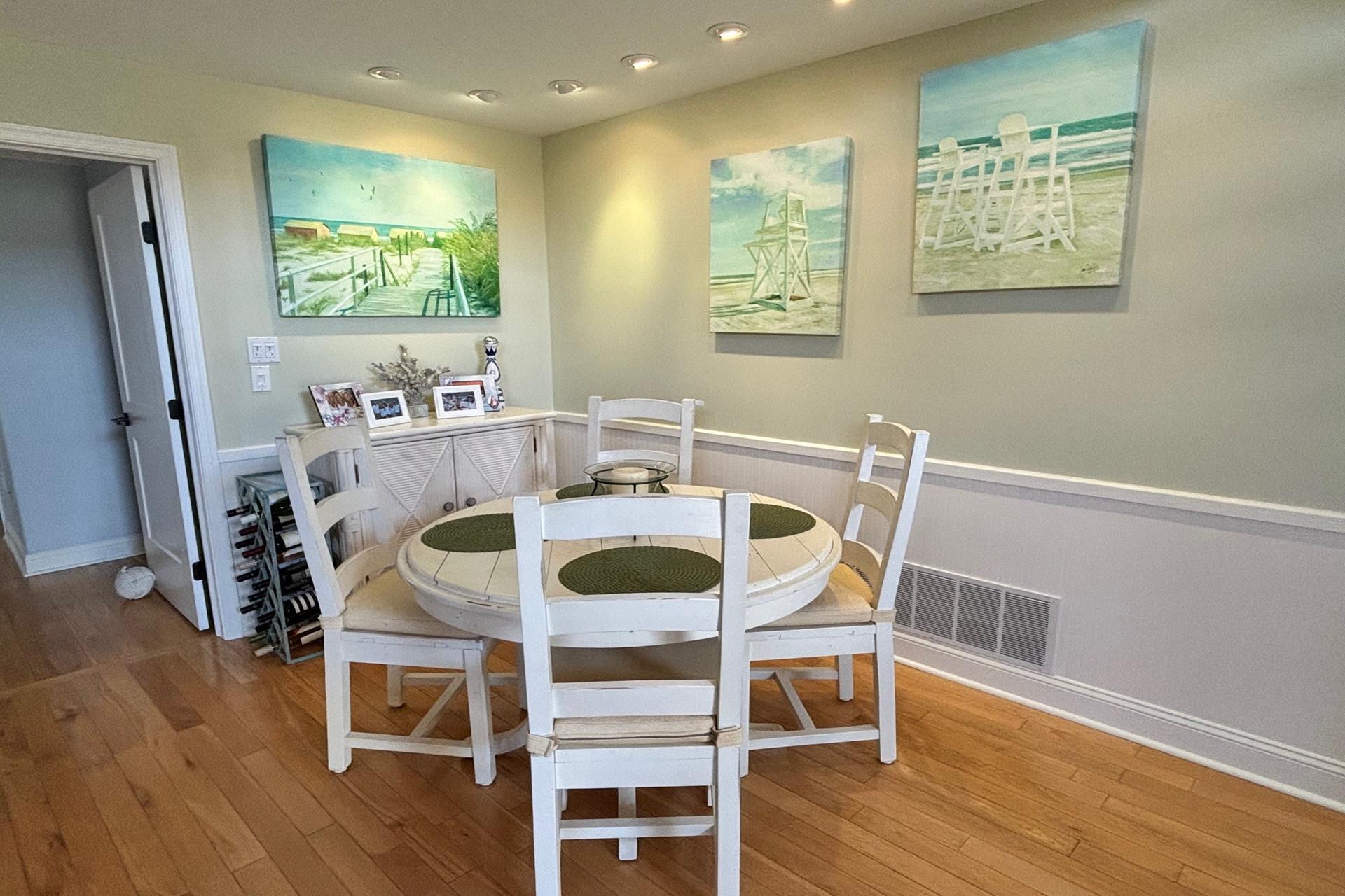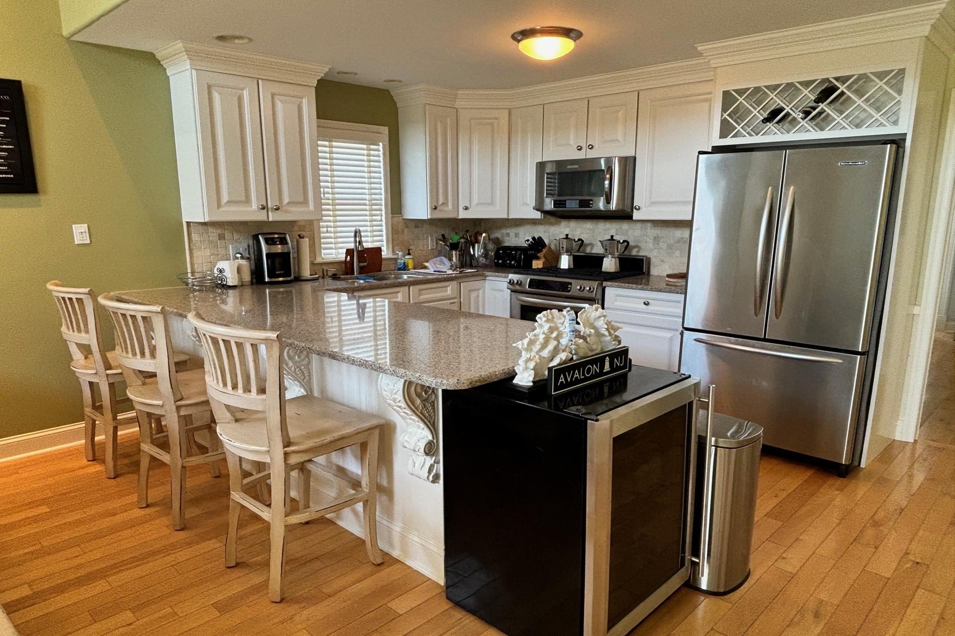 | This stunning three-story townhome offers highly regarded, quiet “off the beaten path” location that’s just a short walk into the heart of Avalon’s popular Business District, where you’ll find a wide variety of restaurants, bars and shopping. The location is also conveniently located to the beach, boardwalk and Public Docks. Avalon’s Boardwalk spans along the beach front from 21st to 32nd Street and is the perfect setting for an invigorating run! Public Docks are located on the bay just over a block away at 22nd Street and Sixth Ave, and at 20th Street and Fifth Avenue, and they’re a great setting to watch the sunset/sunrise, fish, crab or swim! The property features 5 spacious Bedrooms, 3 Full Bathrooms, a Laundry area, 3 decks! The First Floor features 2 bedrooms and 1 bathroom. The 1st bedroom has a queen bed and a private deck. The 2nd bedroom has a twin daybed with a twin trundle. The Second Floor features a wide-open Living/Kitchen/Dining Area, the Master Suite. The Living Area offers a soaring cathedral ceiling and a sliding door providing convenient access to the large deck, which is covered by a retractable awning and lots of space to entertain. You’ll appreciate the fully equipped kitchen with plenty of counter space and seating for 4 people at the counter and also a table w/4 chairs in the dining area. The master suite has a king size bed and access to a private deck. The 3rd-floor offers 2 Bedrooms, one with a king bed and the other bedrooms offers 2 queen beds. They share the hall bathroom. There is enough parking for 3 cars on the rear side of the home and a private outside shower. New to the market and surely won’t last! Book your vacation today! |