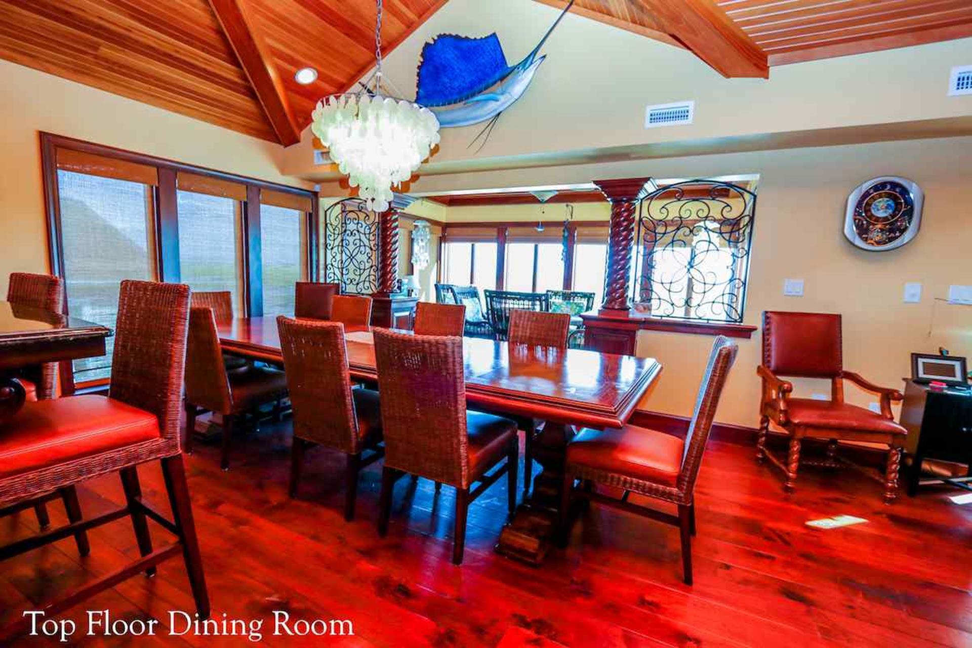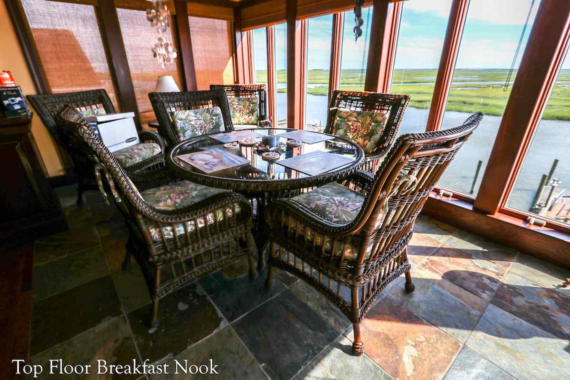 The top-floor great room is the heart of the home—bright, open, and thoughtfully designed to showcase the stunning scenery. Start your day in the bayside breakfast nook, where you can enjoy your morning coffee while watching shorebirds hunt along the water’s edge. The spacious kitchen features granite countertops, counter and bar seating, and an oversized dining table—perfect for gathering with family and friends.