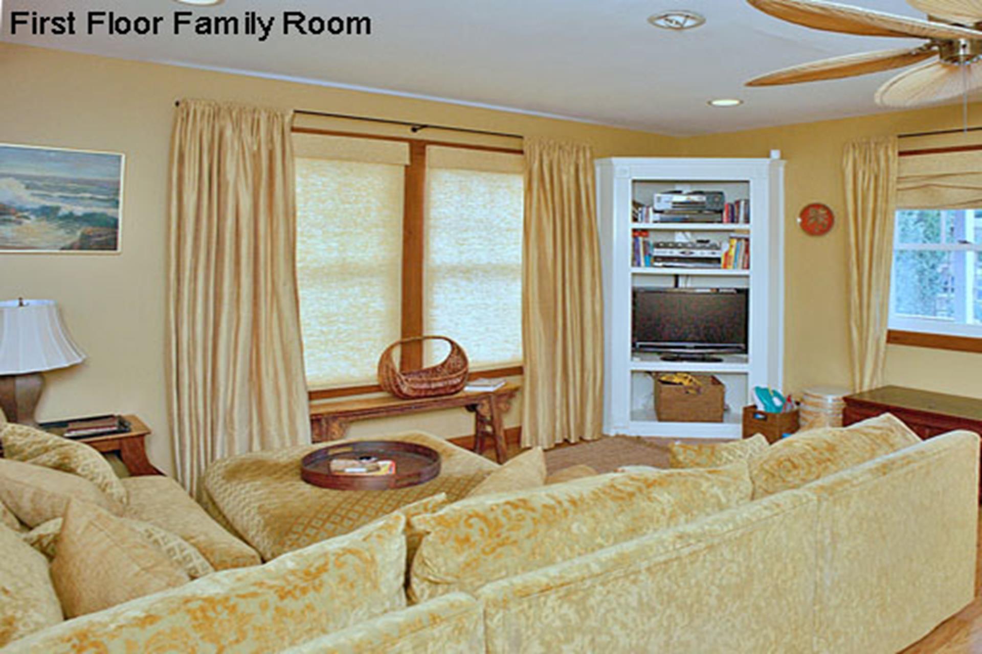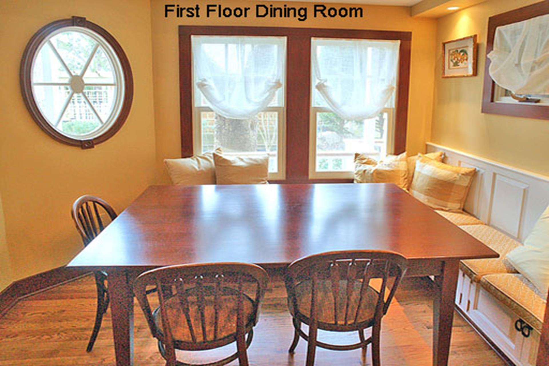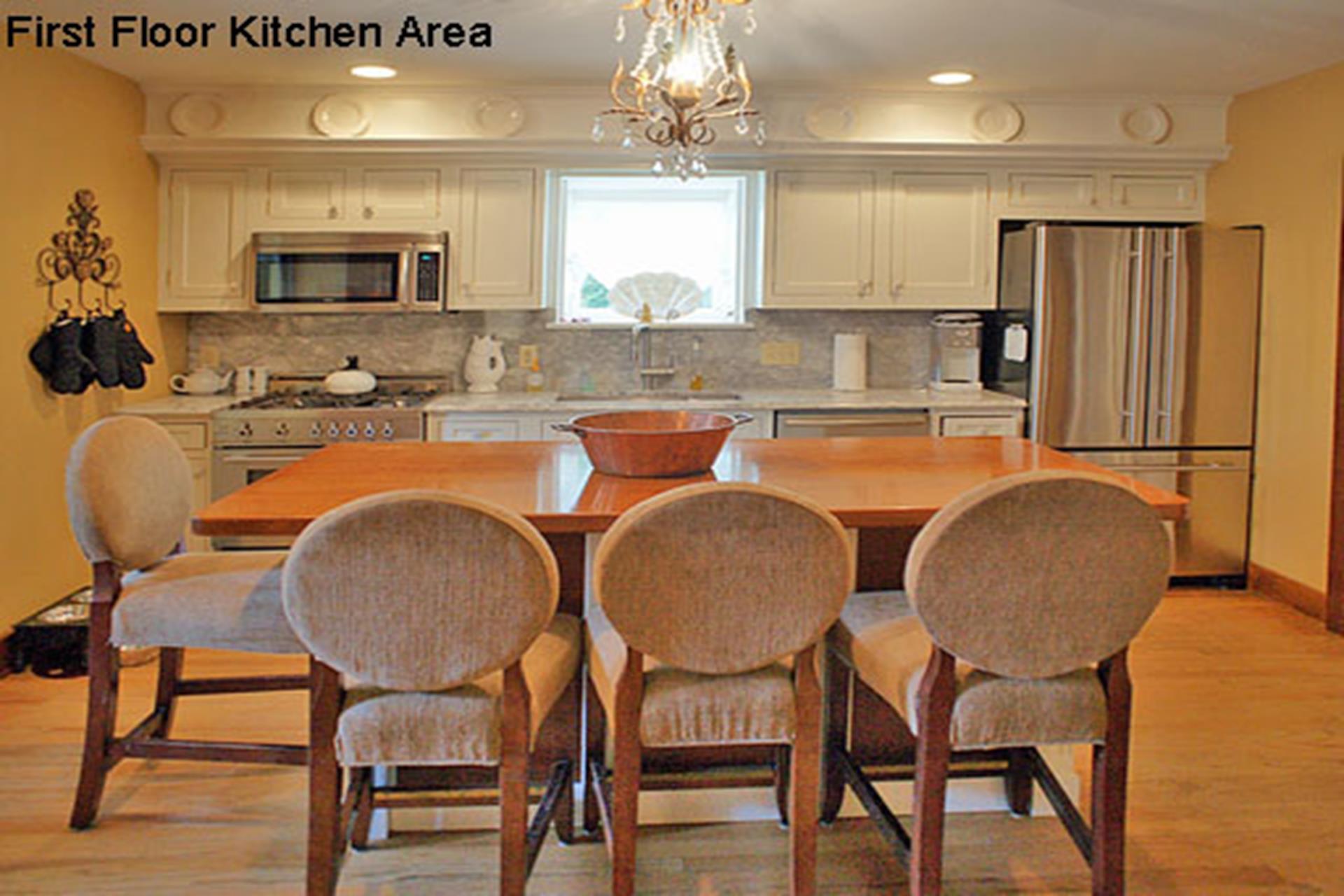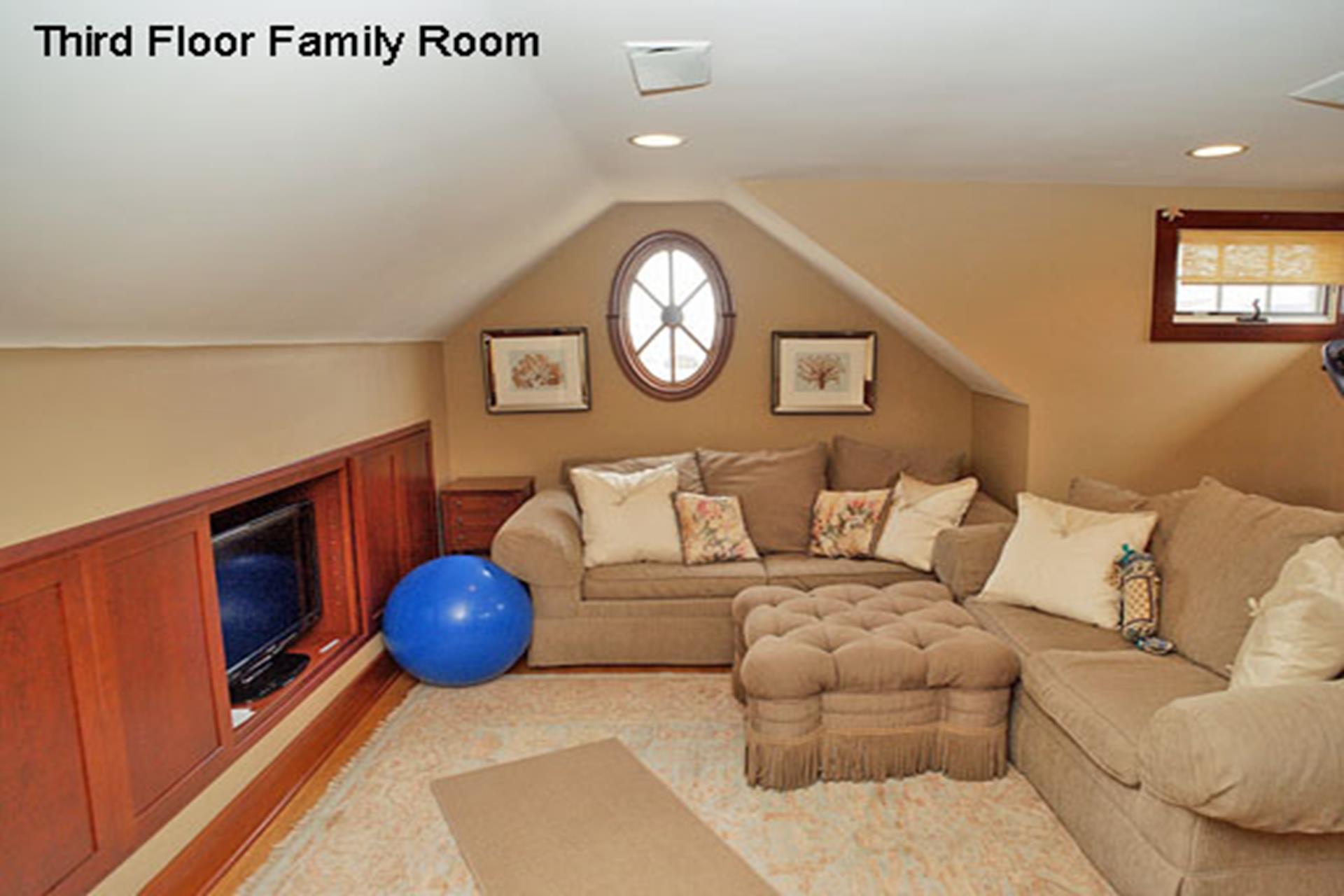 | Beautiful, 3 story home located within walking distance to the center of town and just a short block from the beach. The first floor offers a family room and living area, kitchen, dining area, half hall bath, a bedroom with a trundle bed, a bedroom with a queen size bed, a bedroom with 2 twin size beds (attached half bath) and a full hall bath. The second floor offers an additional family room with wet bar, a bedroom with a king size bed (attached full bath), bedroom with king size bed (access to full hall bath), another bedroom with a queen size bed (attached bath) and full hall bathroom. The entire third floor is the master suite with king size bed, full bath and a large sitting area. This home has plenty of space for everyone! THIS PROPERTY RENTS FRIDAY TO FRIDAY. |
