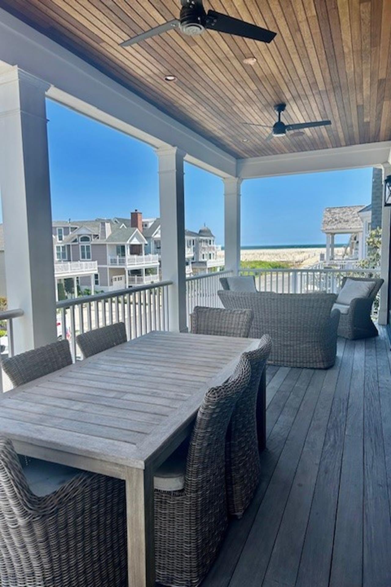 | One of a kind, BEACHBLOCK home!! This home is three stories with 6 bedrooms, 5 full and 2 half bathrooms. The first floor offers a beautiful entry way, a bedroom with 2 sets of built in bunk beds and a jack and jill bathroom shared with a bedroom with a queen size bed. There is an additional bedroom with 2 twin size beds and a private bathroom. Also on the first floor is a large family room with a door leading out to a deck from which you can access the pool area. There is a separate entrance from the deck to a room with a wetbar and half bathroom. There is a fabulous staircase leading to the second floor where you walk into the bright, expansive, beautiful living area with soaring ceilings, the dining area and a gorgeous kitchen with an oversized center island and high end Thermador appliances. There are two additional bedrooms each with a queen size bed and a private bath plus a half hall bathroom. The third floor master bedroom is private and bright with a fabulous view of the ocean from the private covered porch, and a simply gorgeous master bath. This home is complete with a 4 stop elevator and a heated, in ground swimming pool. |
